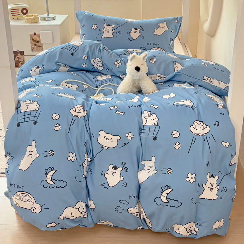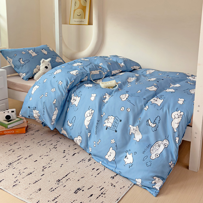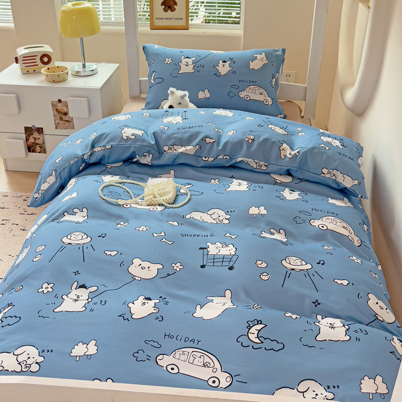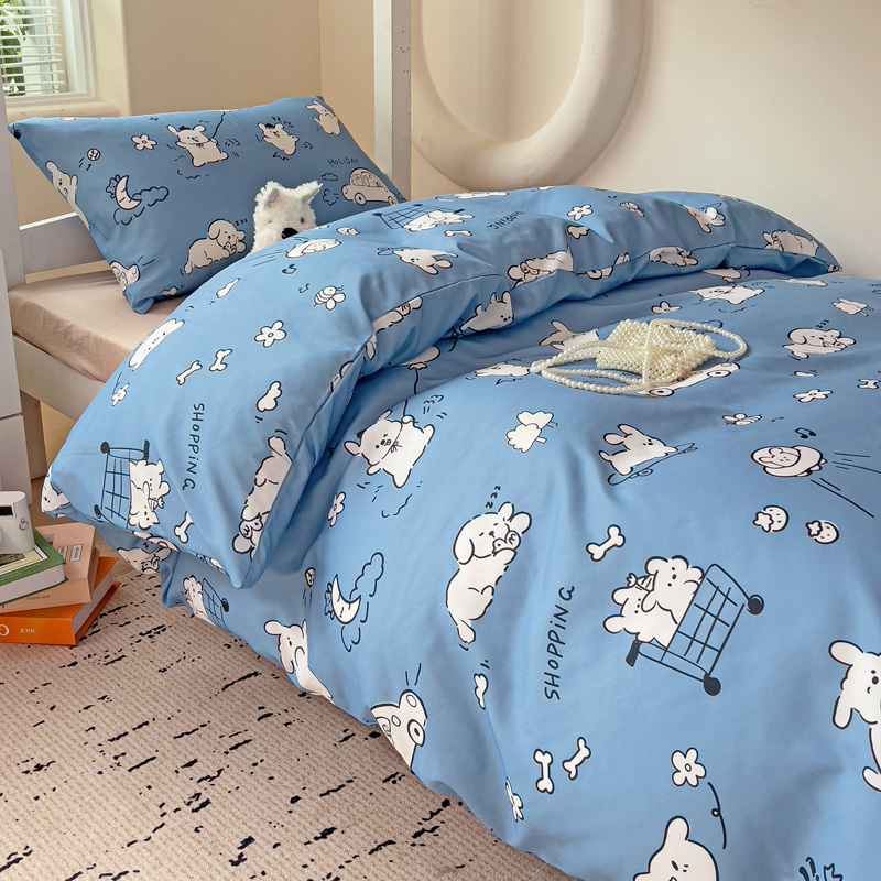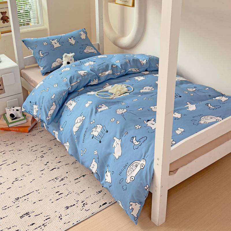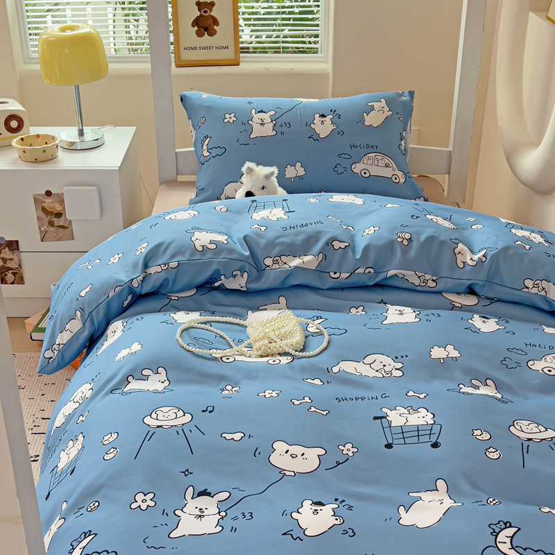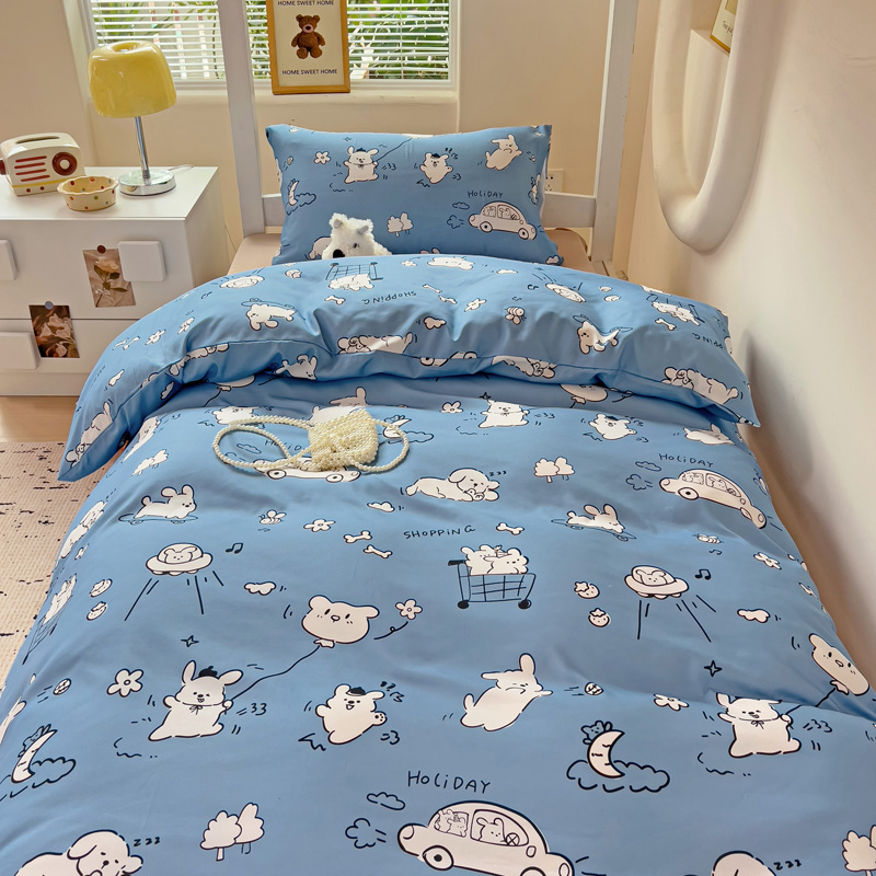 商品名称:海岛哥哥 2025新款云朵水洗棉学生床宿舍上下铺三件套 狗狗乐园