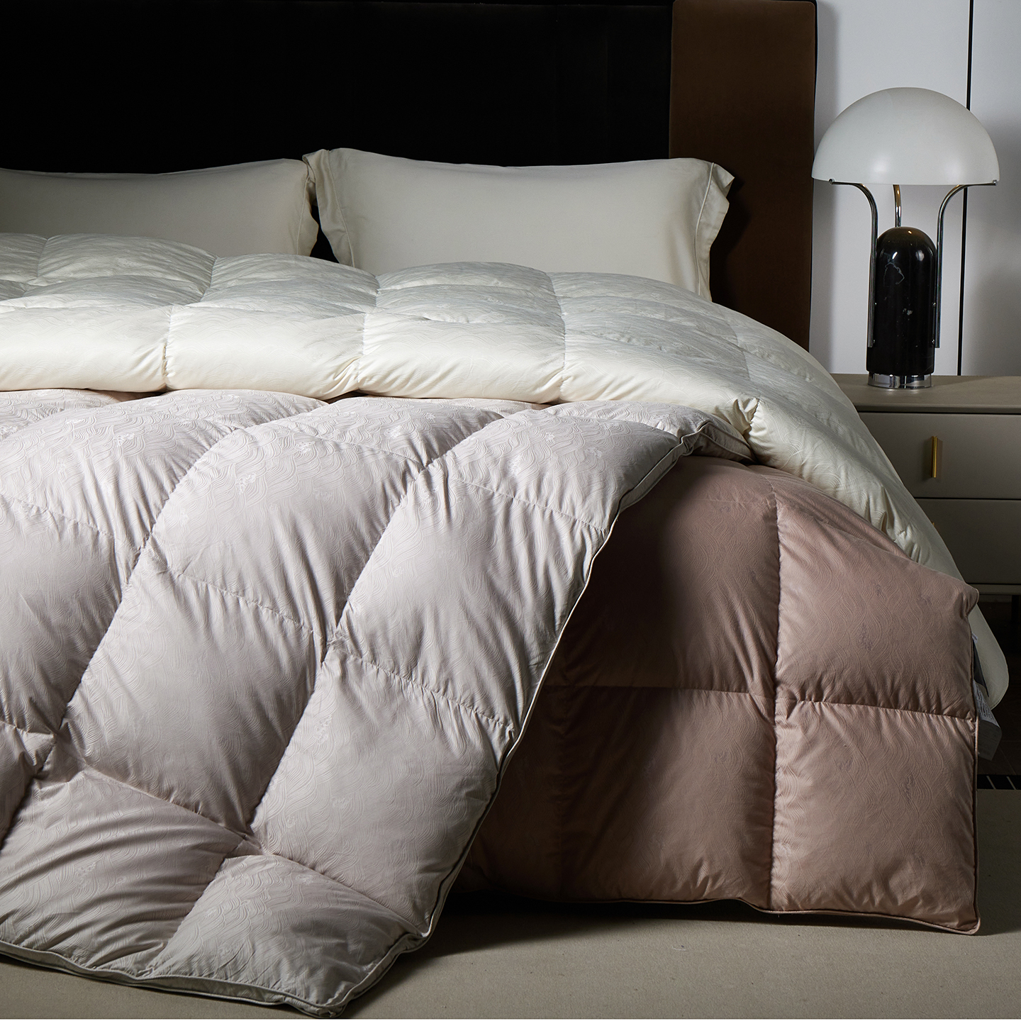 • 91家纺网 家纺一手货源 找家纺 (总)御眠纺 2025新款高端提花羽绒被鸭绒被贡缎提花单层羽绒被壳,飘金色,飘高级灰,飘颜粉,