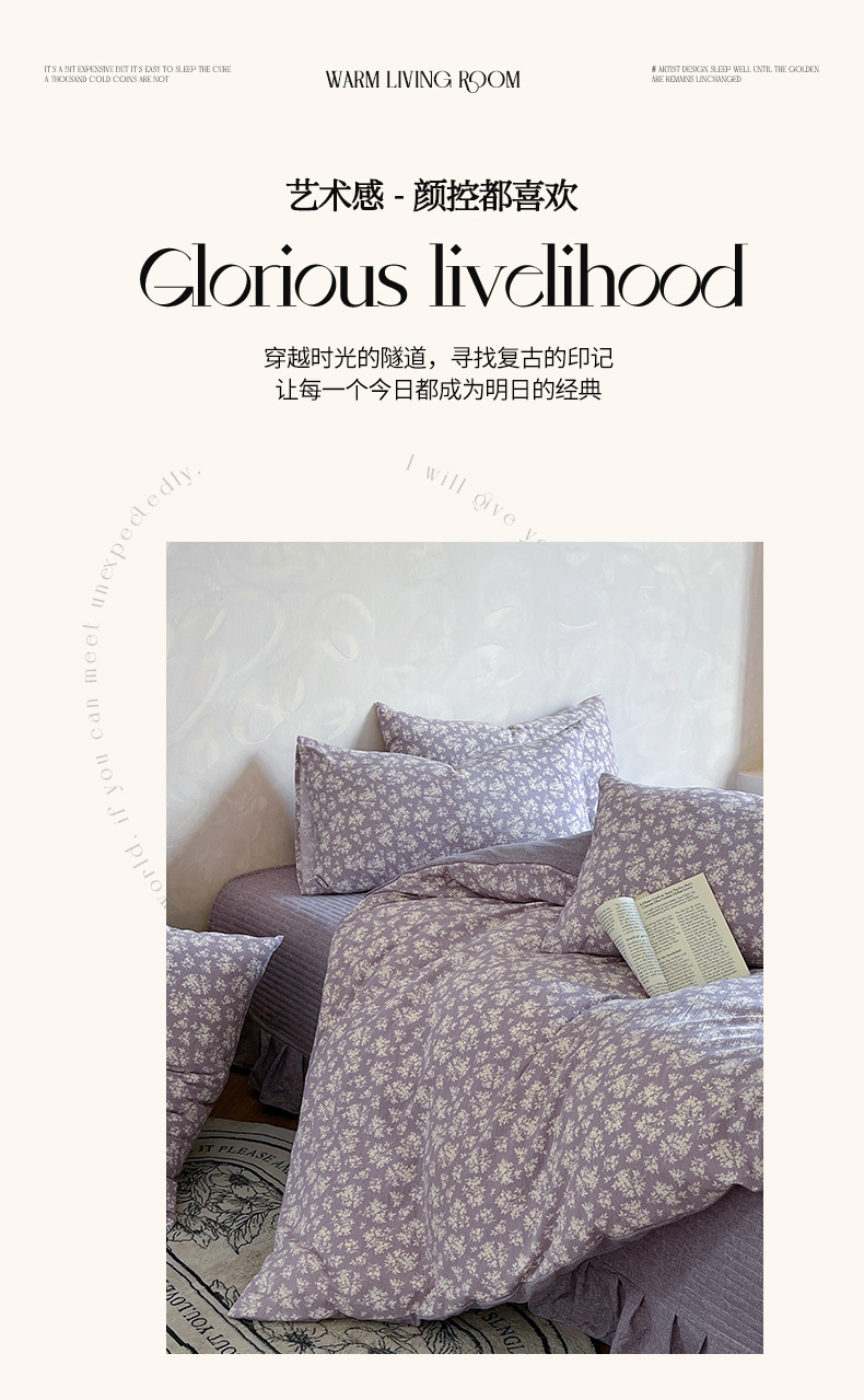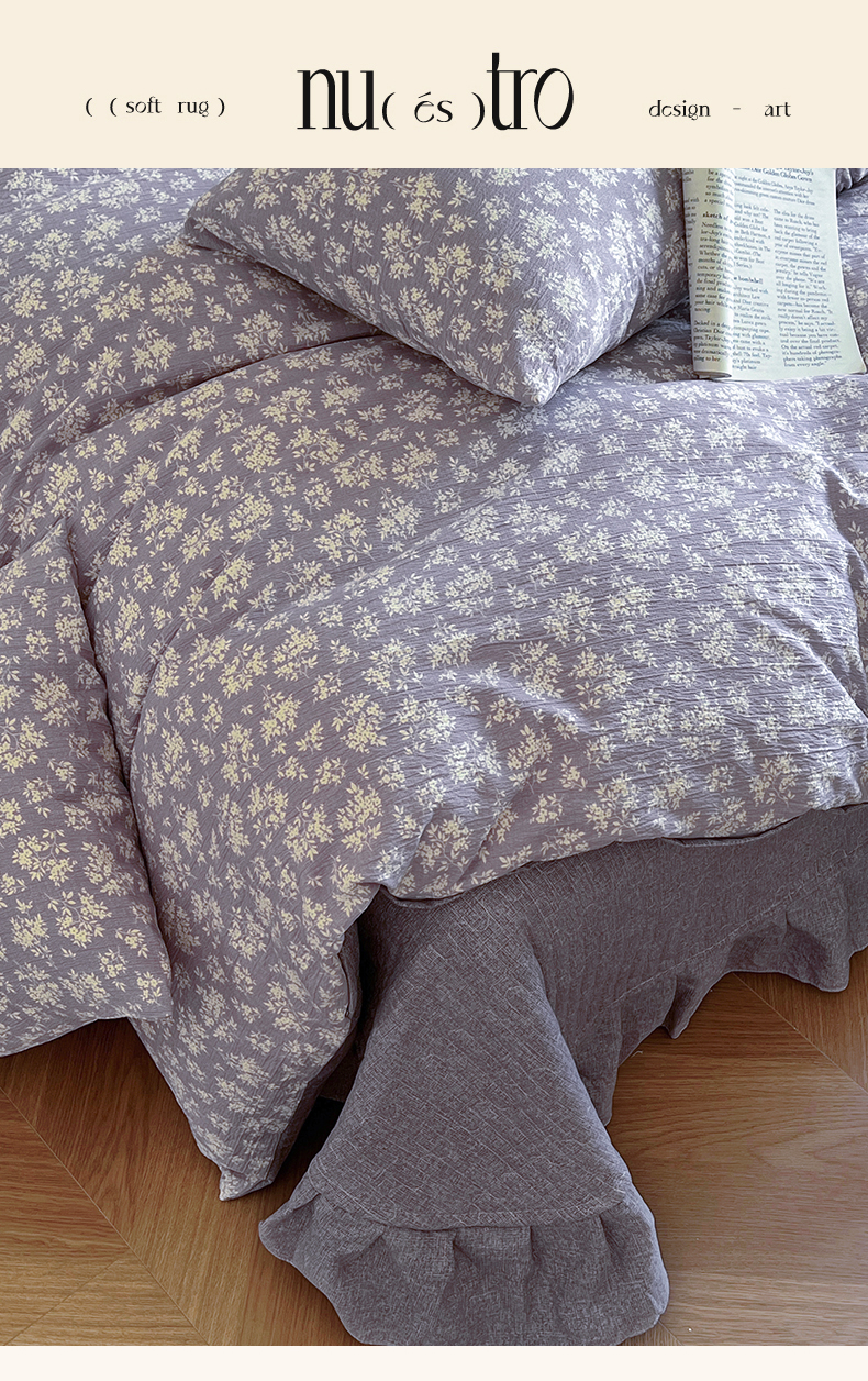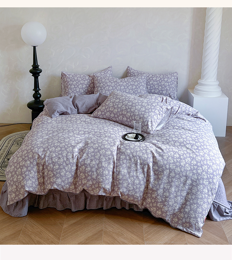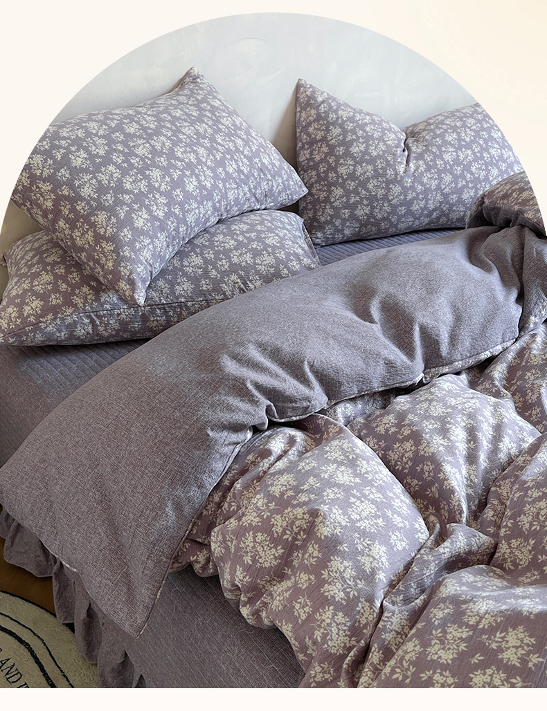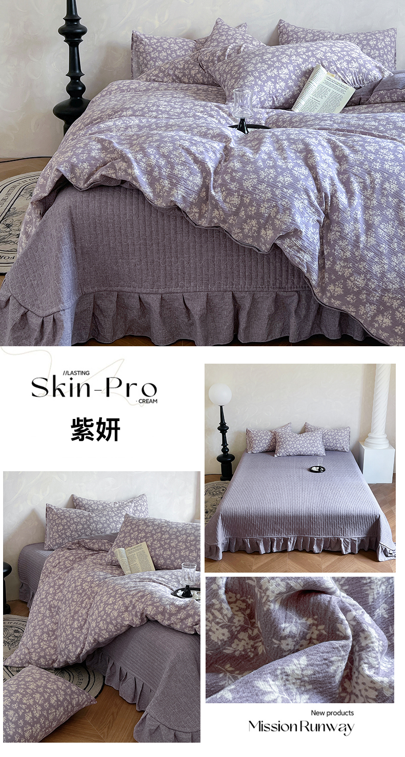 美梦家纺 2025新款高克重加厚亚麻皱皱纱床盖四件套系列(提供买家秀) 紫妍