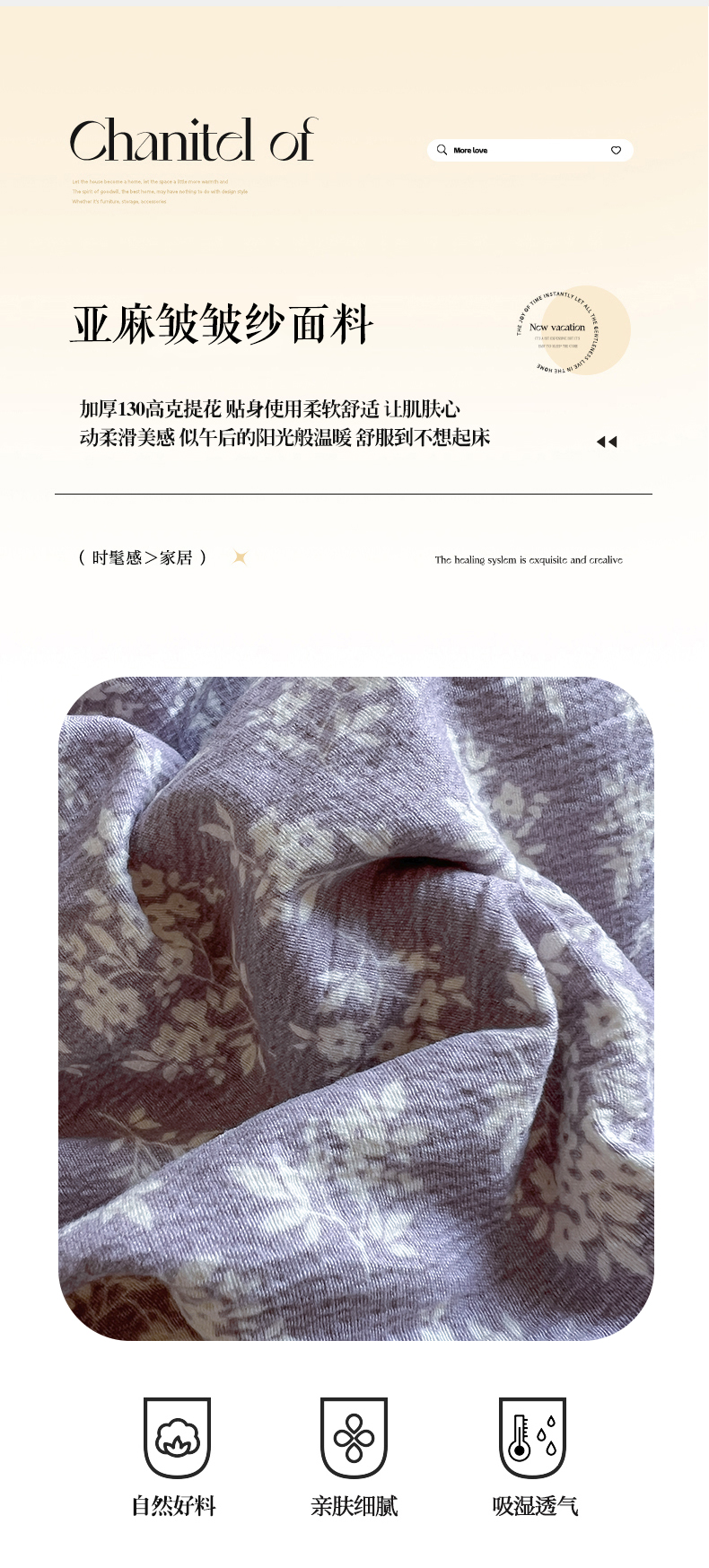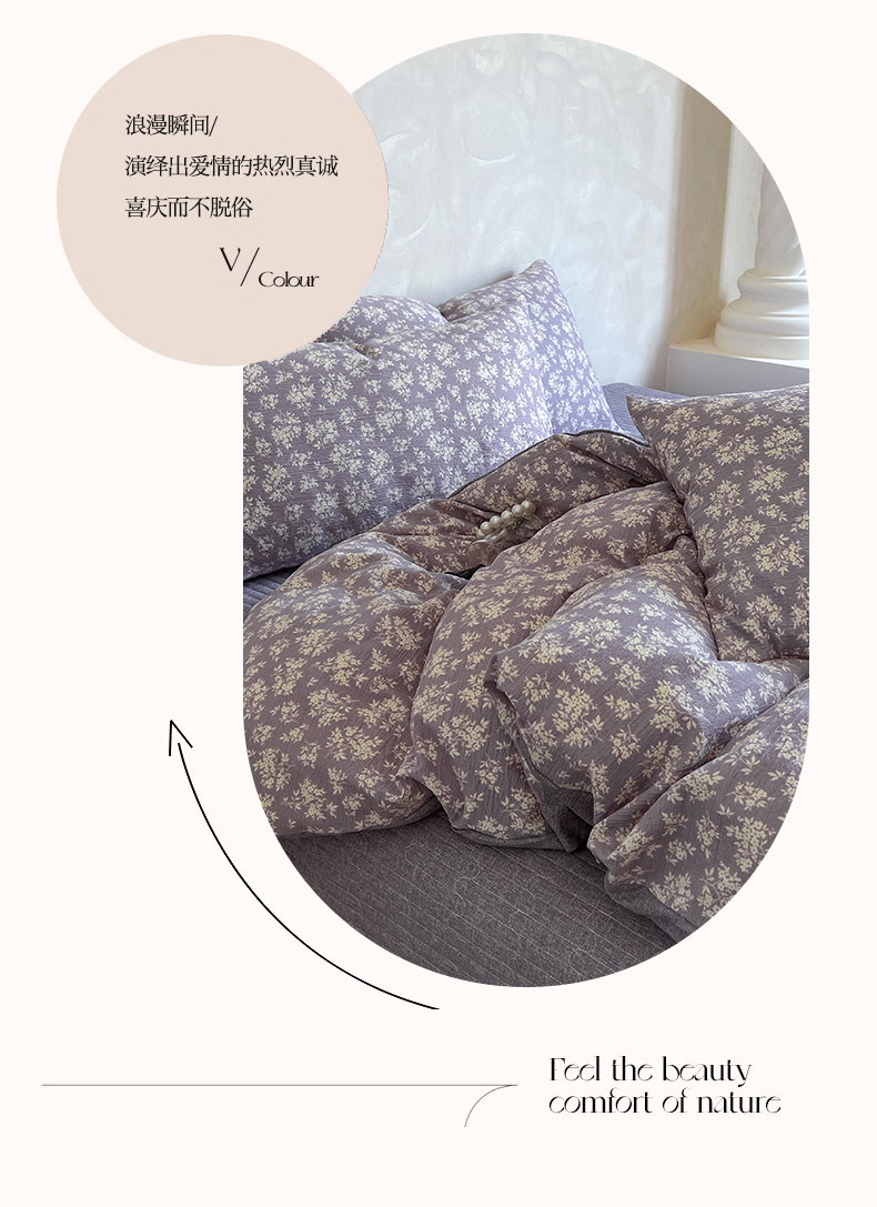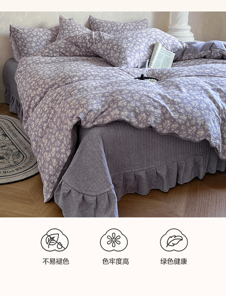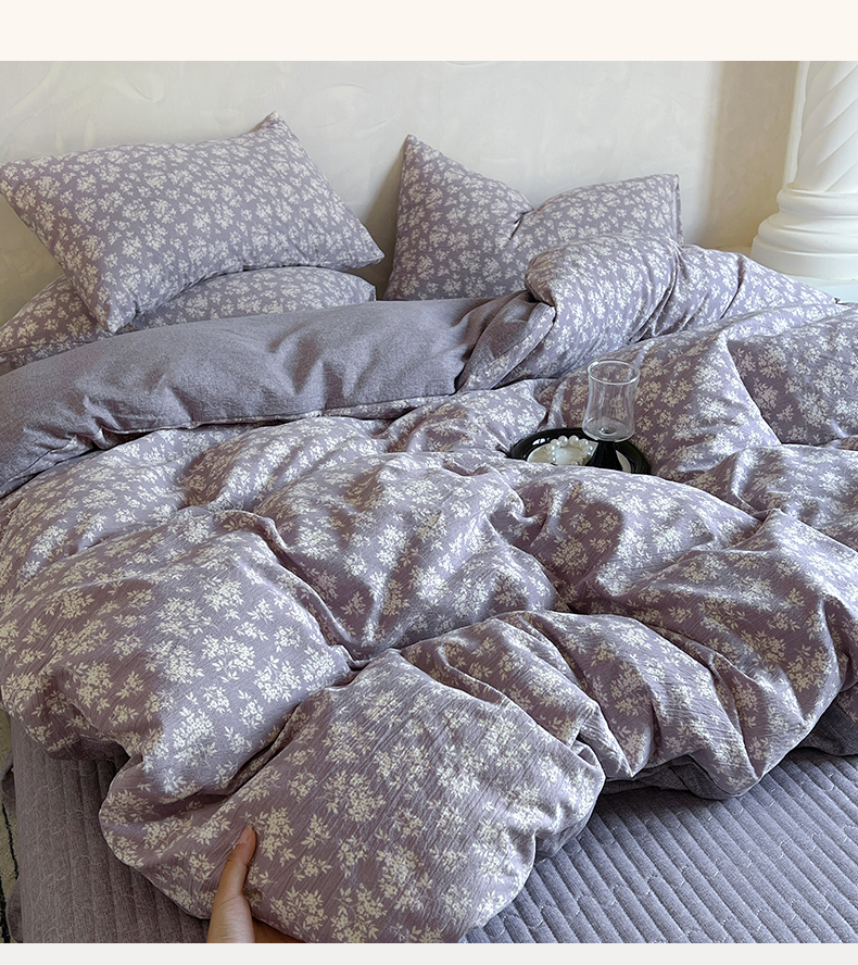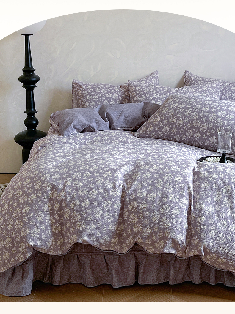 商品名称:美梦家纺 2025新款高克重加厚亚麻皱皱纱床盖四件套系列(提供买家秀) 紫妍