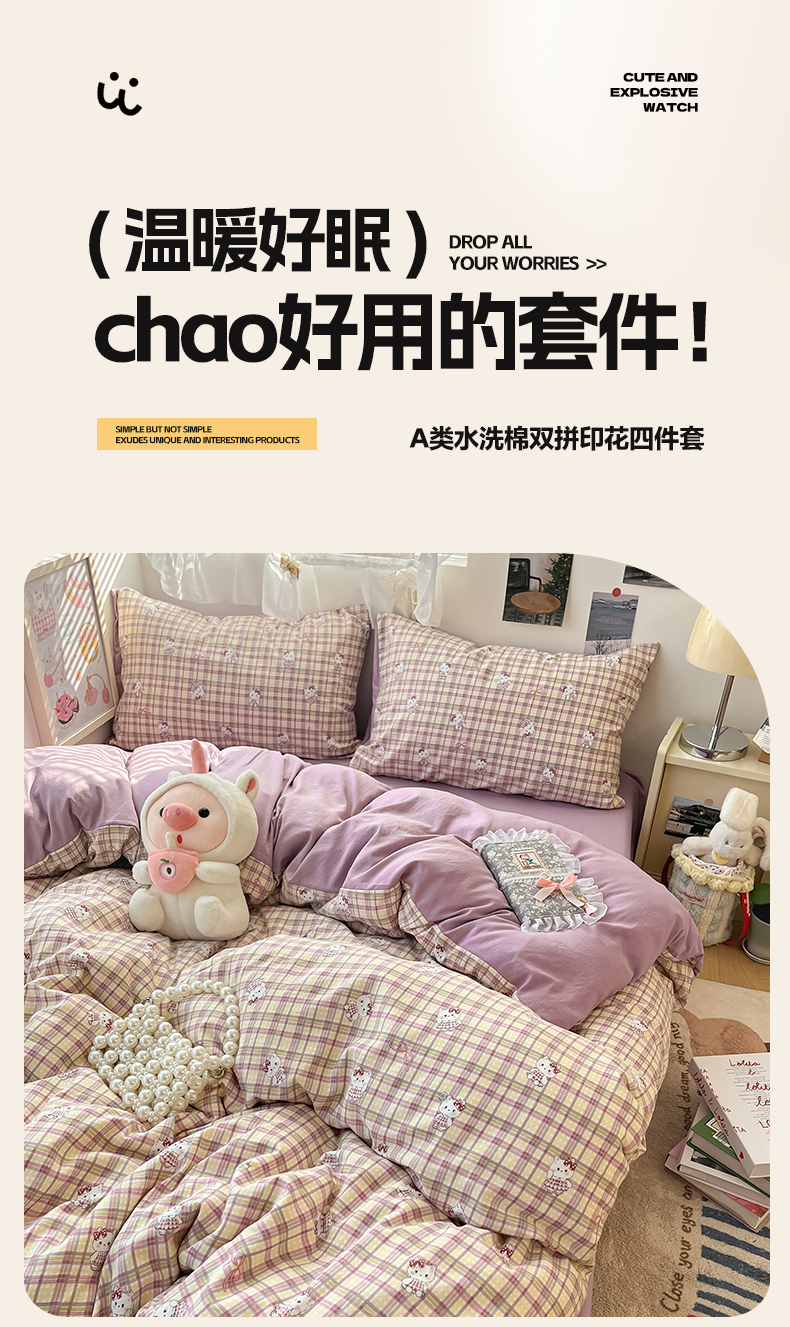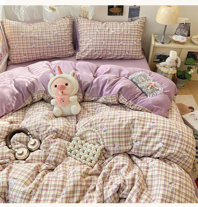 当前位置: 91家纺网 > 商品网购 > 床品套件 > 四件套 > 水洗棉四件套 > 卡迪熊家纺 2025新款水洗双层纱双拼碎花四件套 格纹猫咪