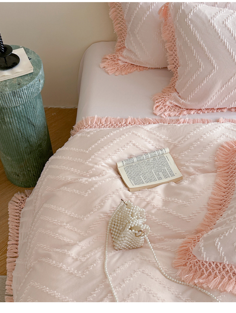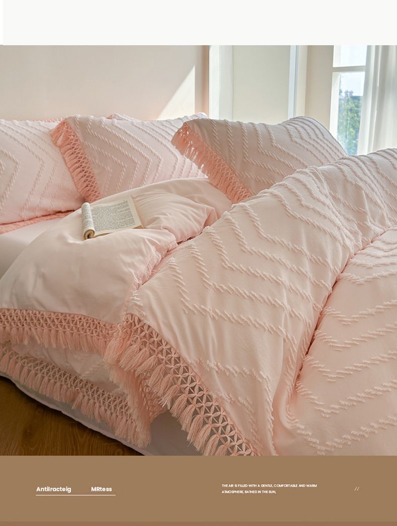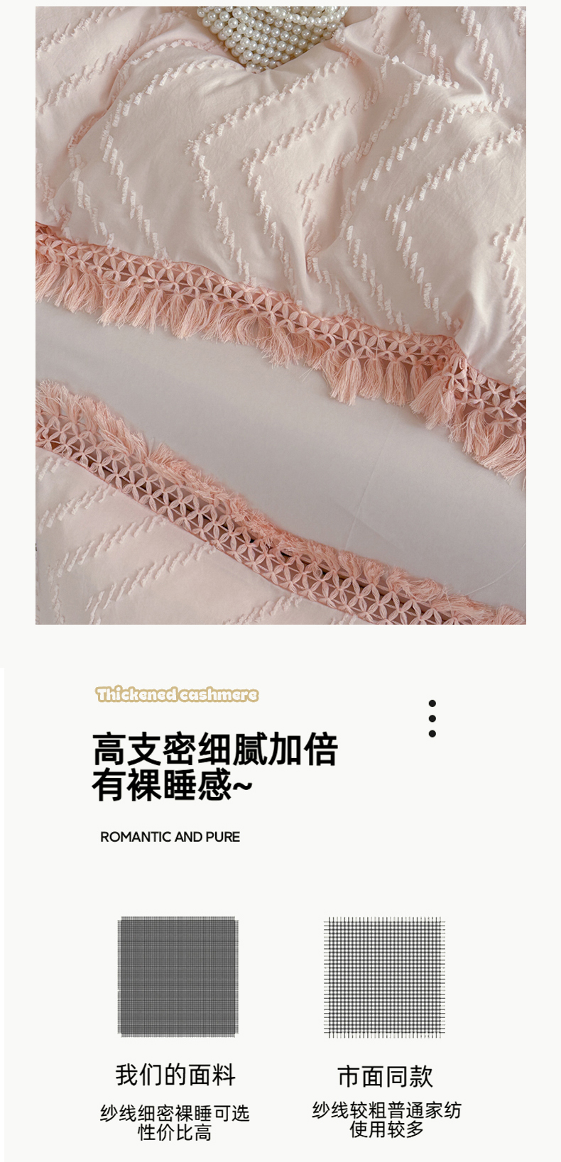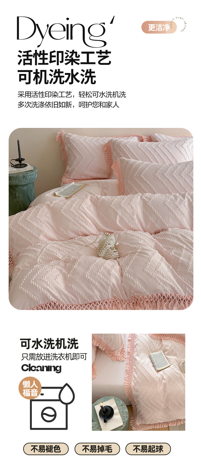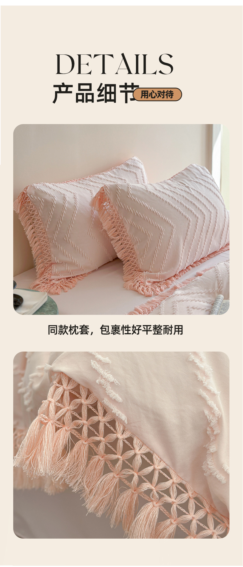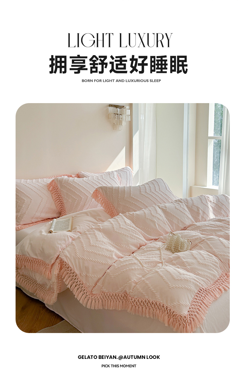当前位置: 91家纺网 > 商品网购 > 床品套件 > 四件套 > 其它四件套 > 缘生活 2025新款素色简约立体剪花流苏四件套 剪花波浪+流苏浅粉