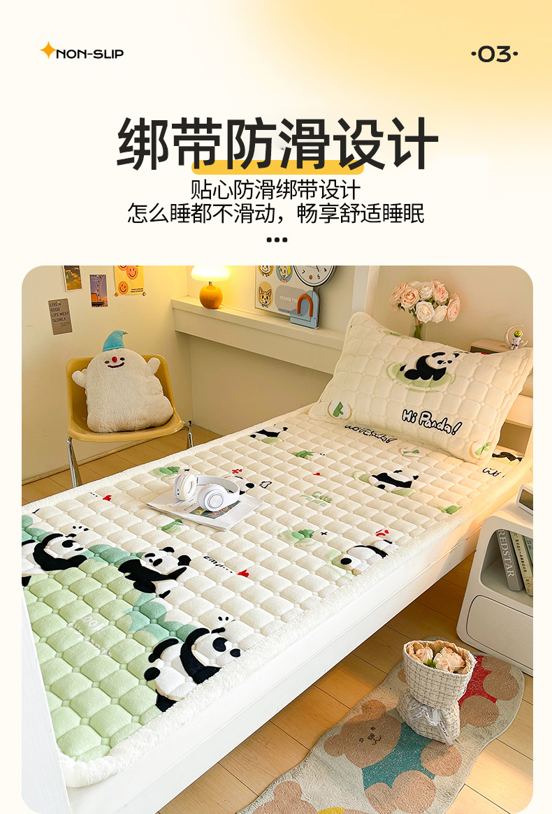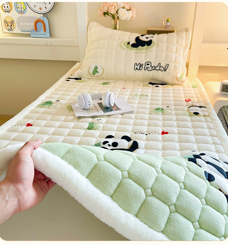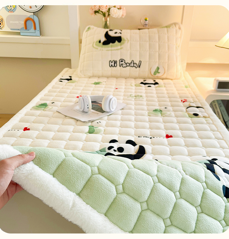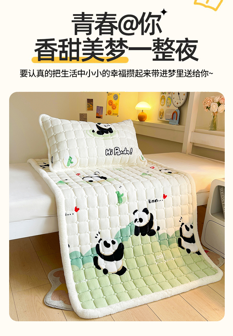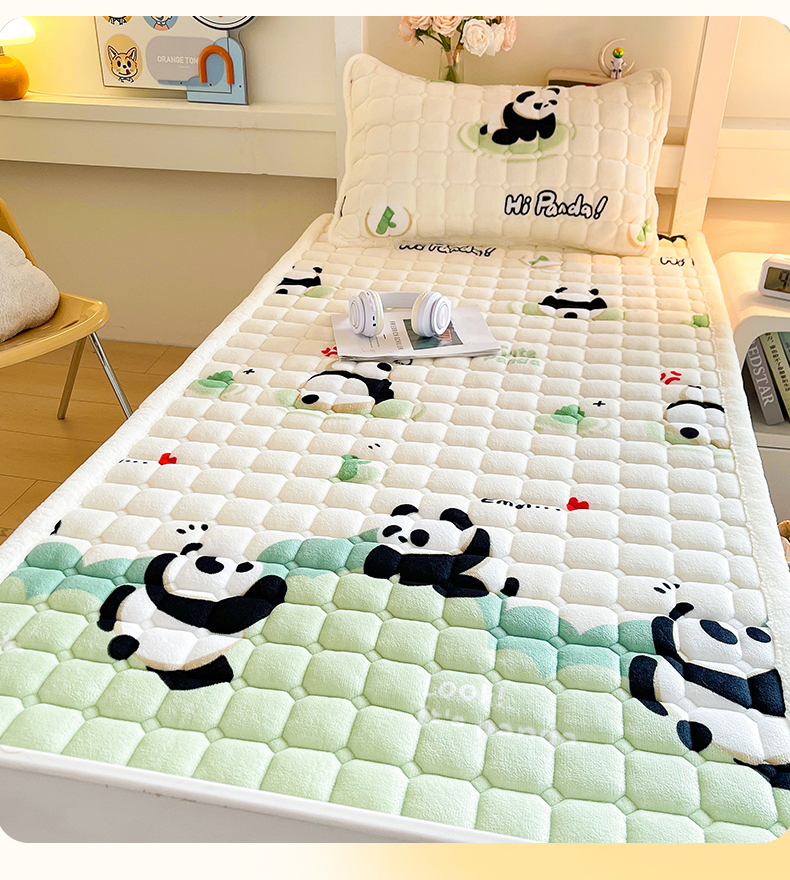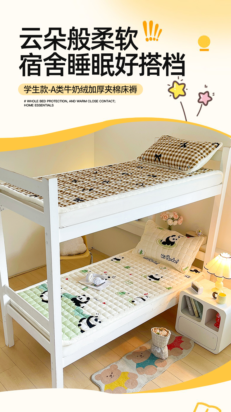 • 91家纺网 家纺一手货源 找家纺 梵朴 2025新款学生宿舍上下铺牛奶绒夹棉床垫床护垫床褥子 熊猫乐园-绿
