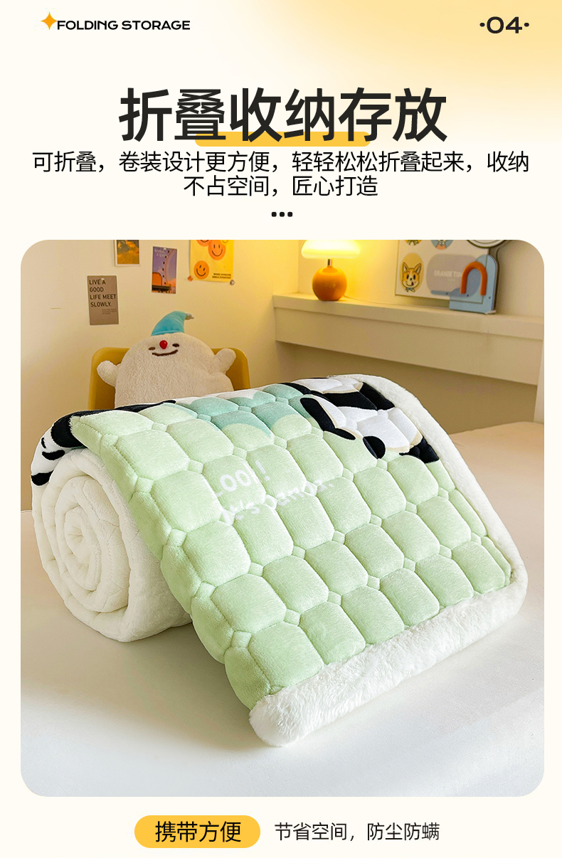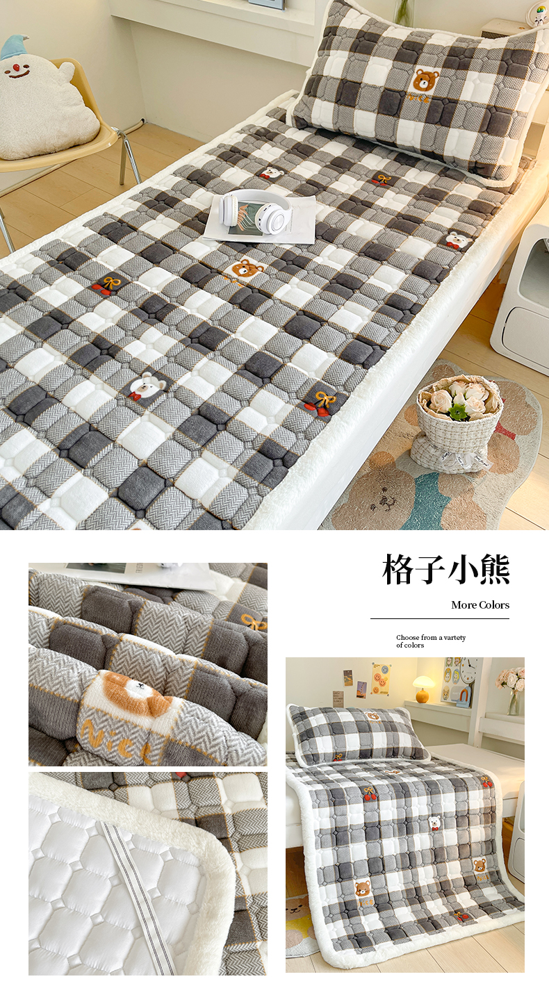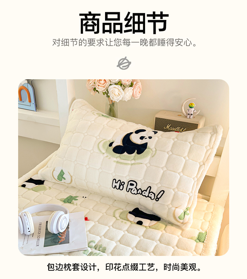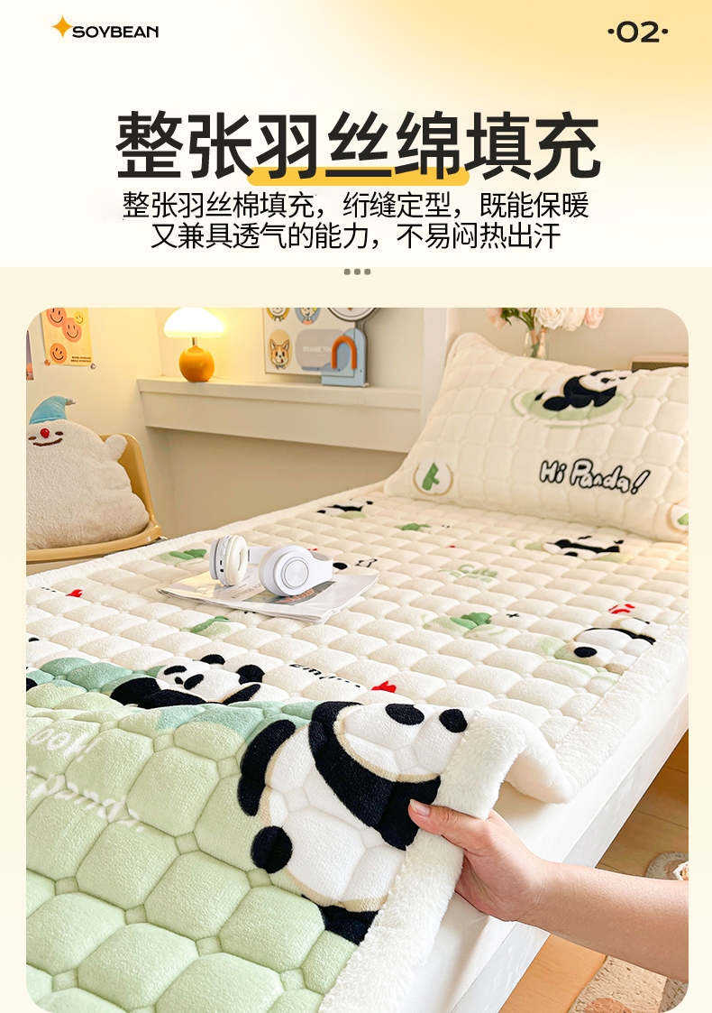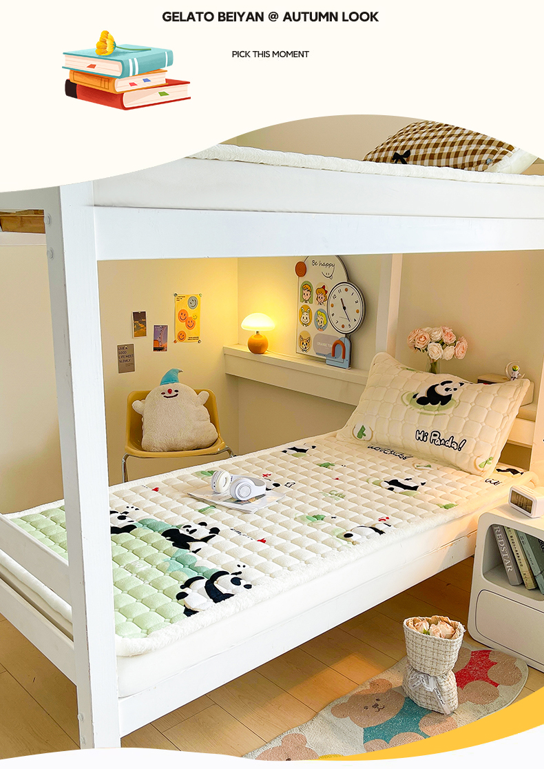 • 91家纺网 家纺一手货源 找家纺 梵朴 2025新款学生宿舍上下铺牛奶绒夹棉床垫床护垫床褥子 熊猫乐园-绿