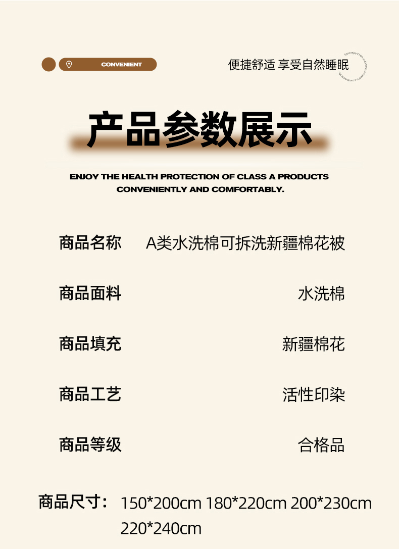 商品名称:(总)猎鹿人家纺 2025新款A类水洗棉可拆洗新疆棉花冬被
