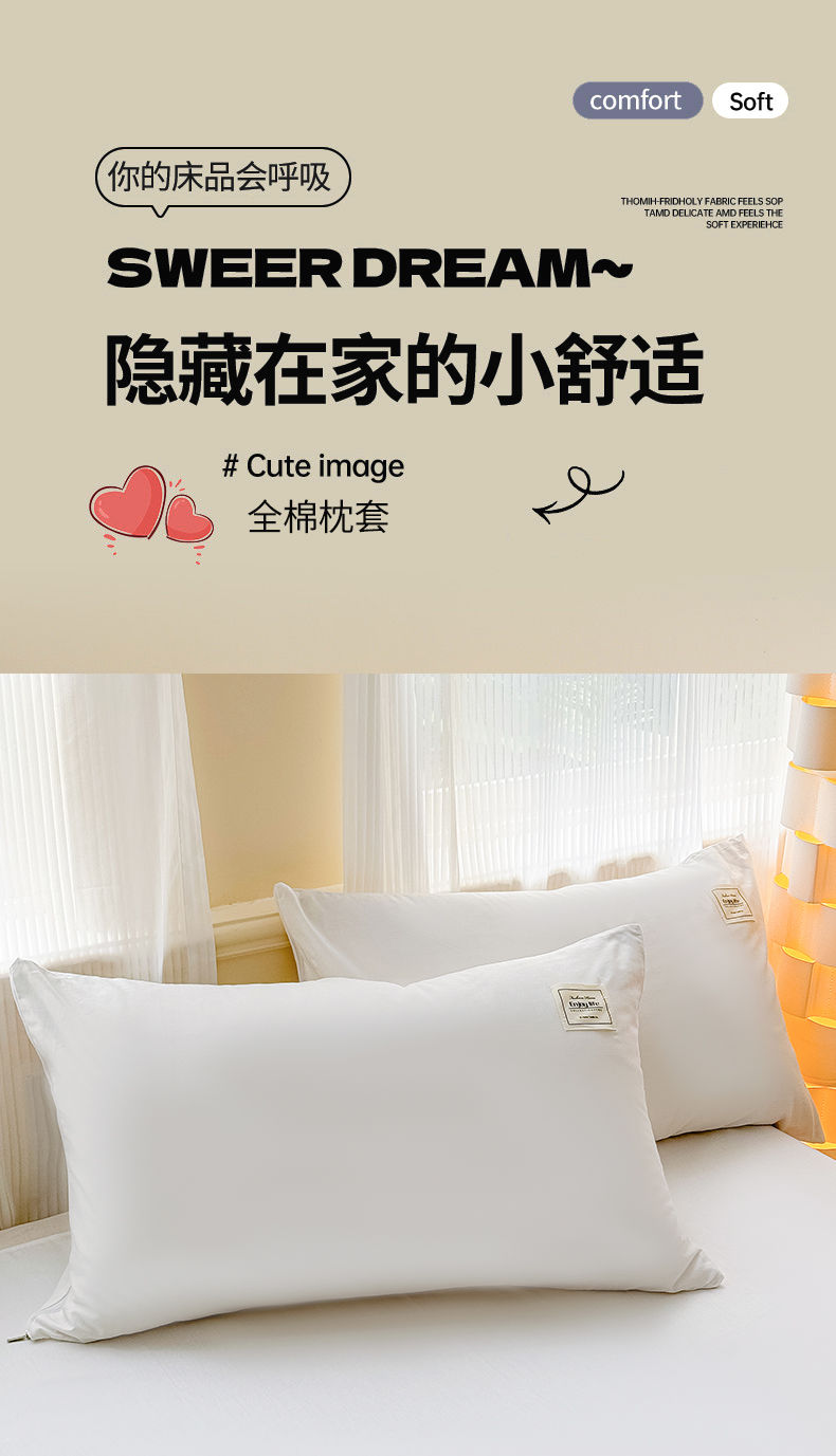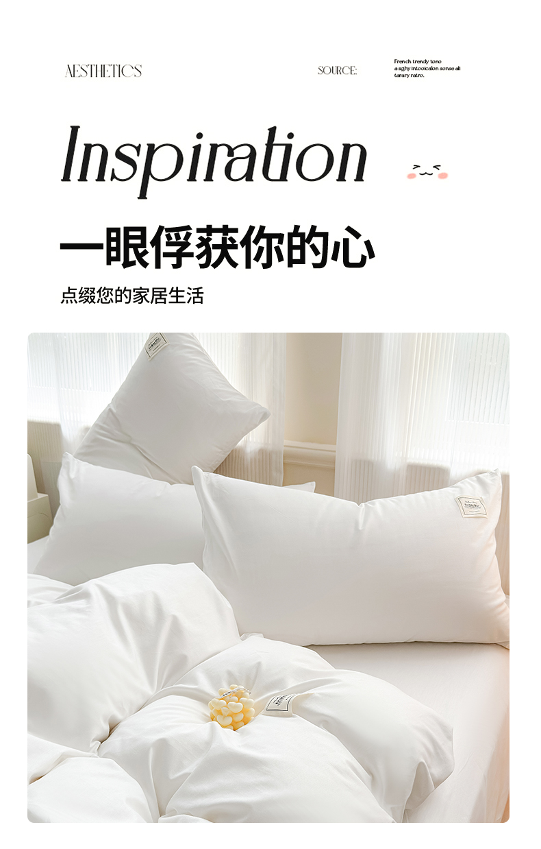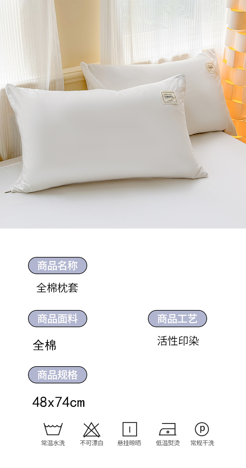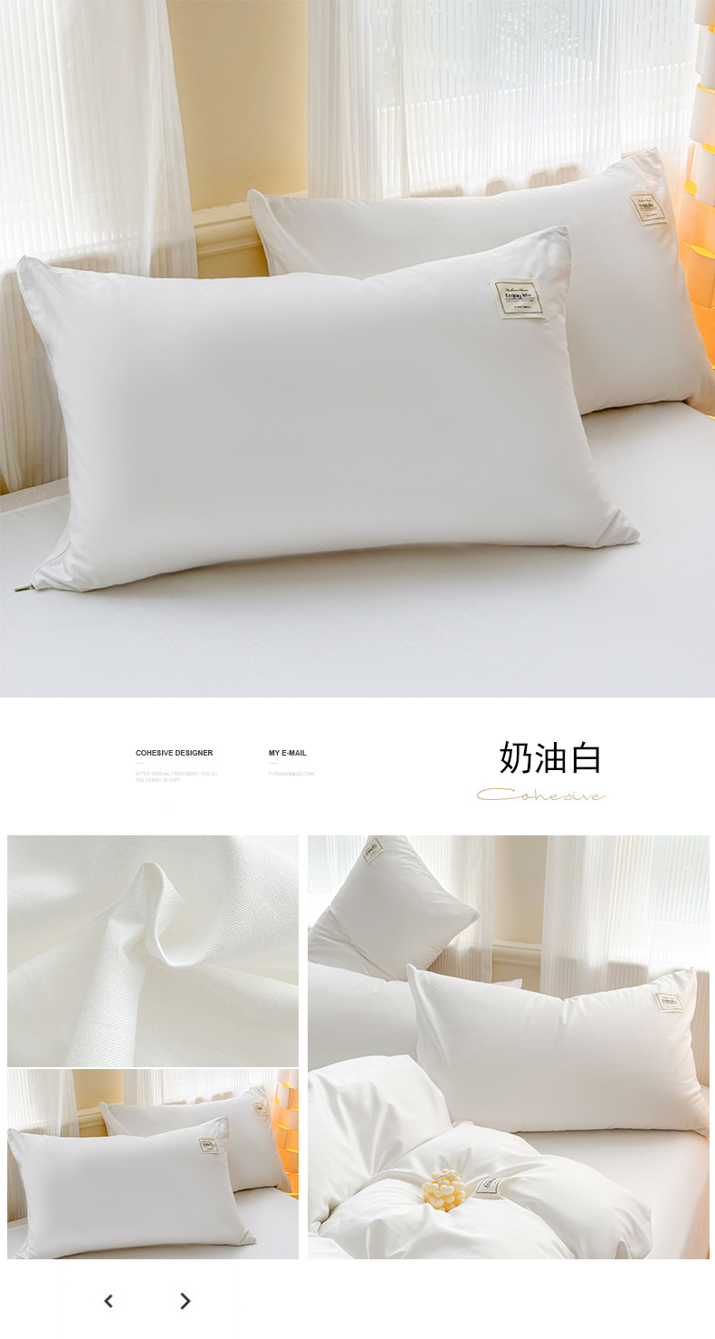 商品名称:花香四季家纺 2025新款全棉13376纯棉素色四件套系列单品枕套 奶油白