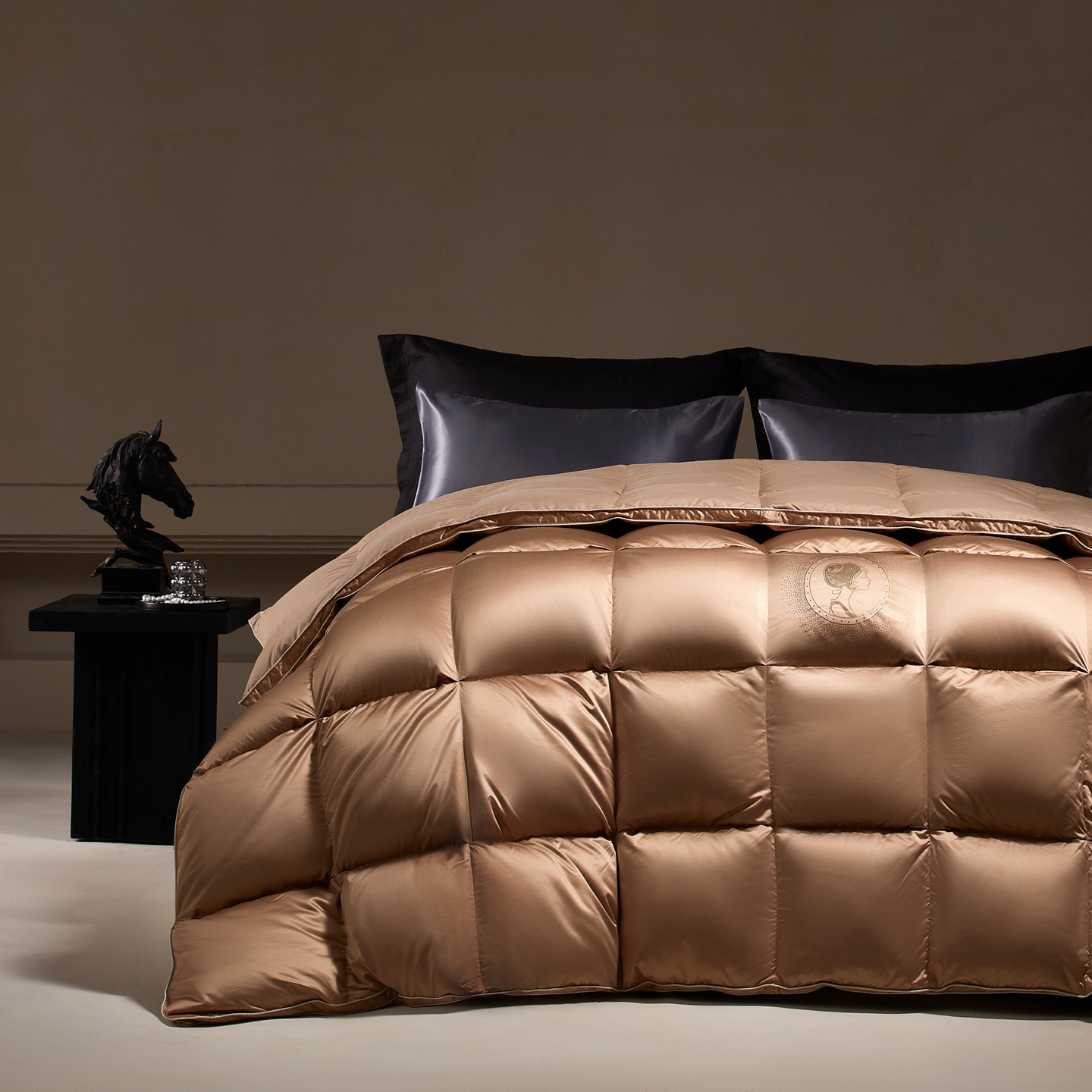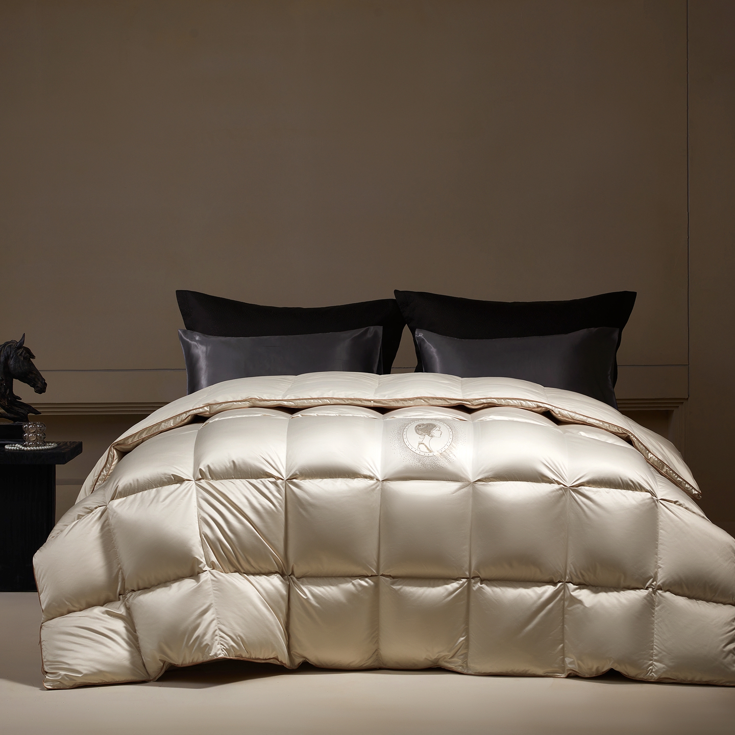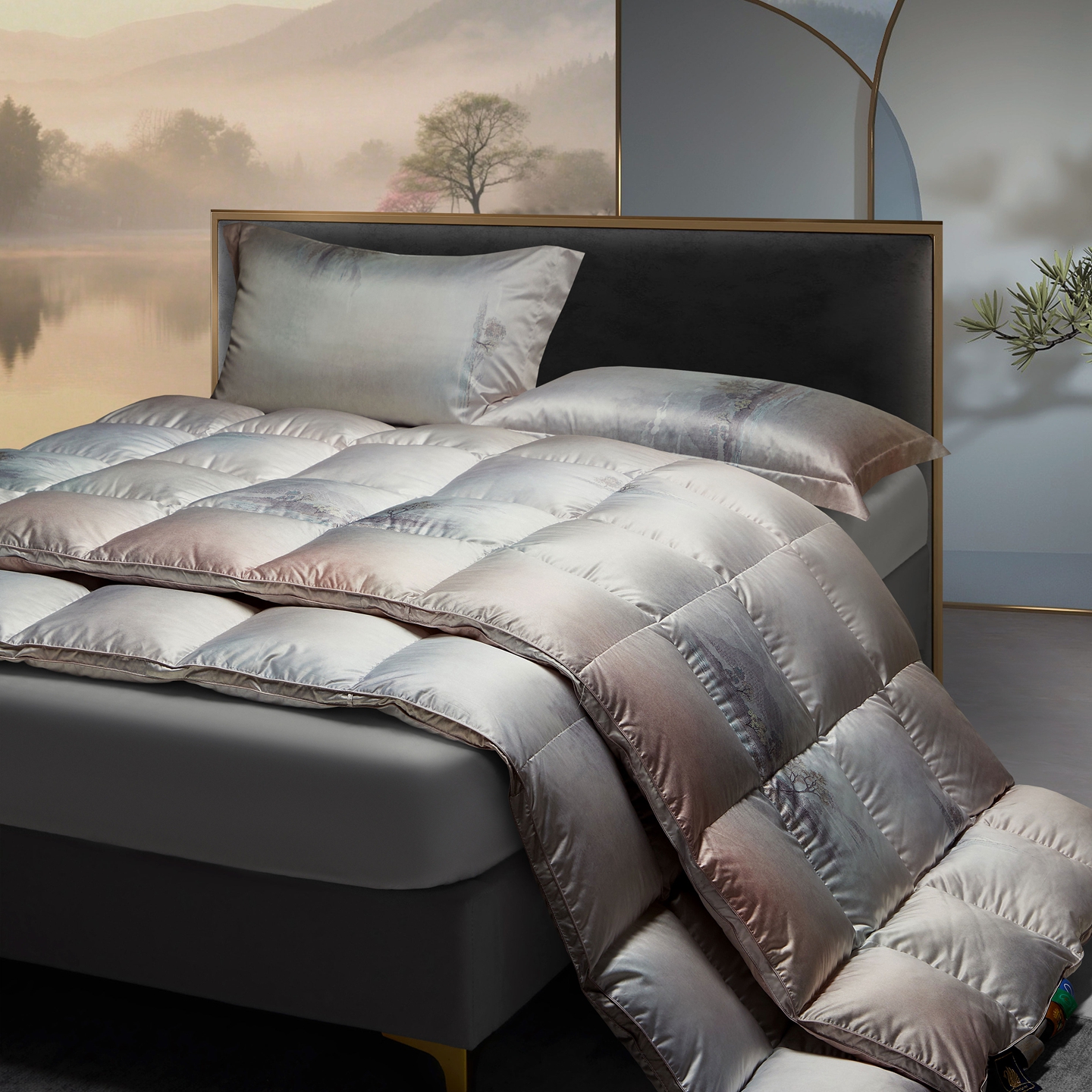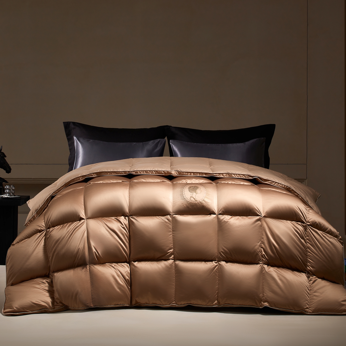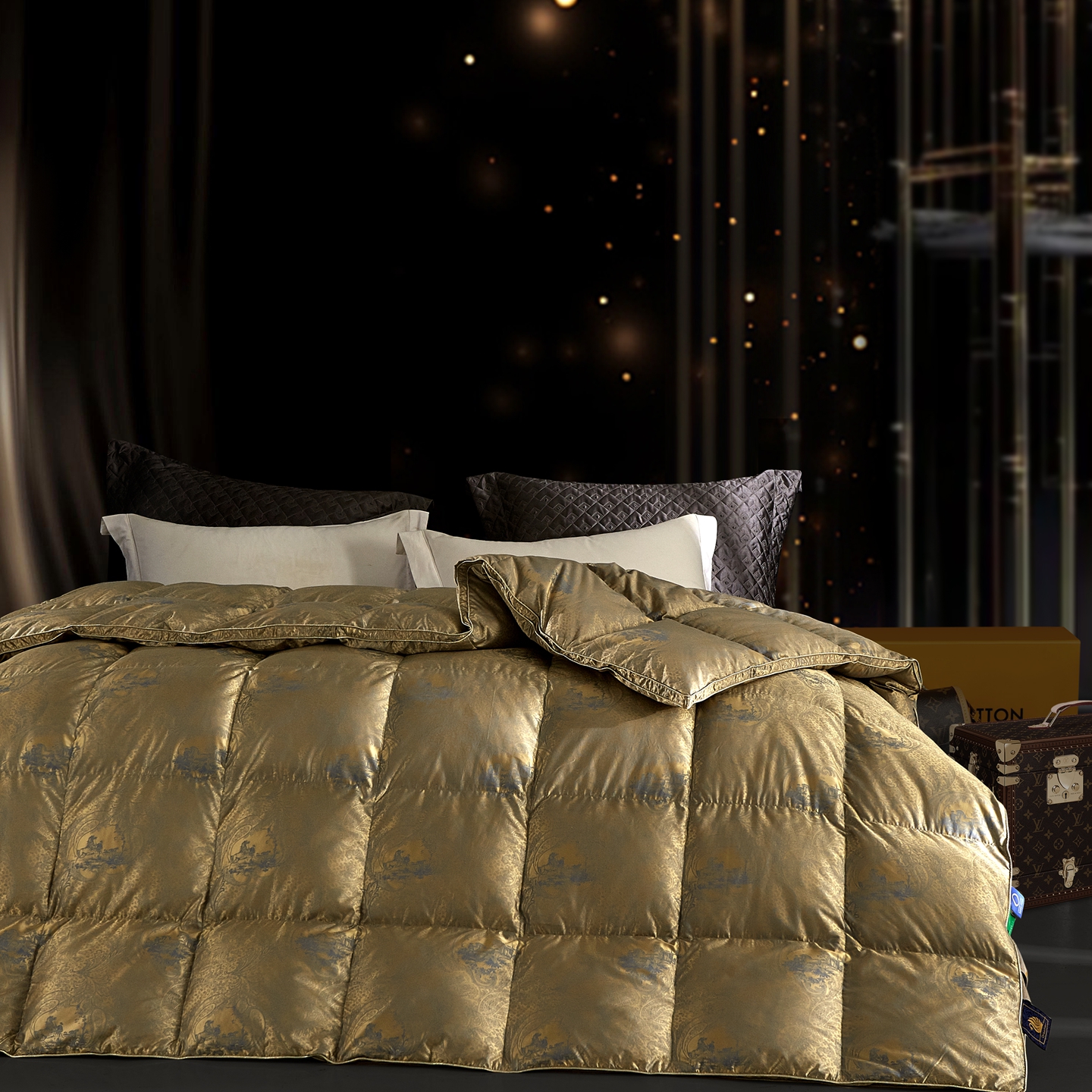 (总)织梦人羽绒工厂店 2025新款高端100支长绒棉德国进口软银丝全棉95鹅绒羽绒被,凤翎-黑金