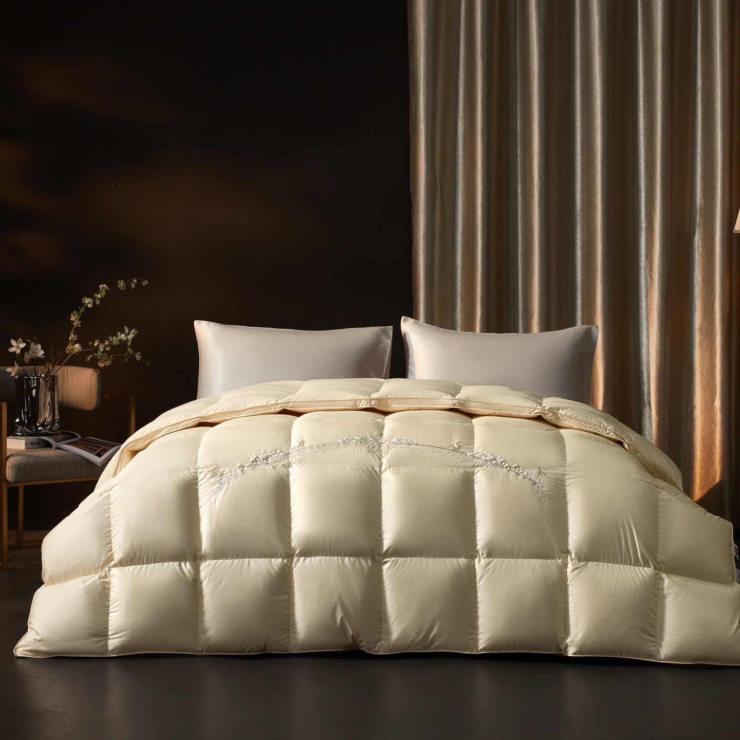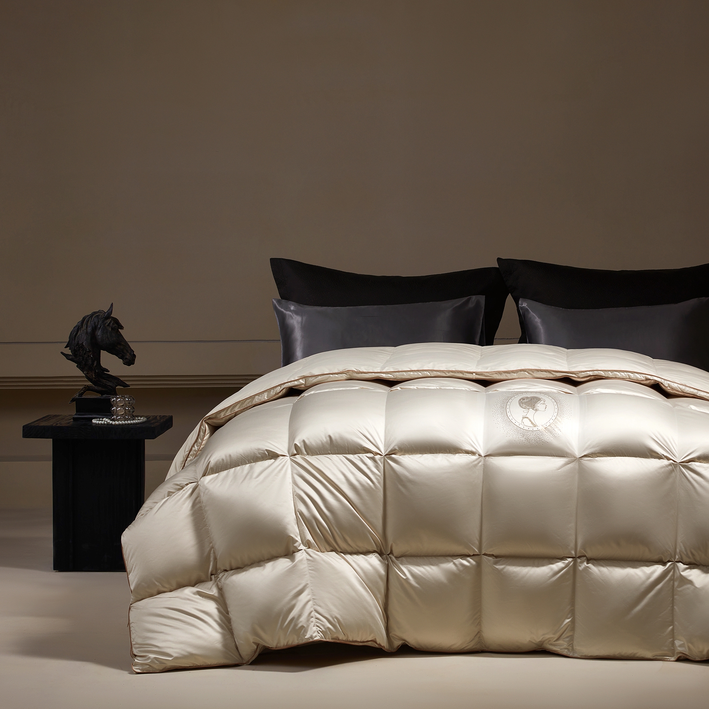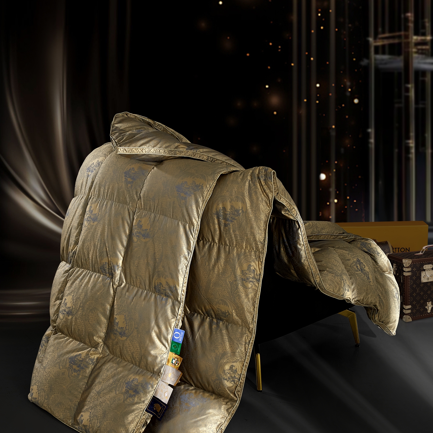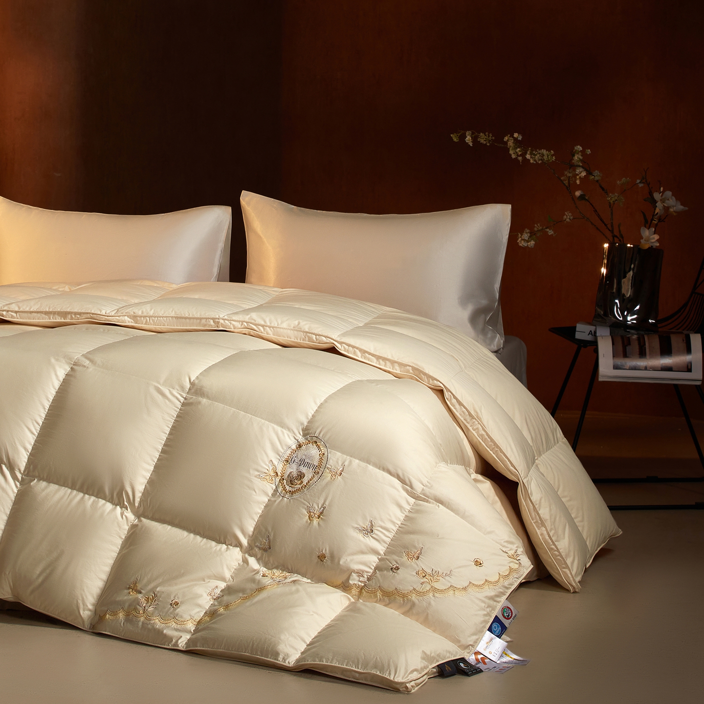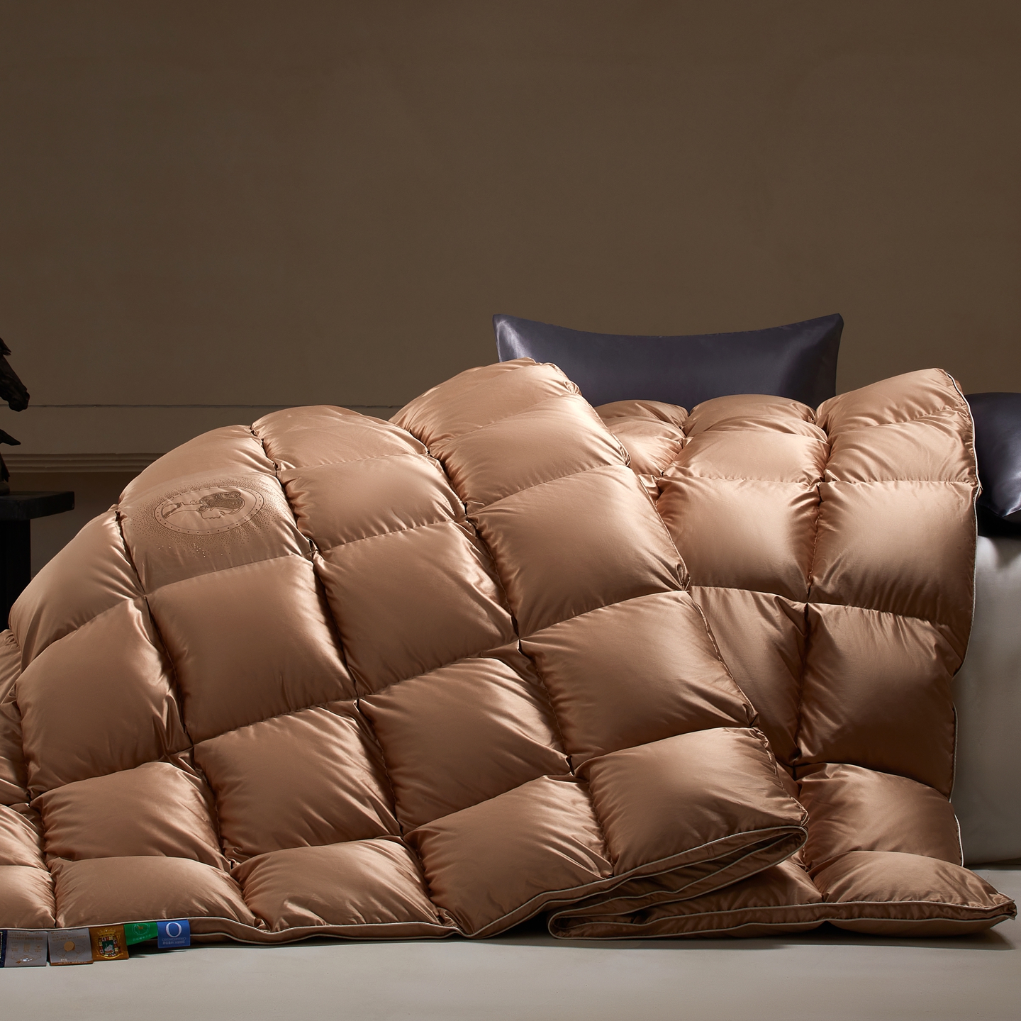 (总)织梦人羽绒工厂店 2025新款高端100支长绒棉德国进口软银丝全棉95鹅绒羽绒被,凤翎-黑金