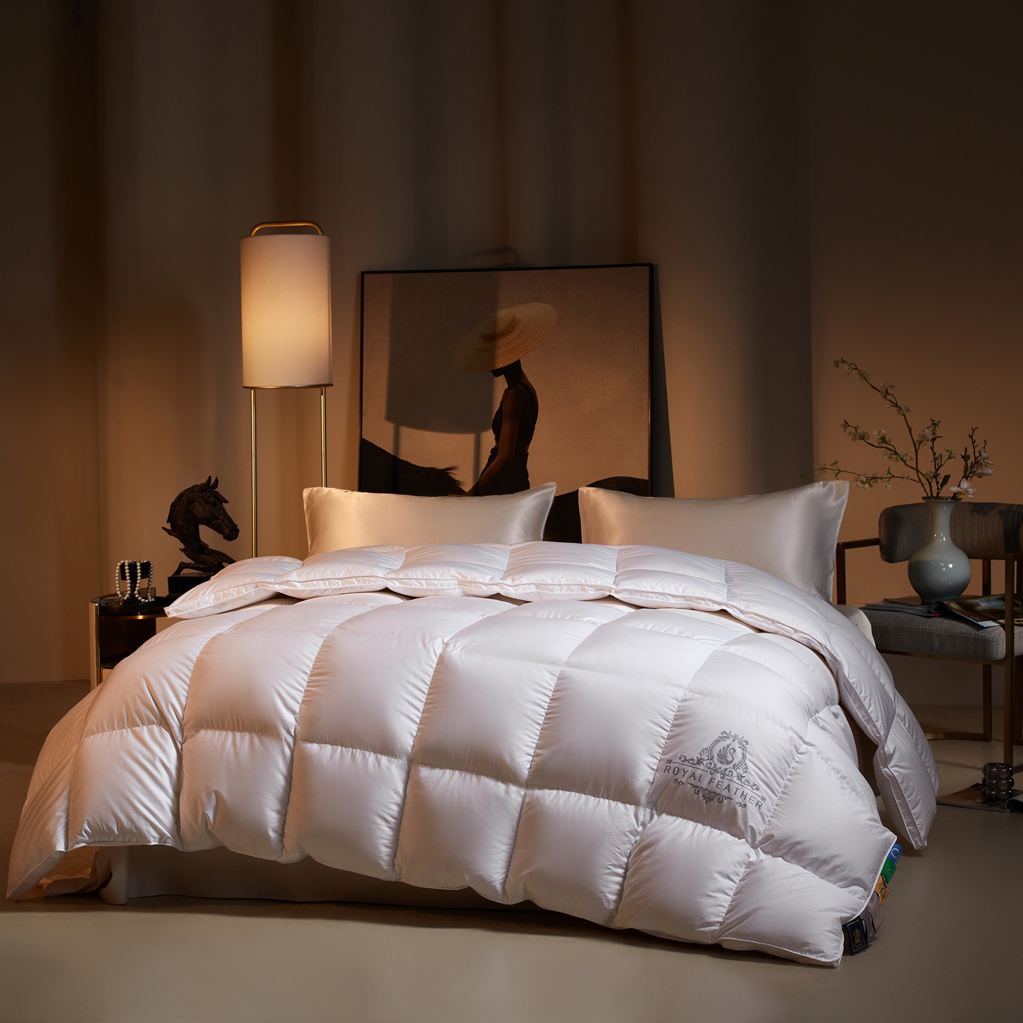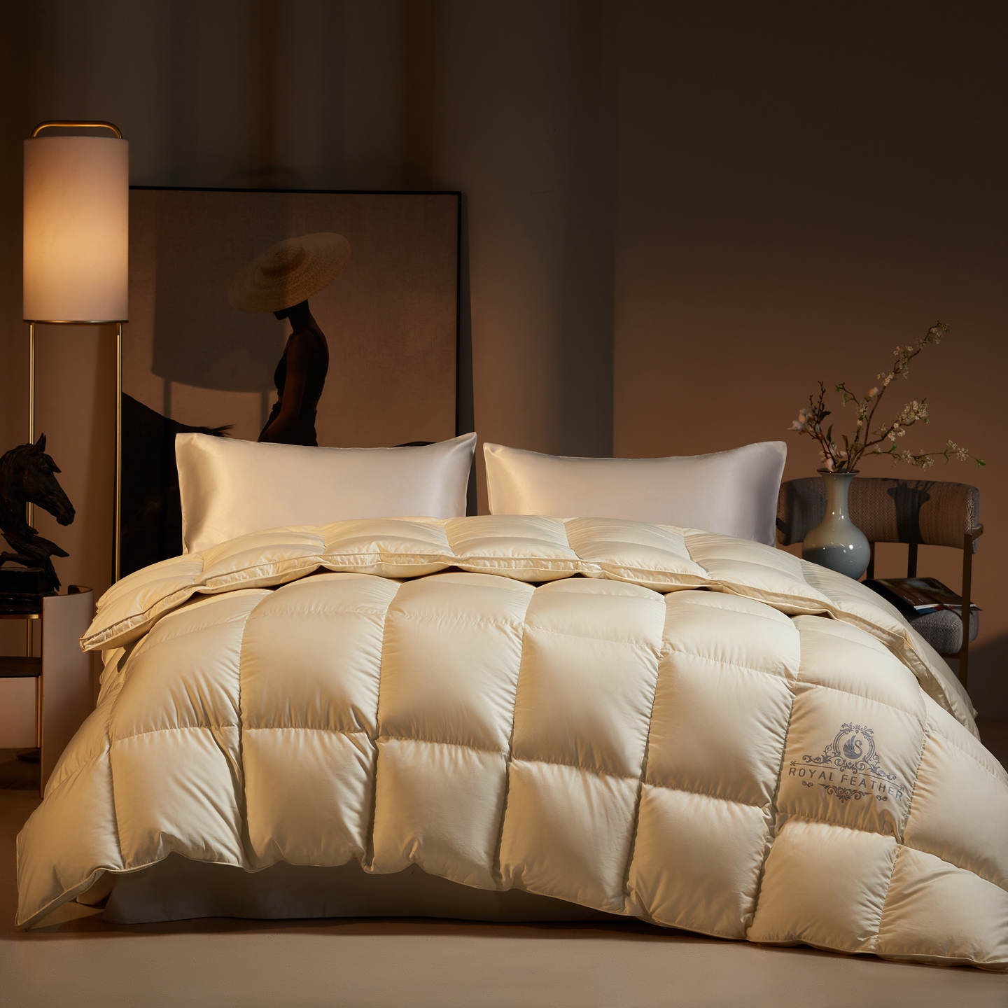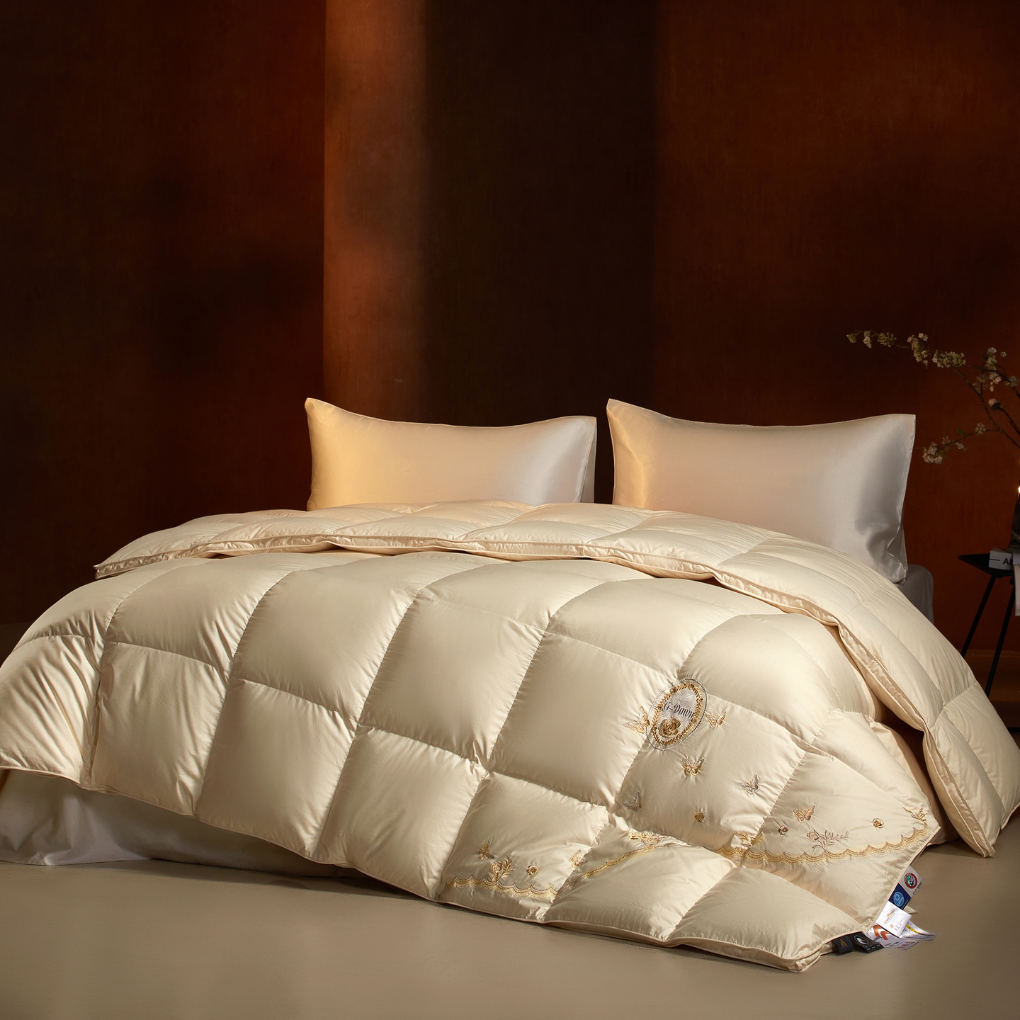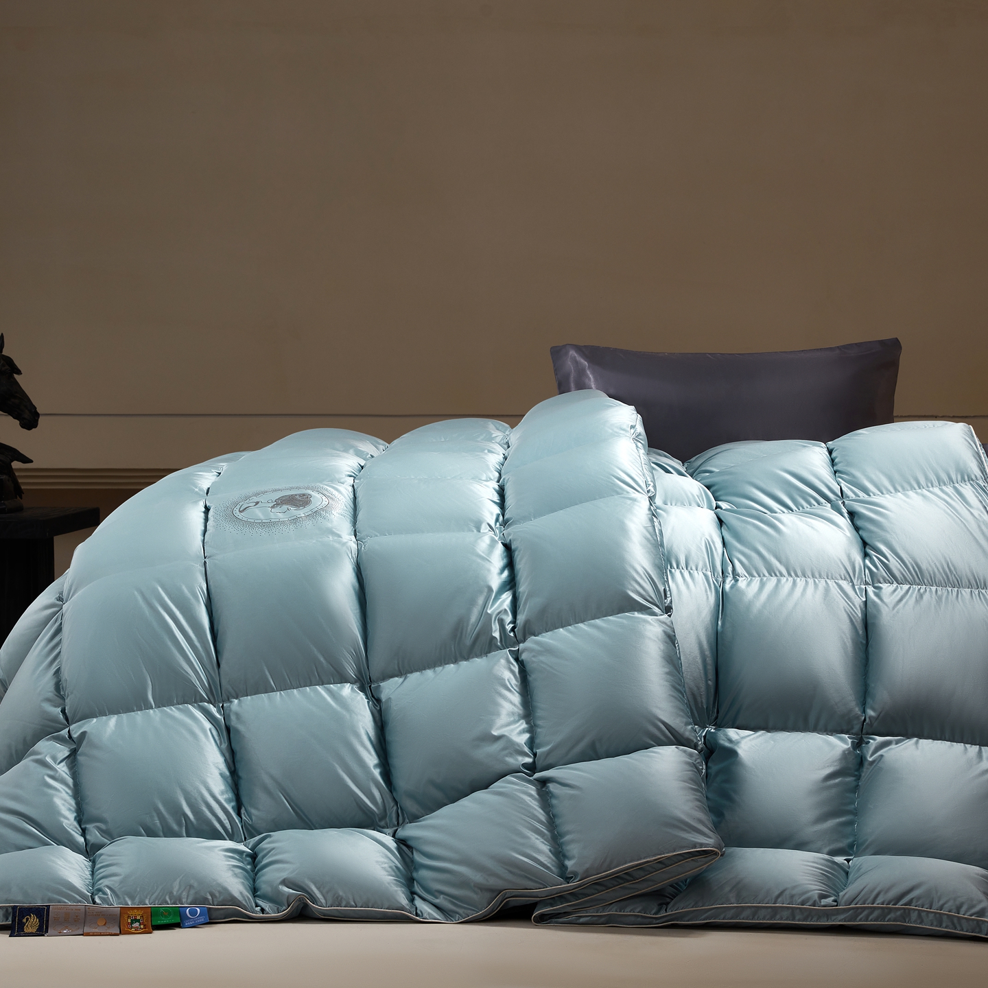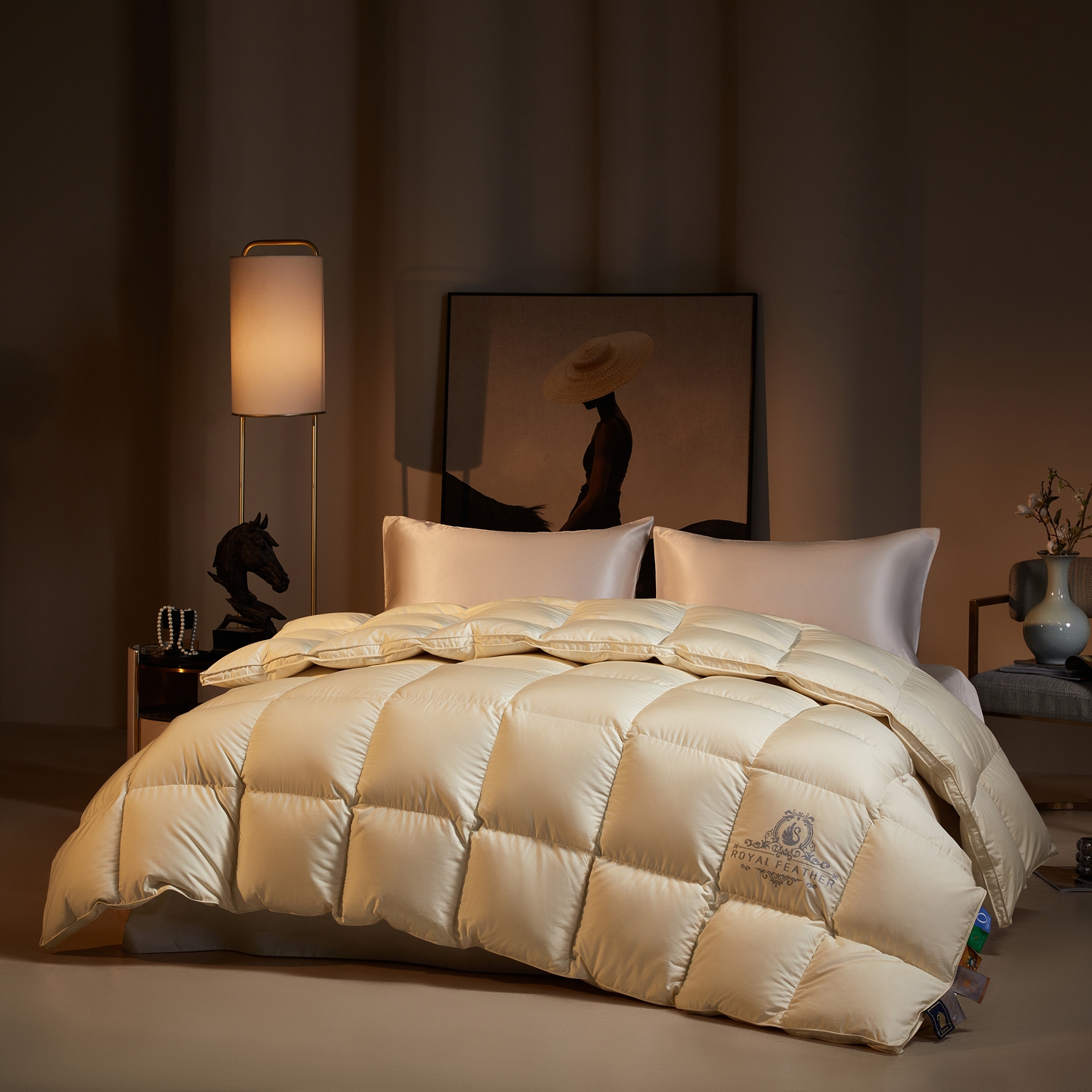 (总)织梦人羽绒工厂店 2025新款高端100支长绒棉德国进口软银丝全棉95鹅绒羽绒被,凤翎-黑金