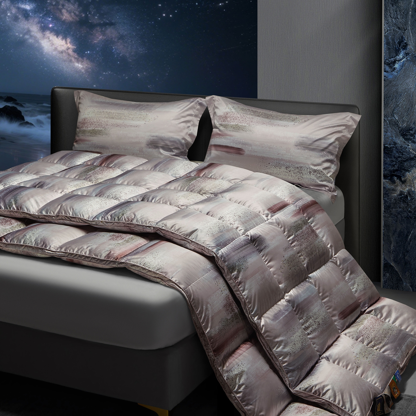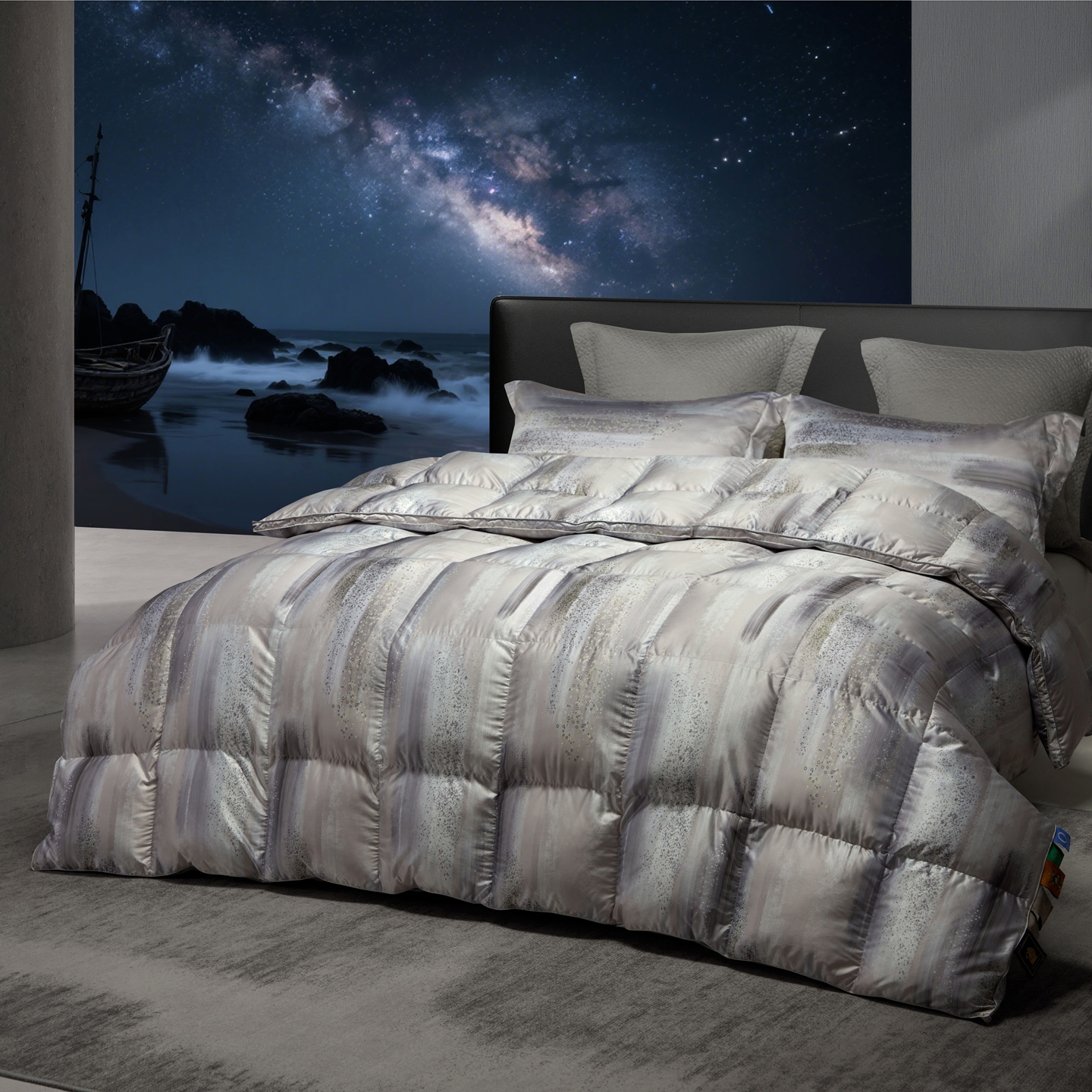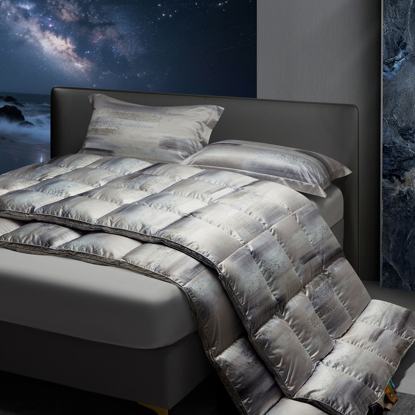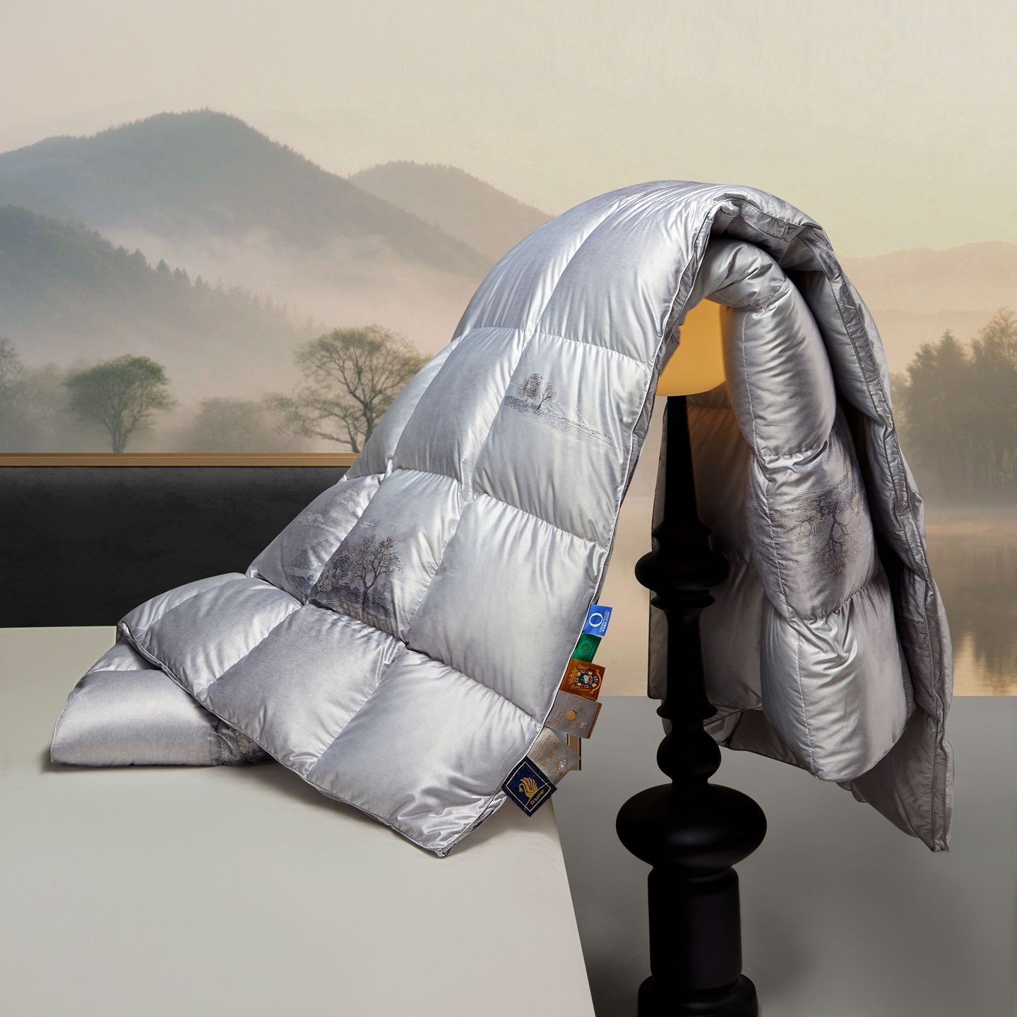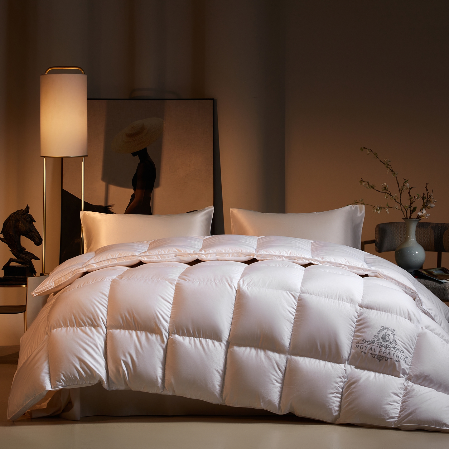 (总)织梦人羽绒工厂店 2025新款高端100支长绒棉德国进口软银丝全棉95鹅绒羽绒被,凤翎-黑金