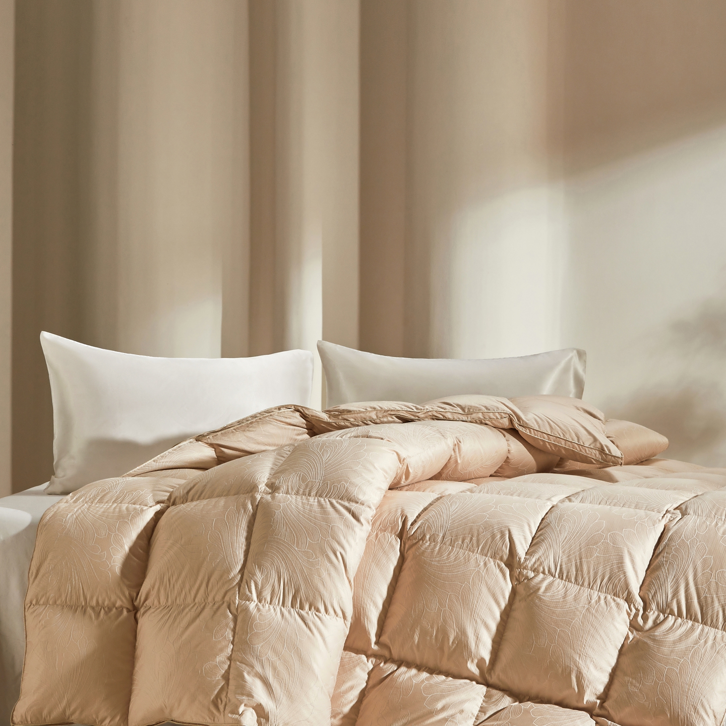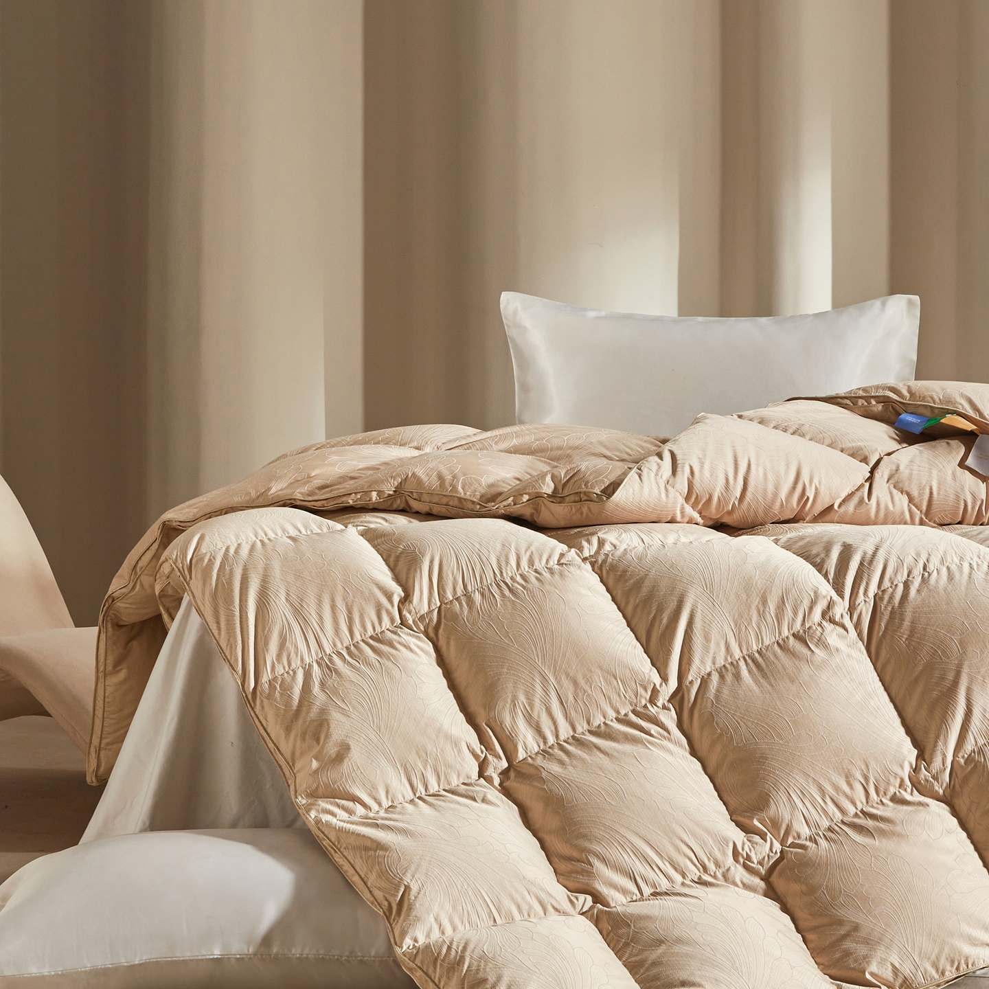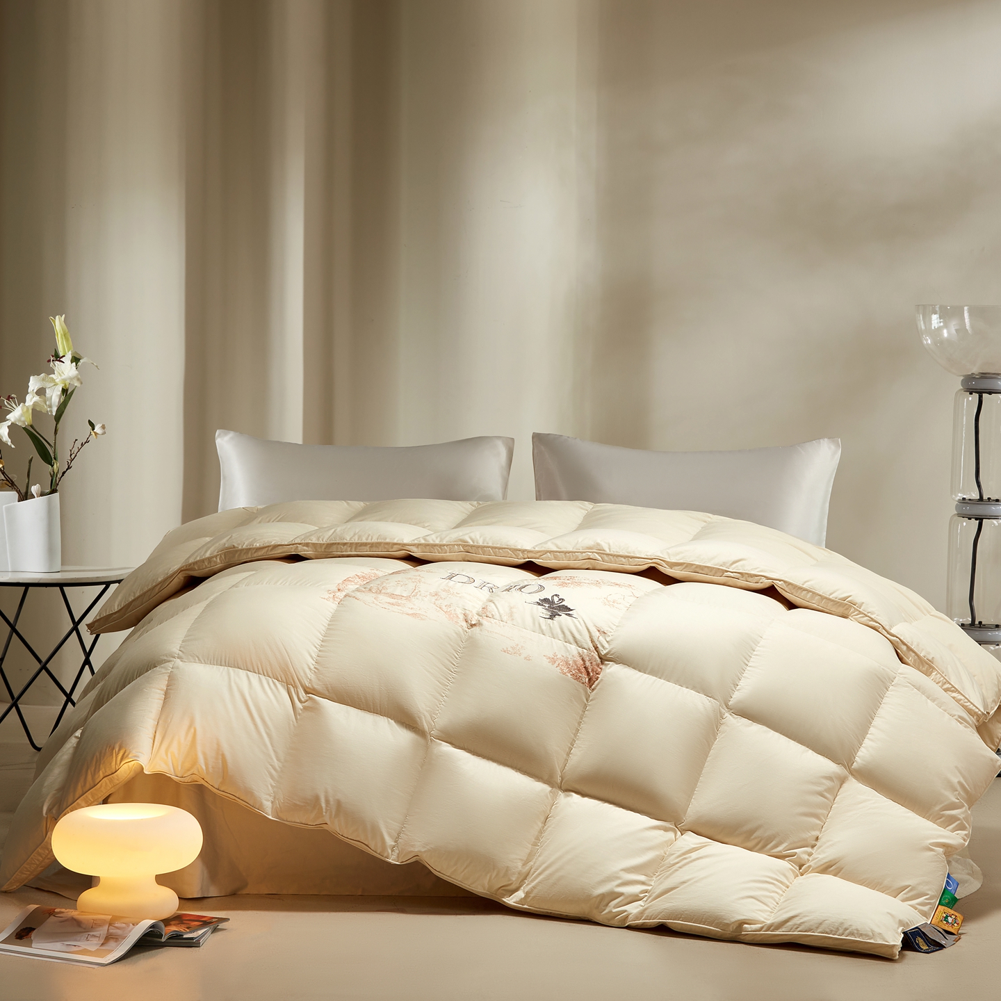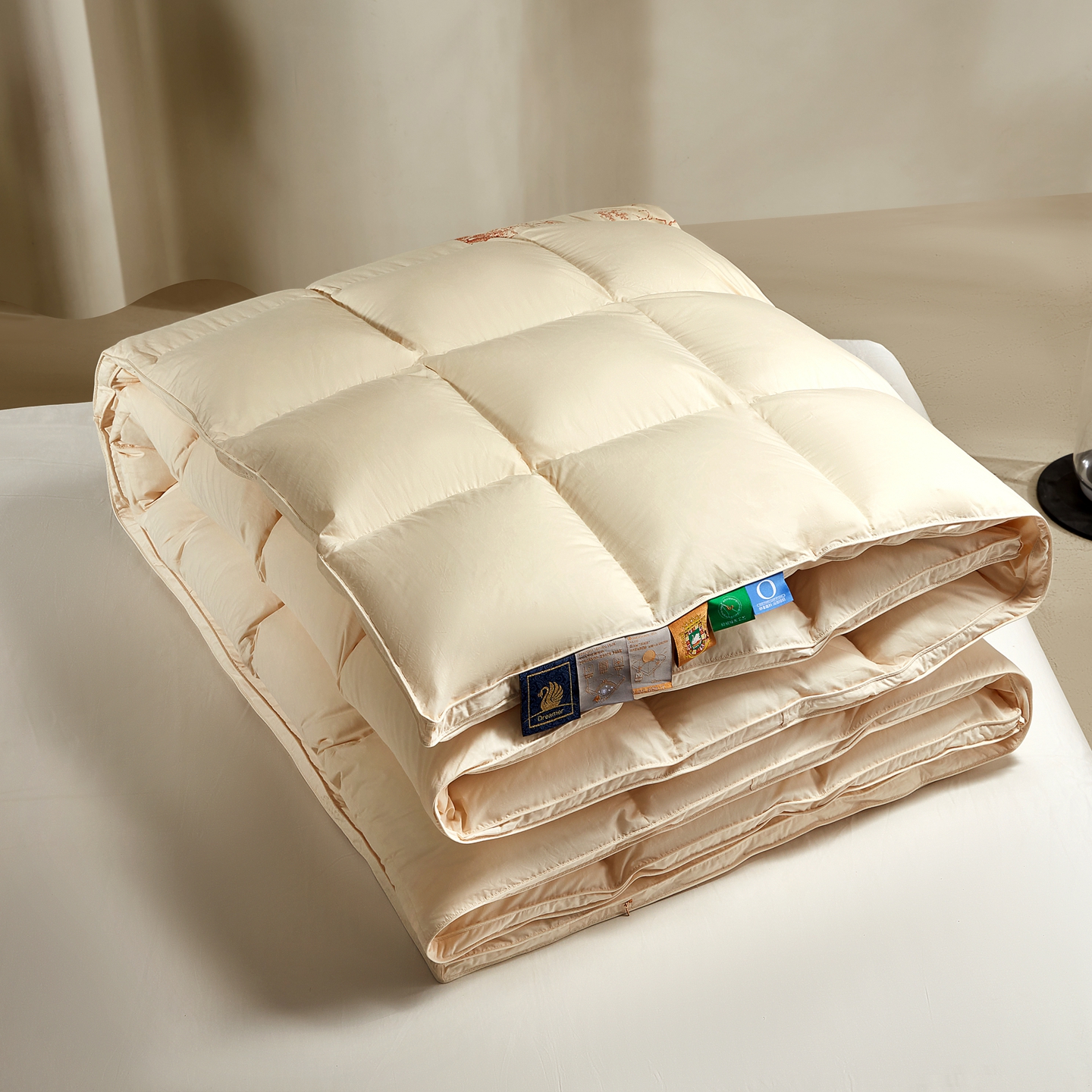 织梦人羽绒工厂店2025新款高蓬松羽绒羽毛被大牌同款花型-莱赛尔+棉纯色系列 莱赛尔-米黄,莱赛尔-米黄