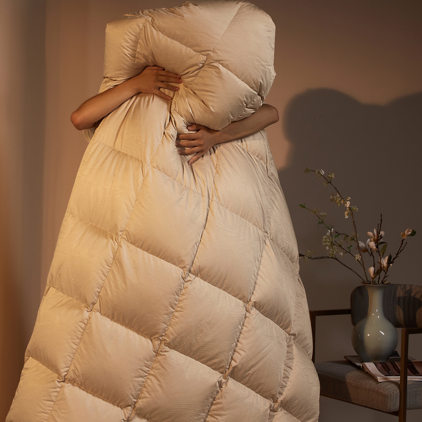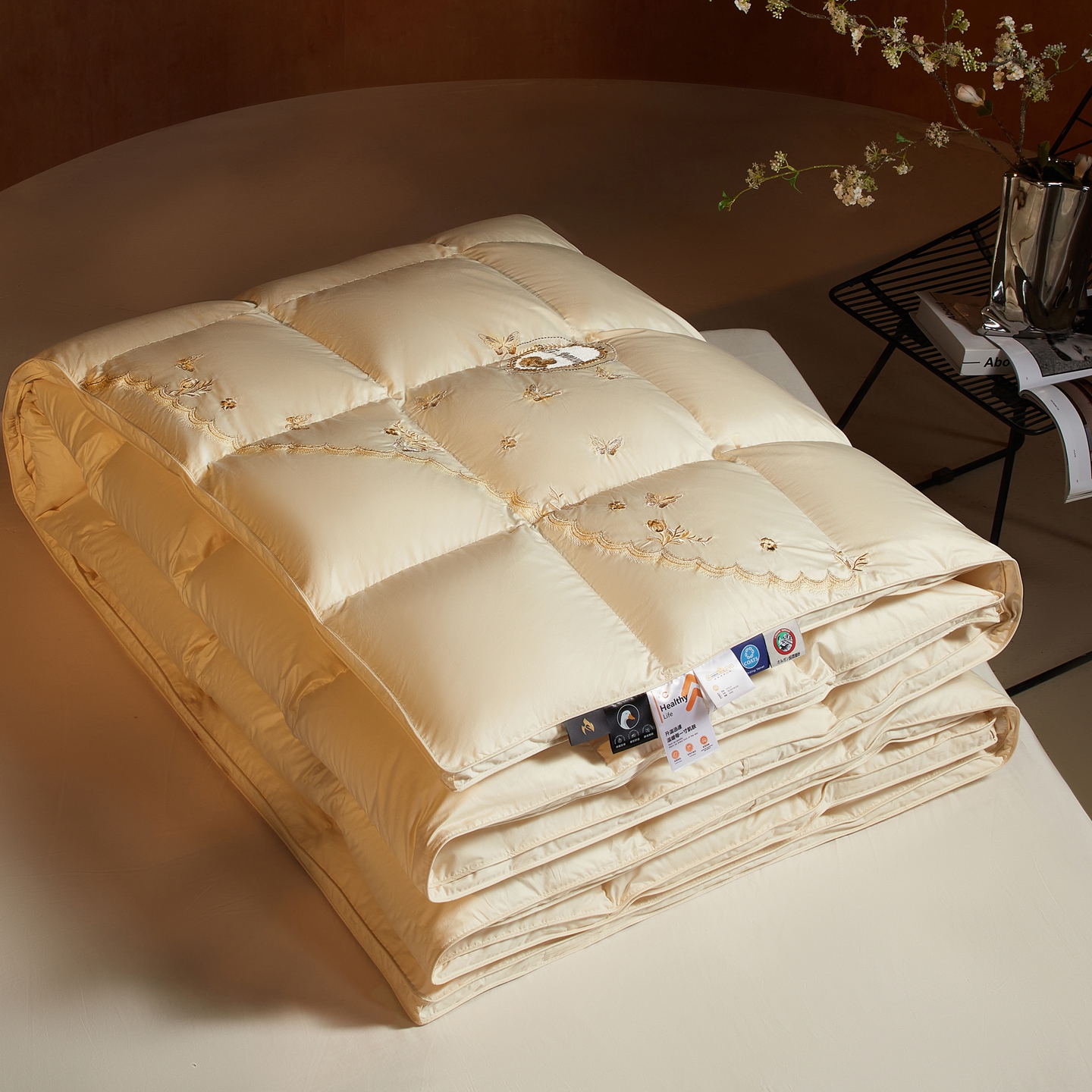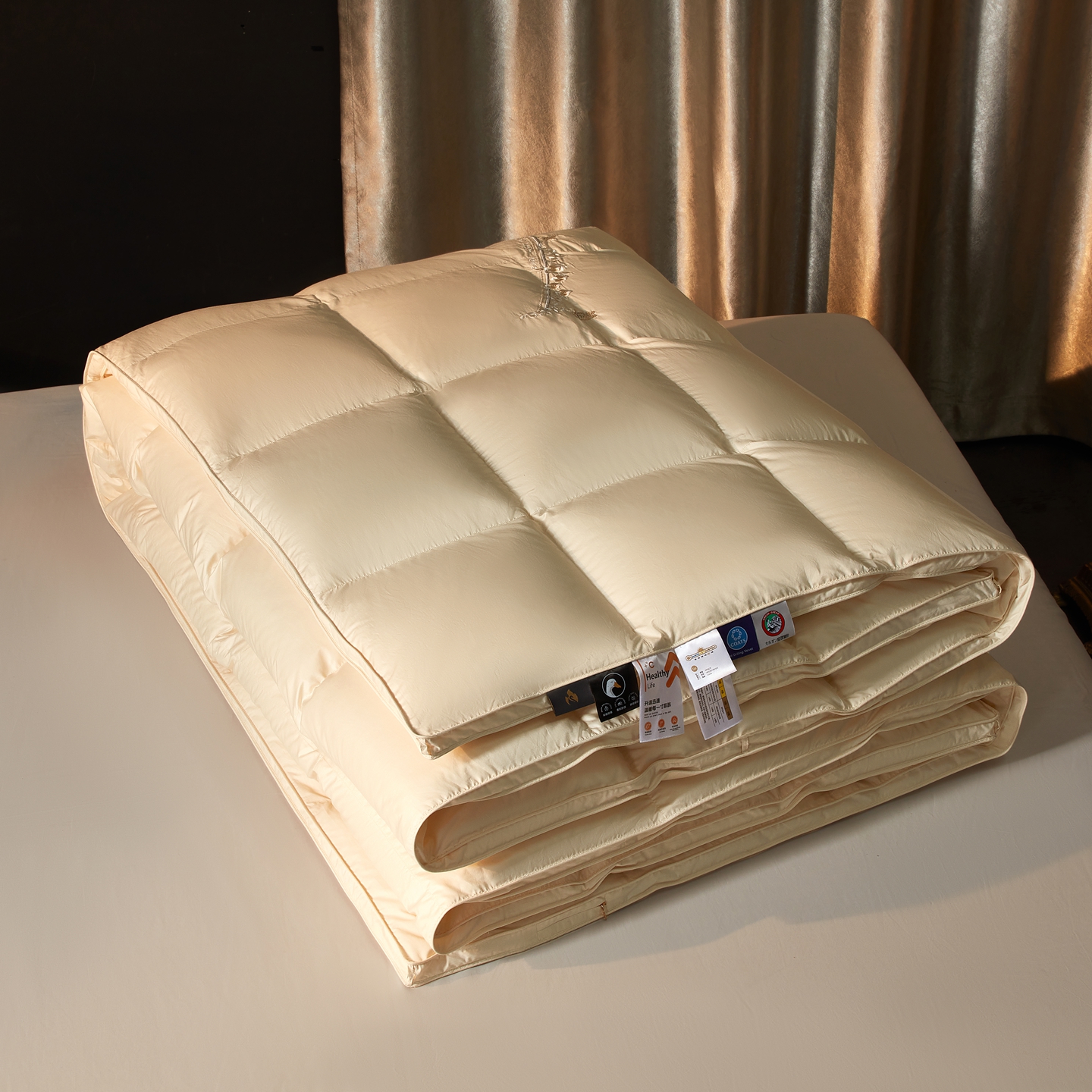 织梦人羽绒工厂店2025新款高蓬松羽绒羽毛被大牌同款花型-莱赛尔+棉纯色系列 莱赛尔-米黄,莱赛尔-米黄