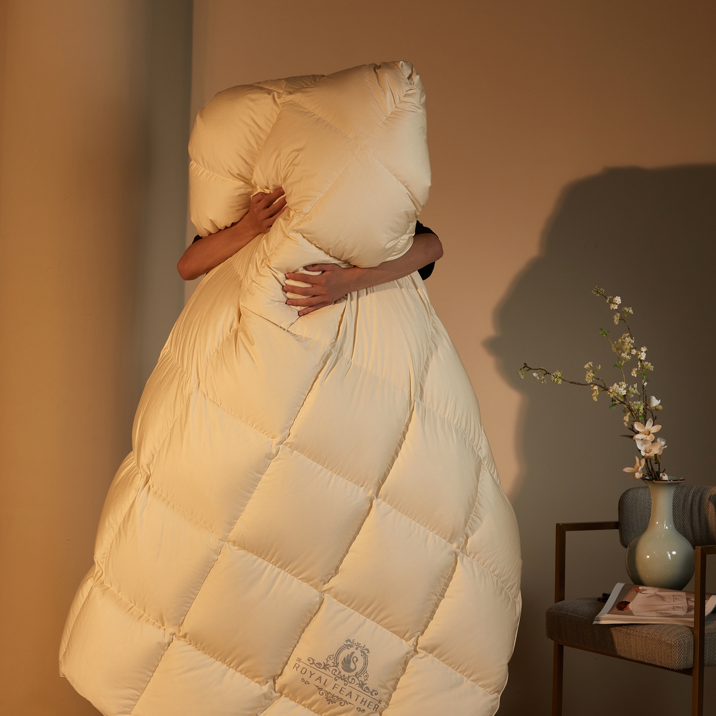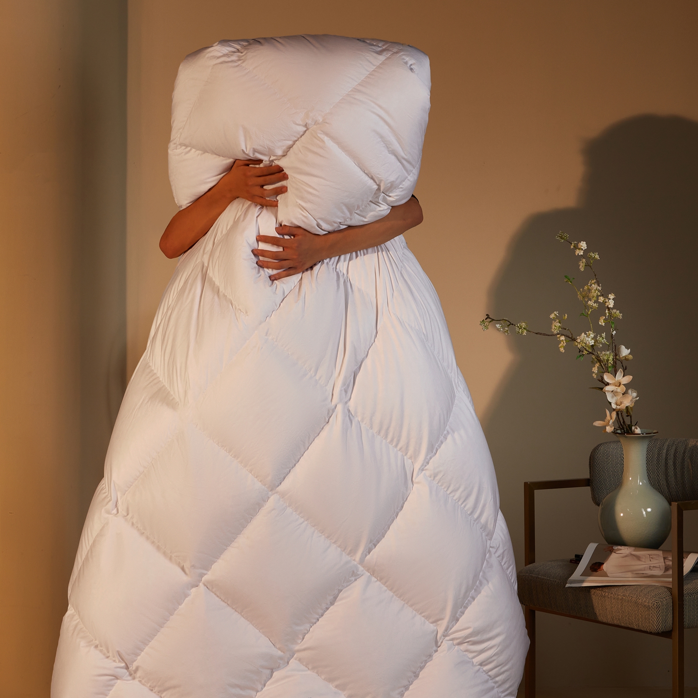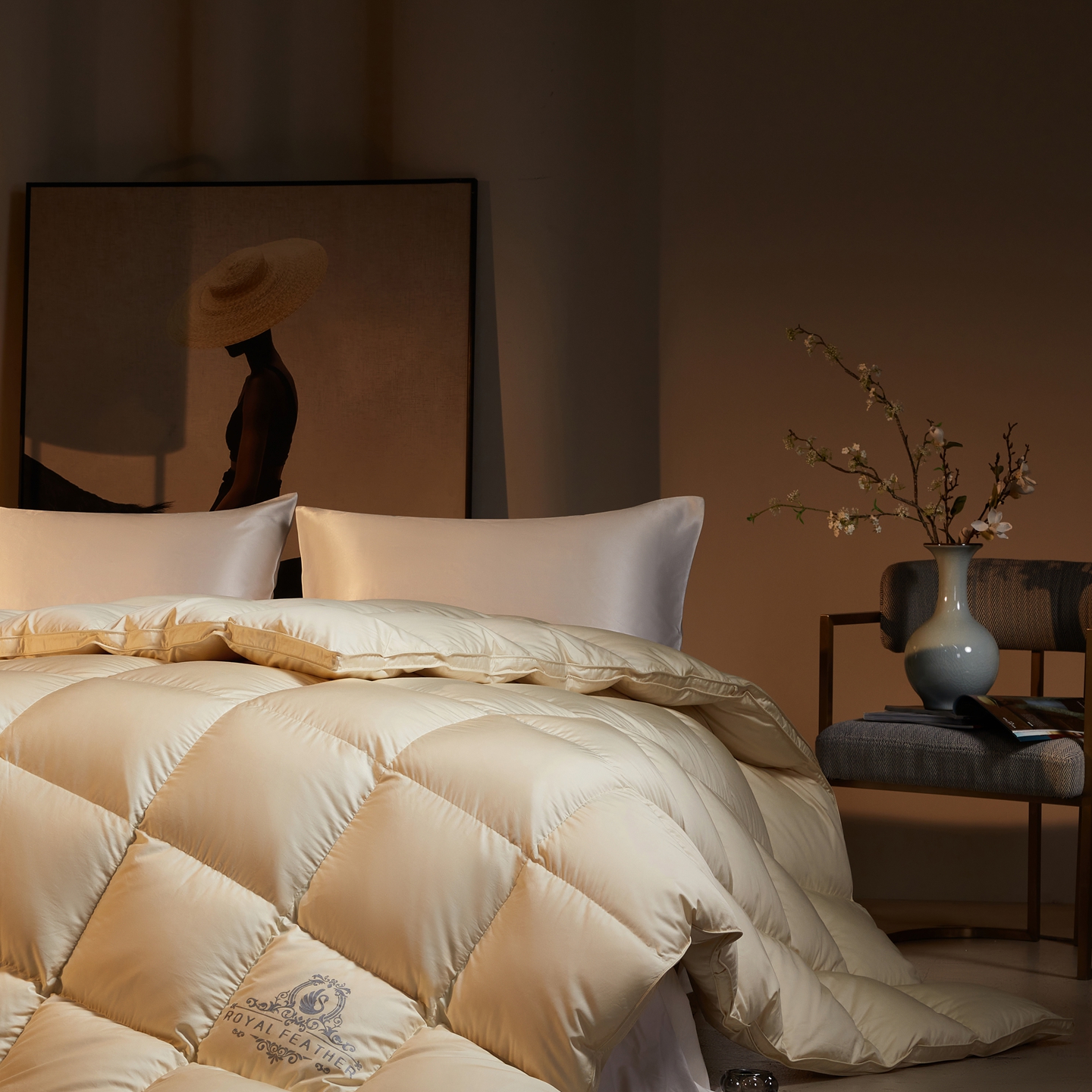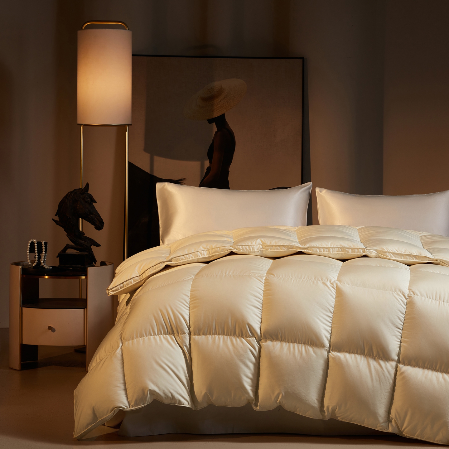 织梦人羽绒工厂店2025新款高蓬松羽绒羽毛被大牌同款花型-莱赛尔+棉纯色系列 莱赛尔-米黄,莱赛尔-米黄