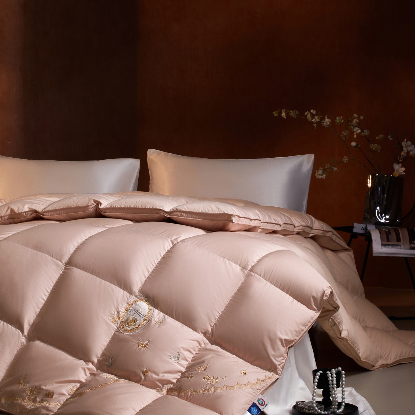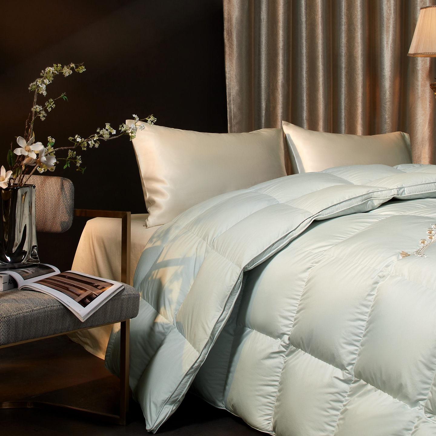 (总)织梦人羽绒工厂店 2025新款高蓬松羽绒被95鹅绒大牌同款花型-真丝缎米字系列,贵夫人真丝缎-豆沙,贵夫人真丝缎-咖啡,贵夫人真丝缎-米白,贵夫人真丝缎-水绿