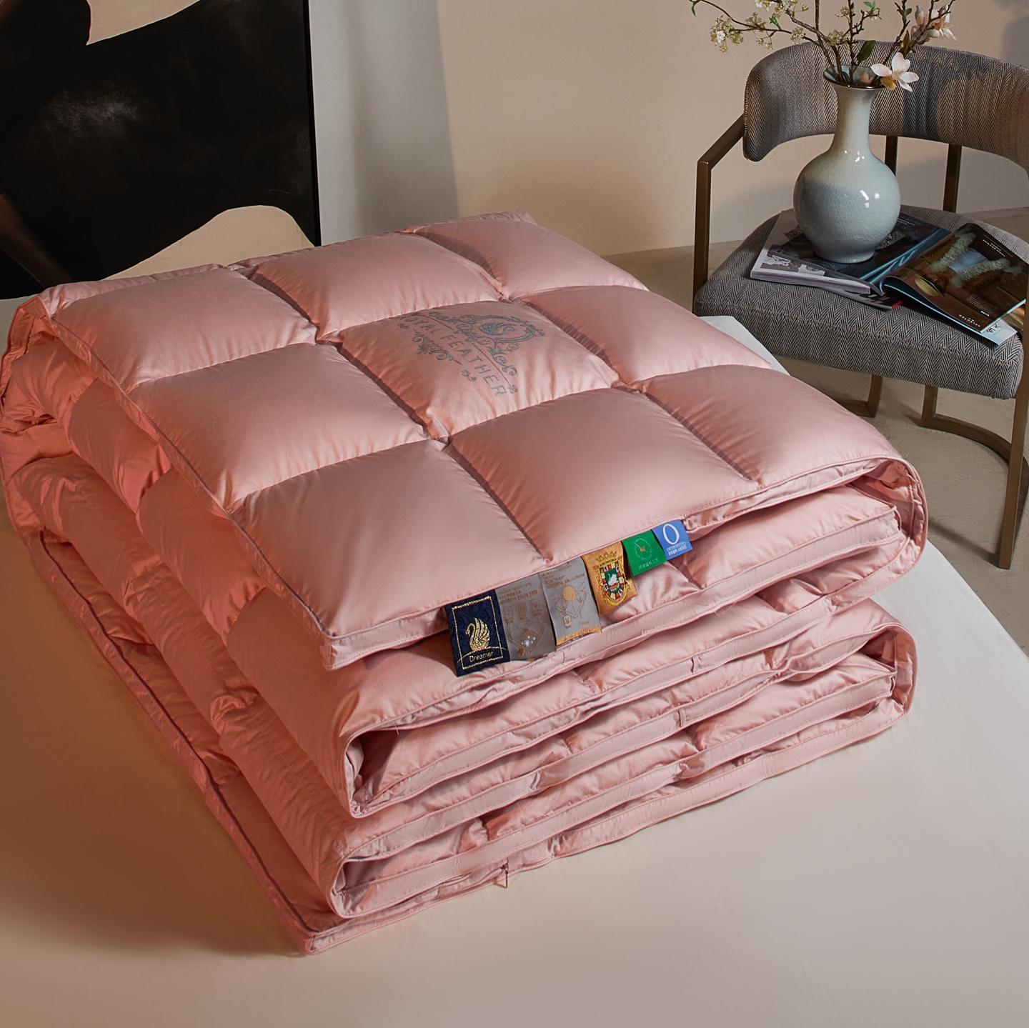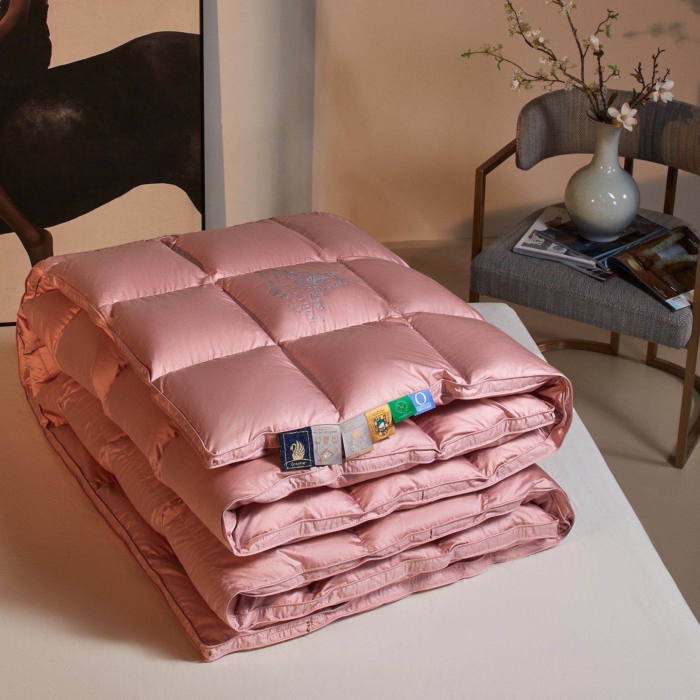 (总)织梦人羽绒工厂店 2025新款高蓬松羽绒羽毛被大牌同款花型,爱丁堡豆沙,爱丁堡珍珠白,春风浅浅,德伦娜,观沧海粉,观沧海金,罗马风情,莫奈花园新,尊羽