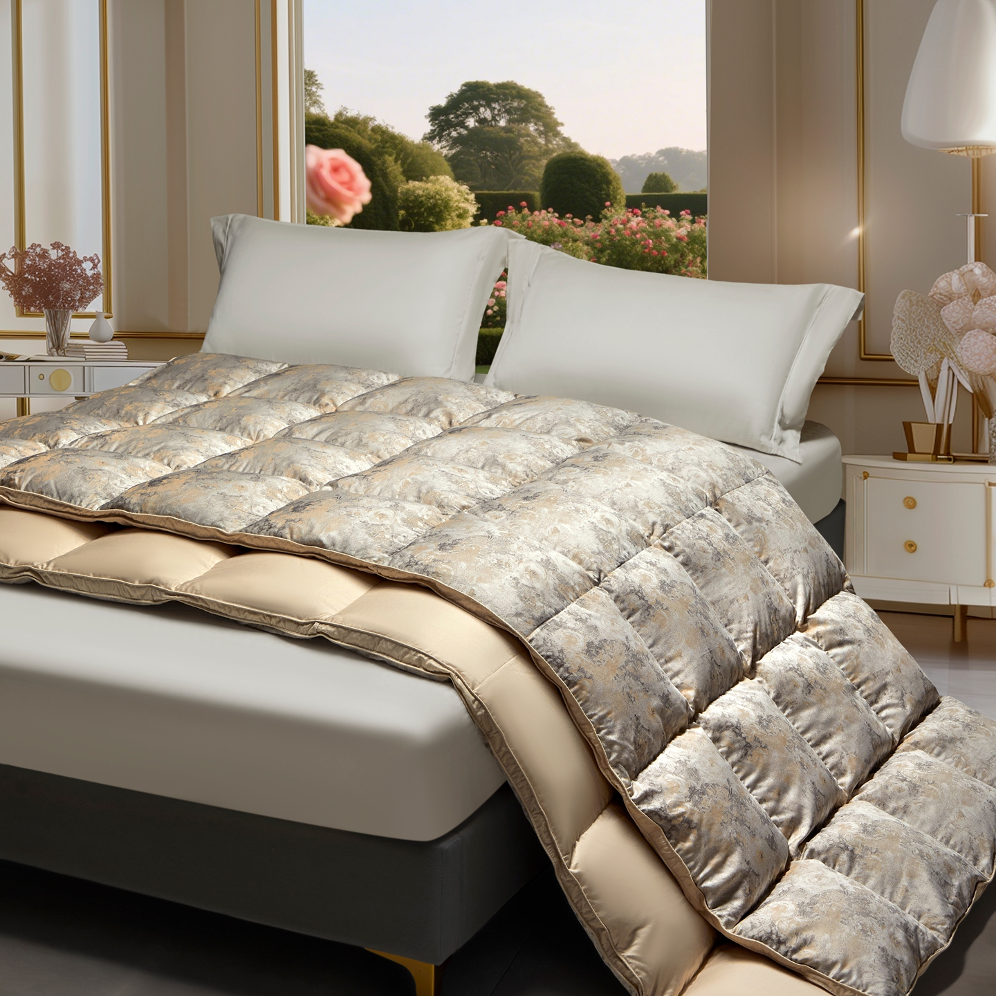 (总)织梦人羽绒工厂店 2025新款高蓬松羽绒羽毛被大牌同款花型-真丝缎米字系列,贵夫人真丝缎-豆沙,贵夫人真丝缎-金咖,贵夫人真丝缎-珍珠白,贵夫人真丝缎-蓝