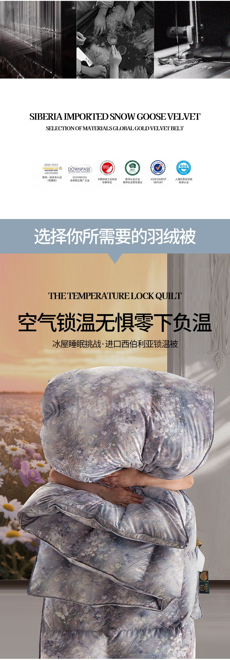 商品名称:织梦人羽绒工厂店 2025新款高蓬松羽绒被85鸭绒大牌同款花型 春风浅浅