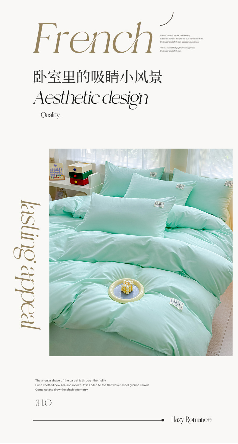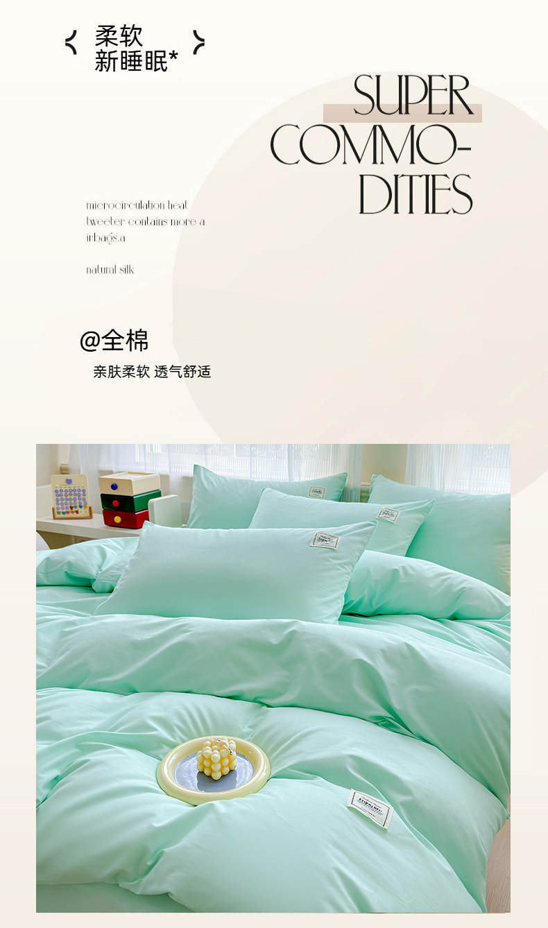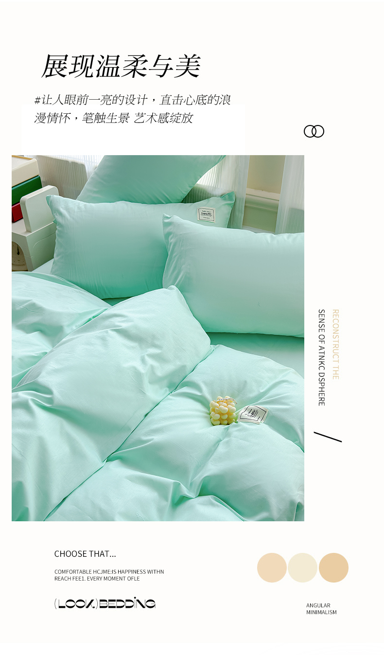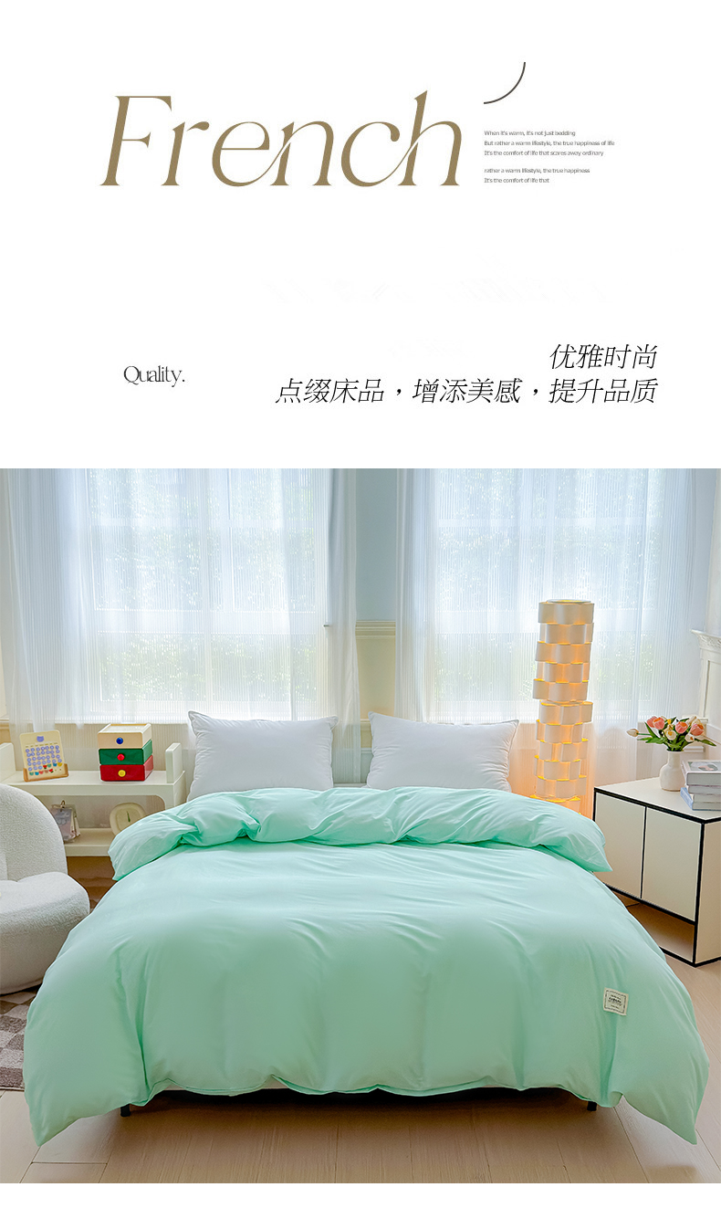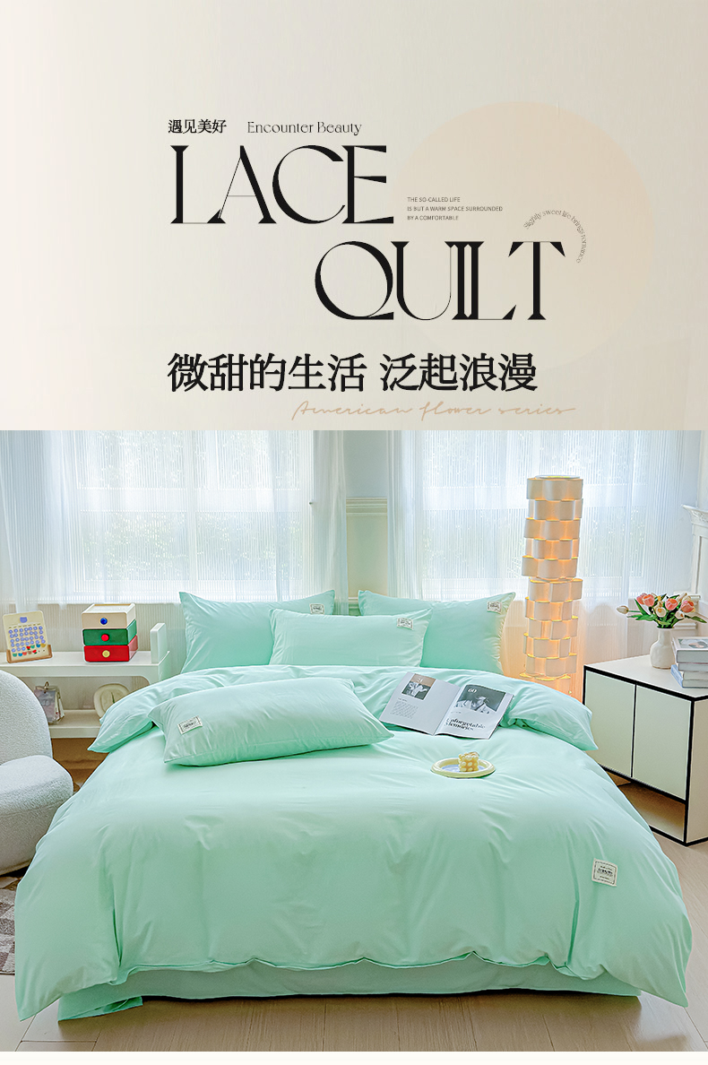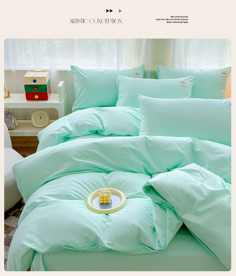 当前位置: 91家纺网 > 商品网购 > 床品套件 > 四件套 > 全棉普通四件套 > 花香四季家纺 2025新款全棉13376纯棉素色四件套系列床单床笠枕套单品 薄荷绿