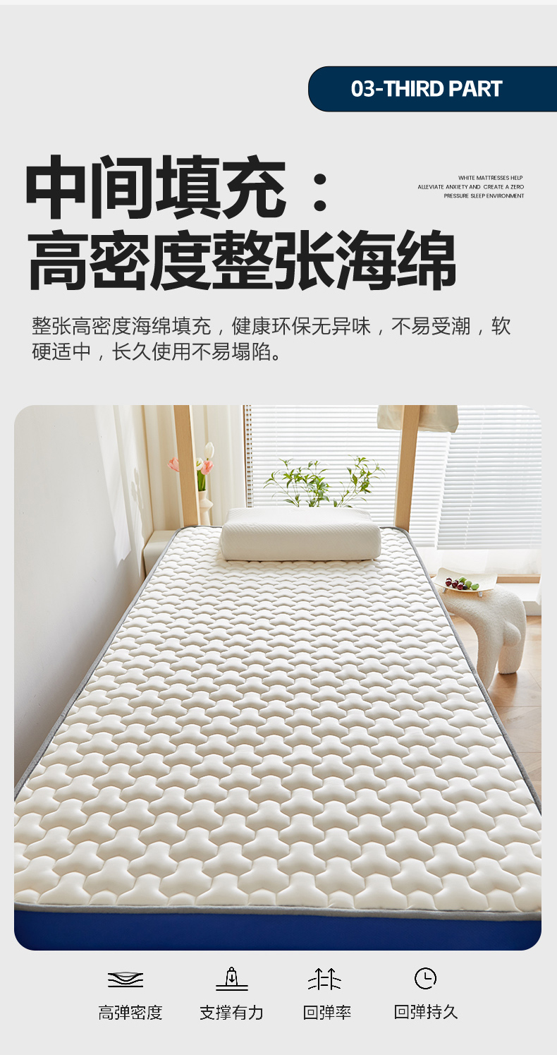当前位置: 91家纺网 > 商品网购 > 床垫/床褥 > 普通床垫 > 暖季家纺 暖季家纺 2025新款立体三菱格海绵学生床垫 立体海绵灰-三棱格白