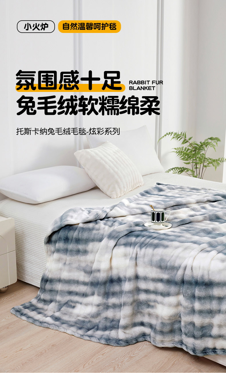 当前位置: 91家纺网 > 商品网购 > 毛毯休闲毯绒毯 > 毛毯 > 肖恩毯业 2025新款托斯卡纳兔毛绒炫彩毛毯泡泡绒牛奶绒毯沙发盖毯跨境专供外贸出口可定制尺寸量大可谈 炫彩浅蓝