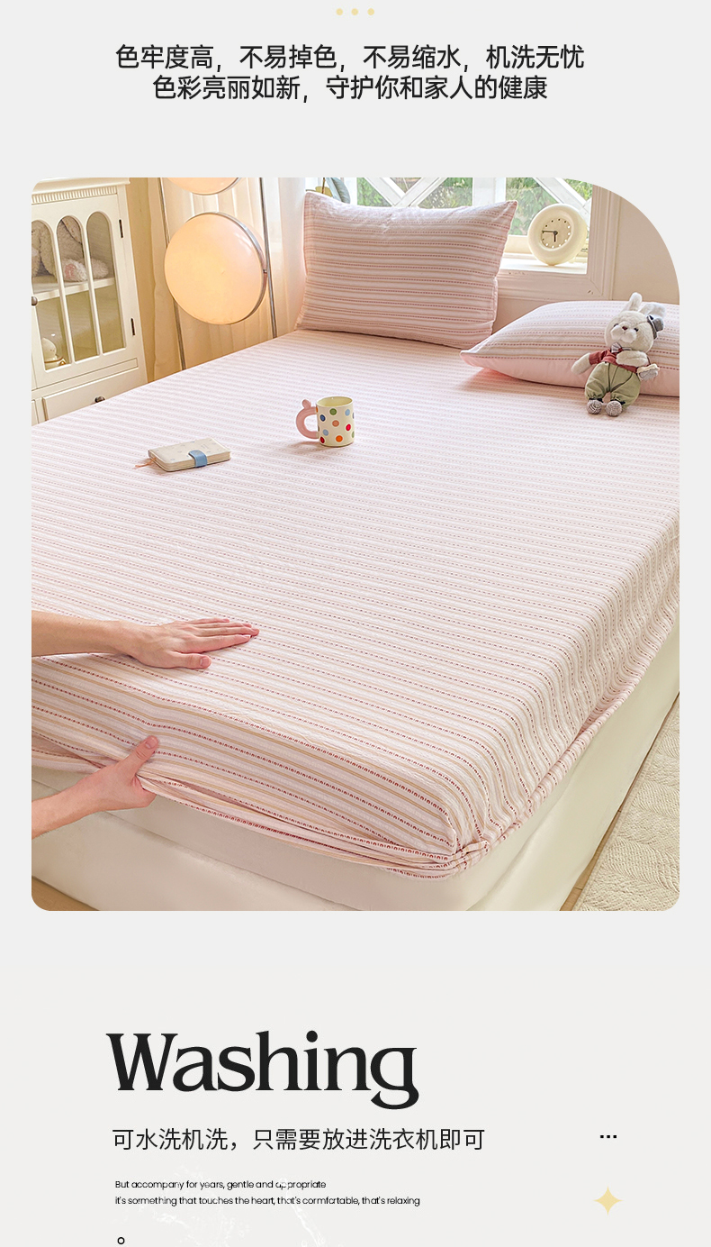 • 91家纺网 家纺一手货源 找家纺 灰鲸 2025新款全棉纯棉色织提花单床笠 床笠单件 美拉-粉