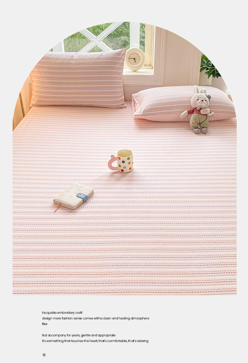 灰鲸 2025新款全棉纯棉色织提花单床笠 床笠单件 美拉-粉