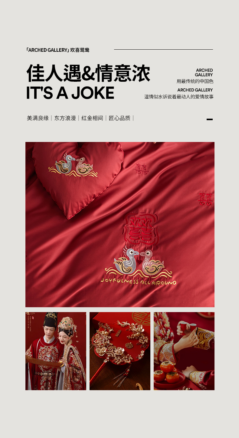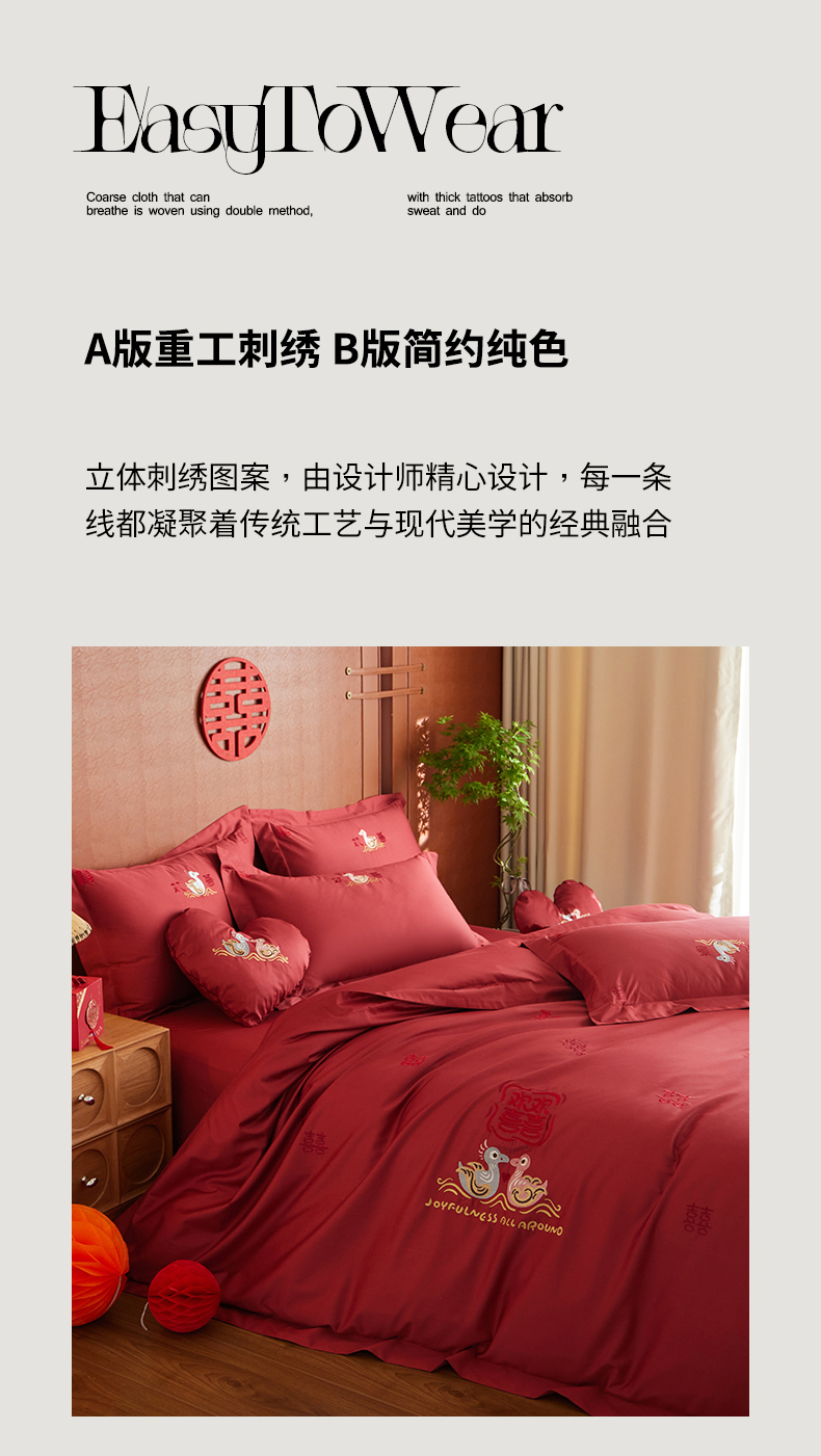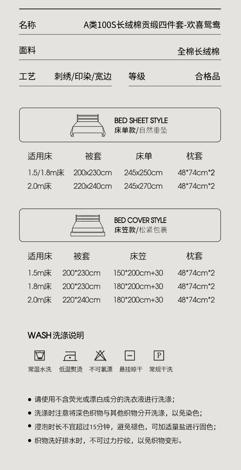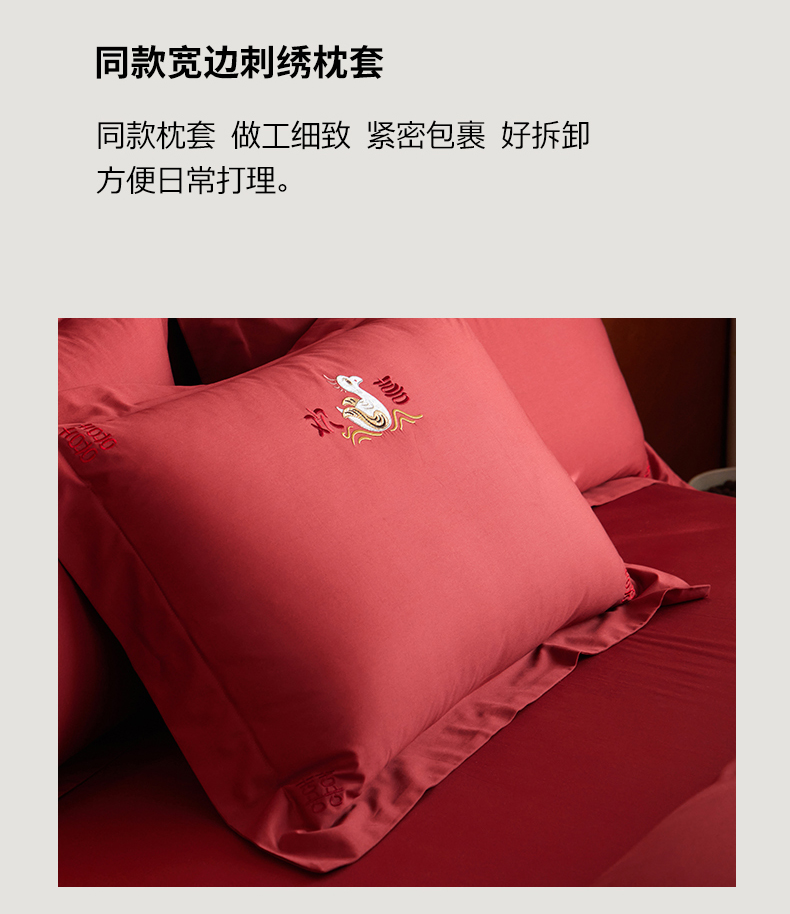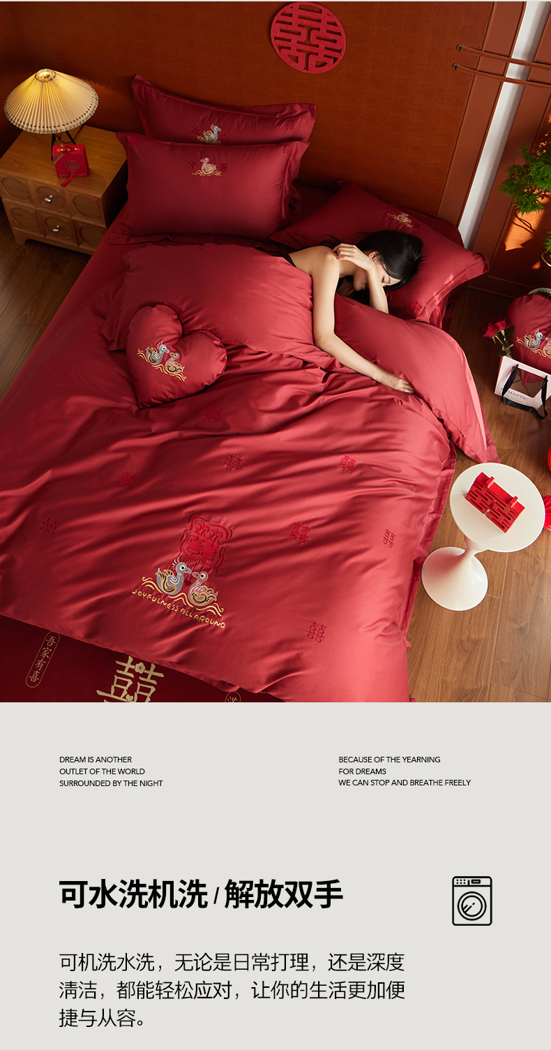 当前位置: 91家纺网 > 商品网购 > 床品套件 > 四件套 > 婚庆四件套 > 风向标家纺 2025新款婚A类100S长绒棉纯棉贡缎婚庆四件套 欢喜鸳鸯