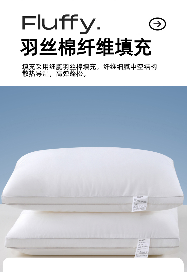 (总)优承佳生活馆(床垫) 2025新款亲肤棉高弹羽丝棉枕 枕头枕芯,单边款,立体款