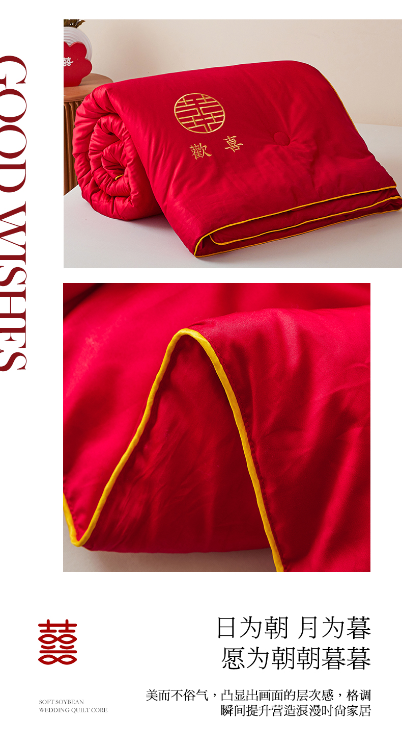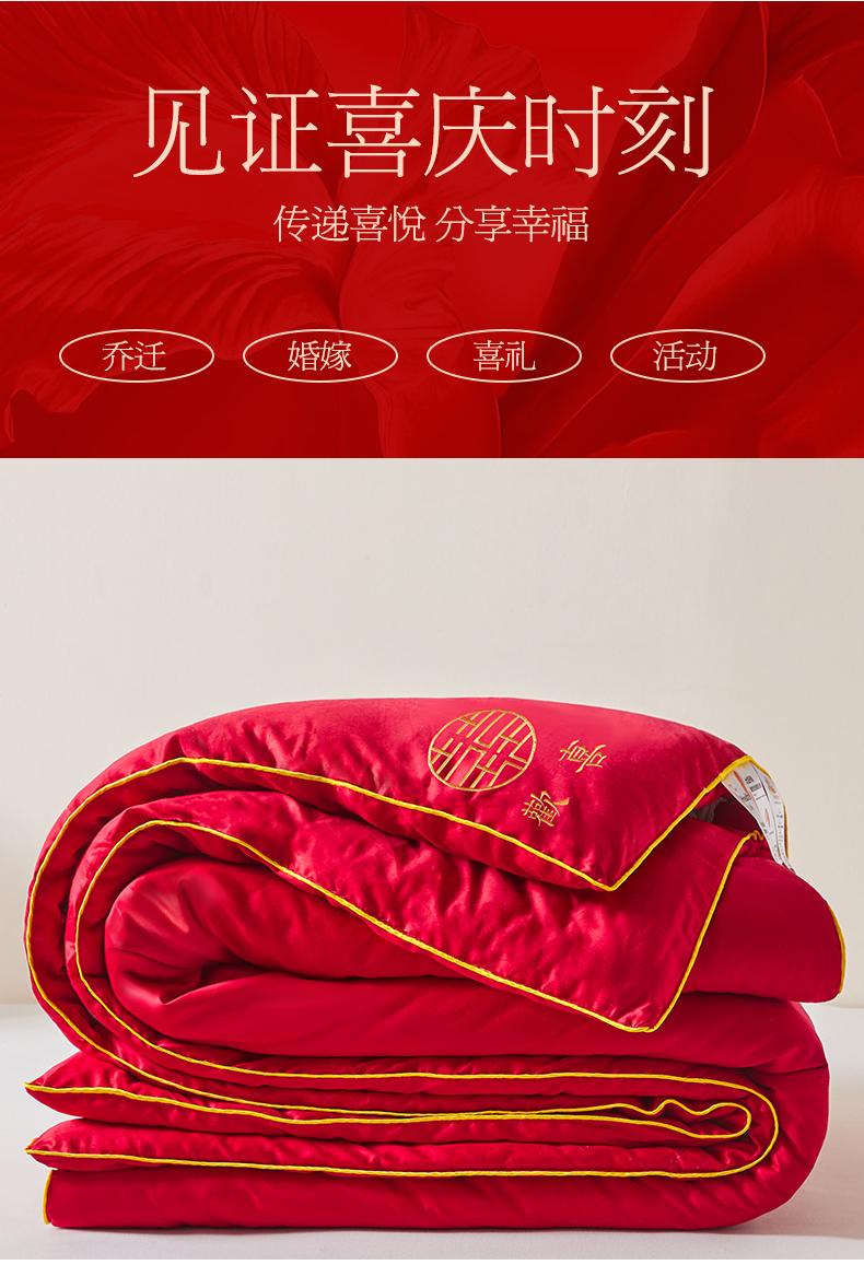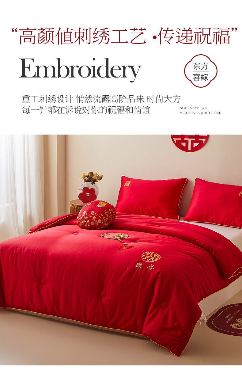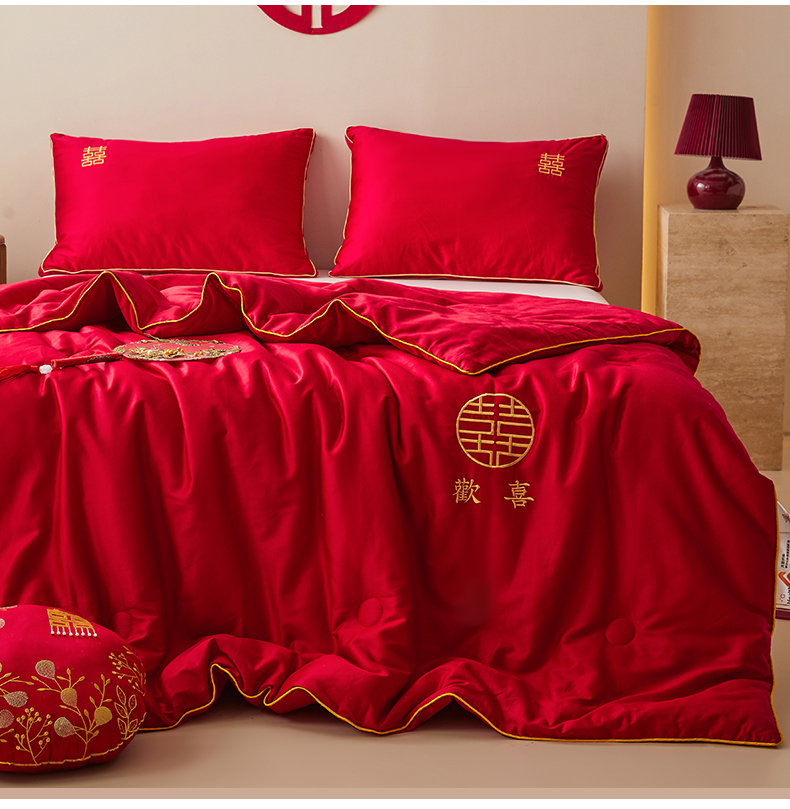 商品名称:欧乐蒂 2025新款婚庆刺绣纤维被 欢喜 红