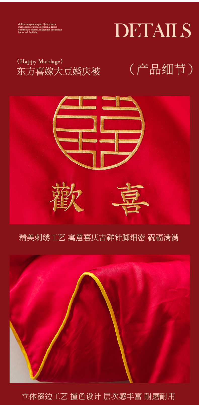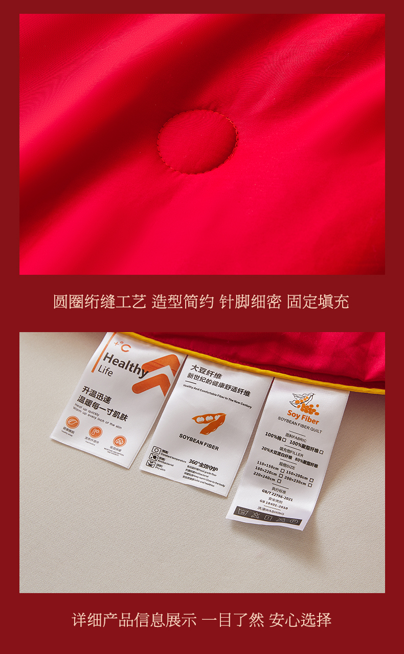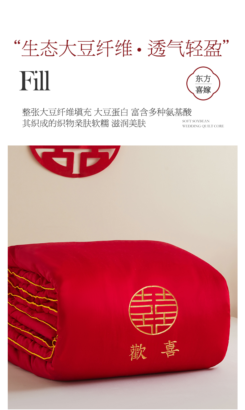 商品名称:欧乐蒂 2025新款婚庆刺绣纤维被 欢喜 红