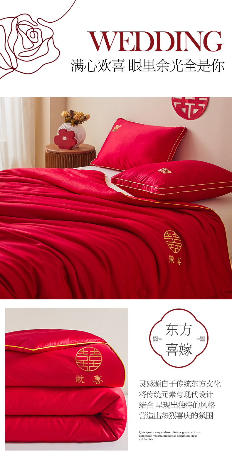 (总)欧乐蒂 2025新款设计师原创亲肤棉婚庆四件套,云喜东方,双喜临门,喜乐,喜事连连,爱恋,玫瑰爱恋,花开富贵,金枝玉叶,锦绣佳缘,龙姿风采