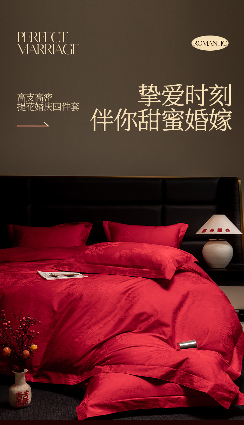 当前位置: 91家纺网 > 商品网购 > 床品套件 > 四件套 > 婚庆四件套 > 欧乐蒂 2025新款高支高密婚庆提花四件套 龙凤美满