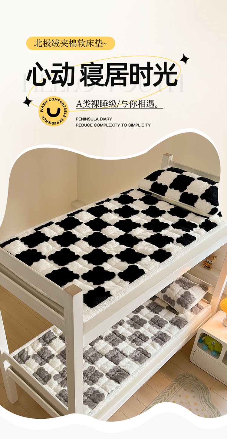 当前位置: 91家纺网 > 商品网购 > 床垫/床褥 > 普通床垫 > 眠势力 2025新款北极绒学生床垫加绒牛奶绒床褥子秋冬保暖珊瑚绒夹棉上下铺床护垫 棋盘格-幽远黑