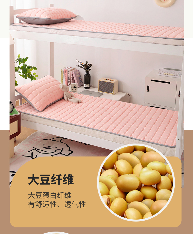 • 91家纺网 家纺一手货源 找家纺 拾小柒 2025新款A类原棉大豆纤维加厚床褥子床垫保护垫铺床款学生款 绿 学生款