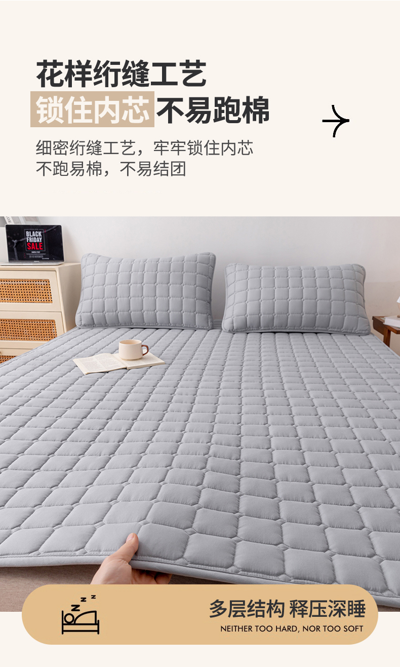 (总)拾小柒 2025年新款牛奶绒防滑床护垫加厚床垫隔脏垫冬季褥子床盖三件套,淡绿,浅粉,浅灰,浅水兰