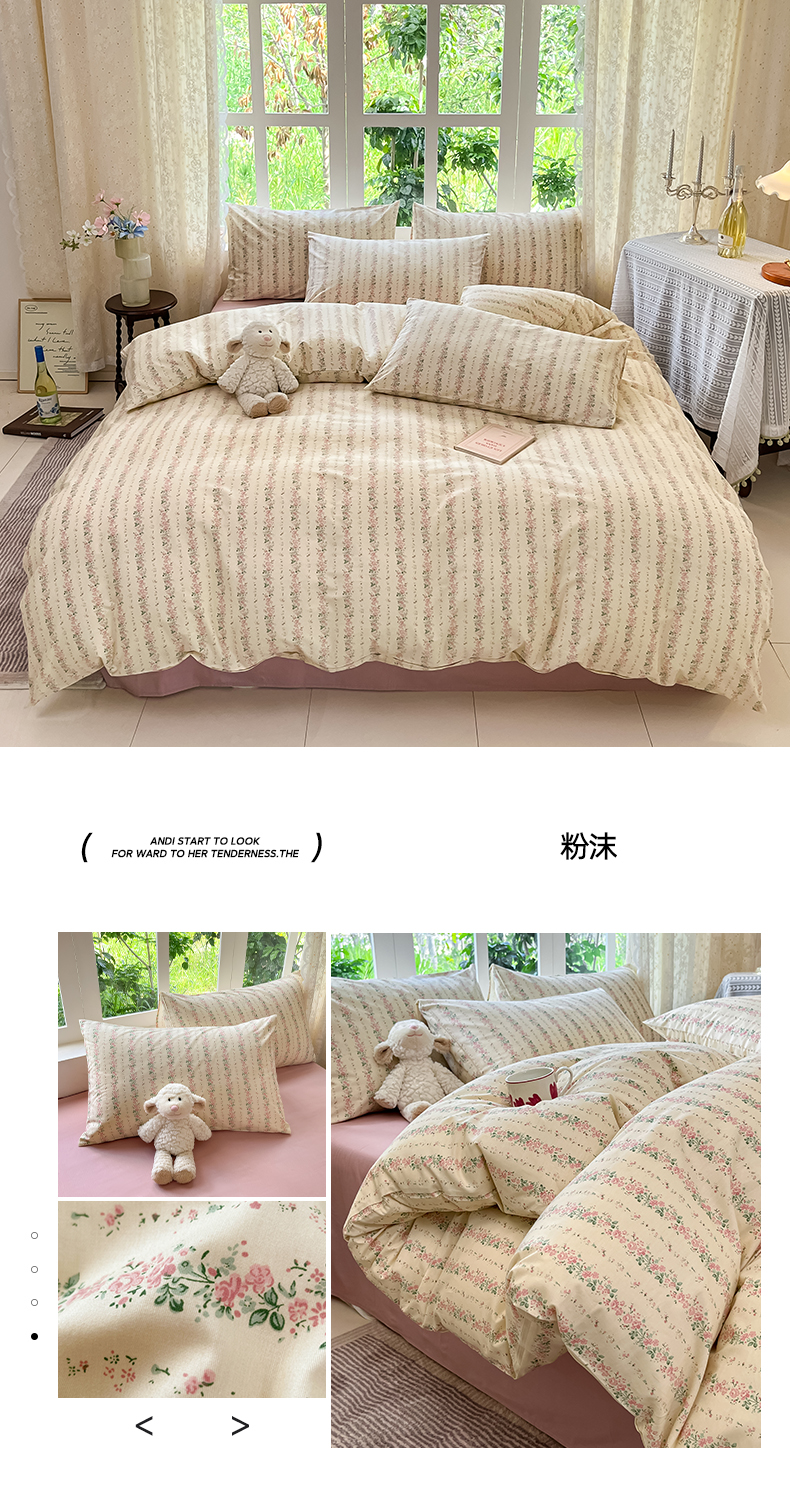 当前位置: 91家纺网 > 商品网购 > 床品套件 > 四件套 > 全棉普通四件套 > 柠馨 2025秋冬新款全棉印花四件套 粉沫