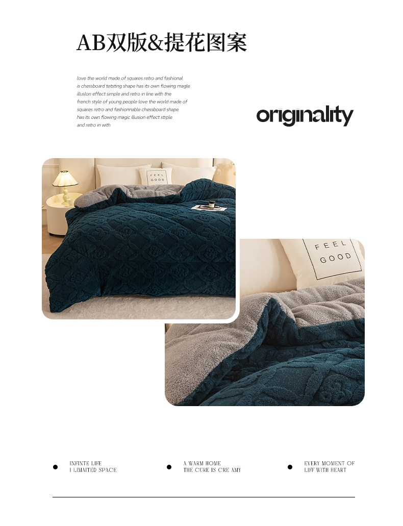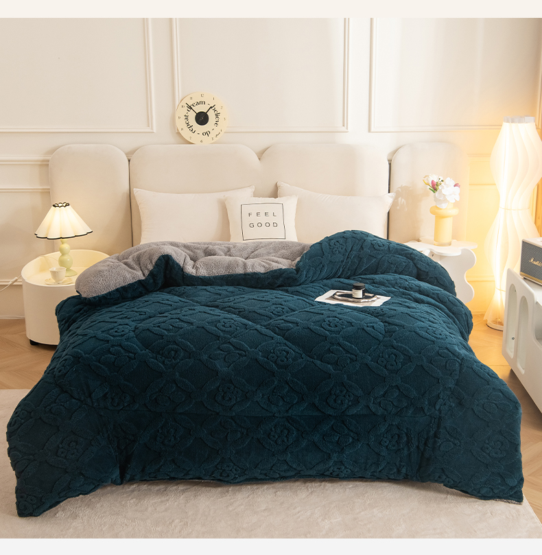 畅销被业 2025新款跨境外贸塔芙绒羊羔绒提花系列冬被子被芯 三叶草墨绿