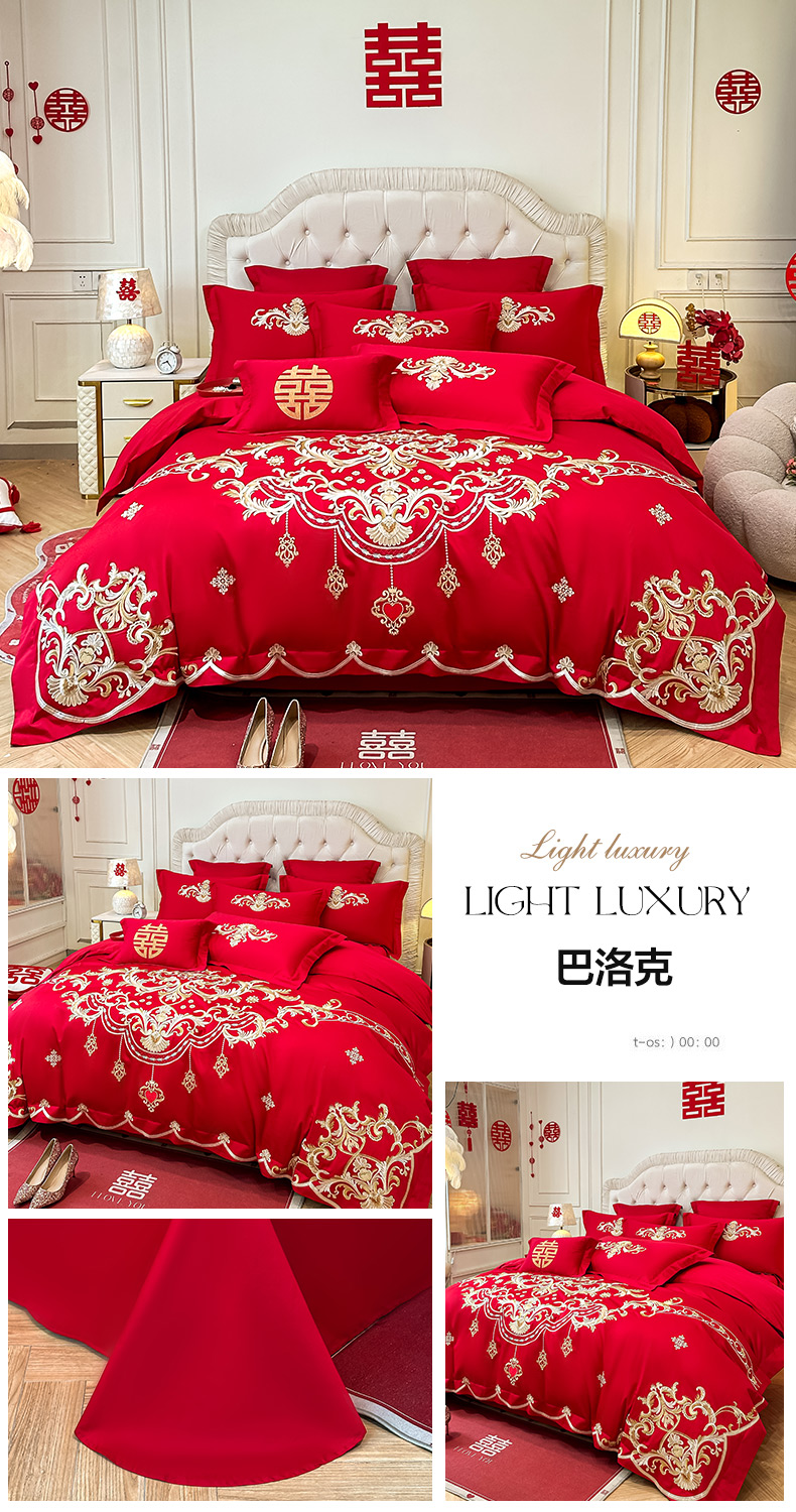 (总)欧乐蒂 2025新款亲肤棉刺绣花边婚庆四件套-浪漫花季,浪漫花季-红,浪漫花季-金