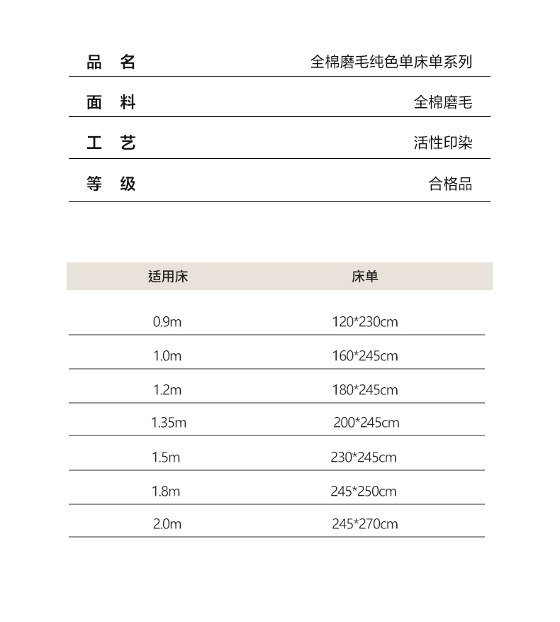 床单/床笠尺寸 7
