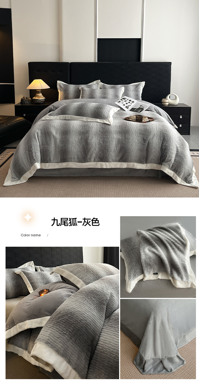 商品名称:羽梦家纺 2025秋冬新品260克加厚全消光貂狐绒工艺款超保暖四件套 九尾狐-灰色