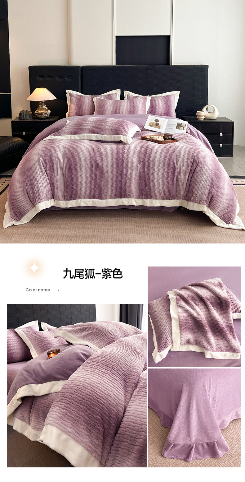 (总)羽梦家纺 2025秋冬新品260克加厚全消光貂狐绒工艺款超保暖四件套,九尾狐-豆沙粉,九尾狐-灰色,九尾狐-咖色,九尾狐-抹茶,九尾狐-紫色