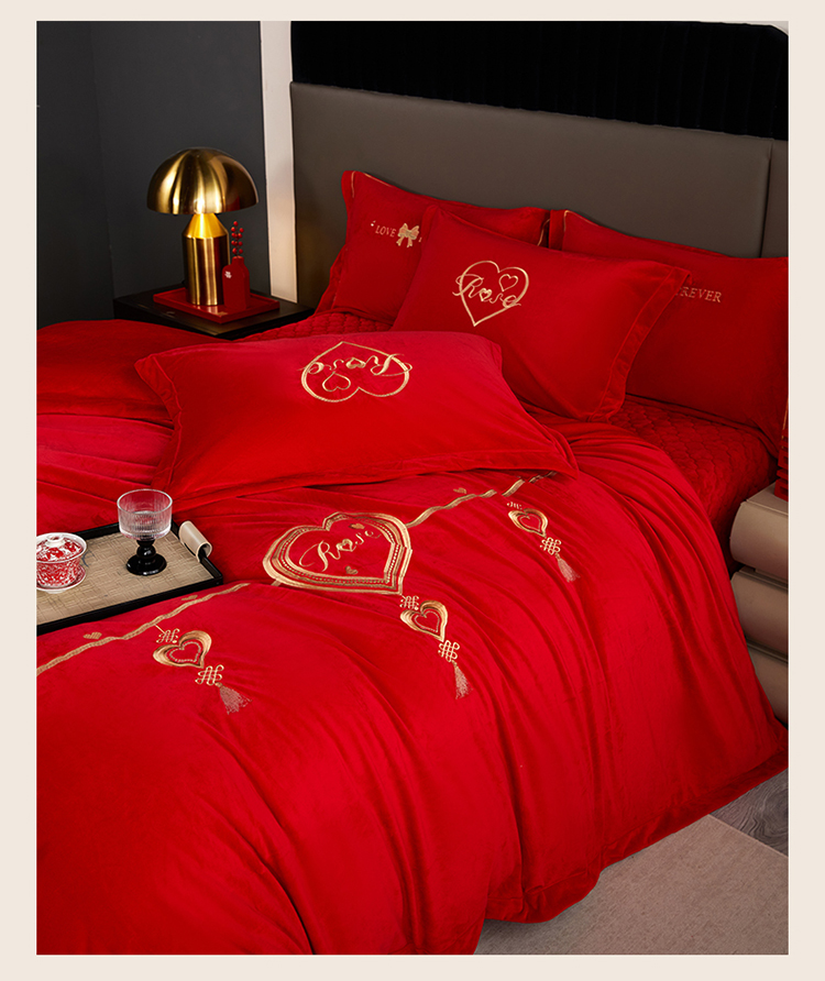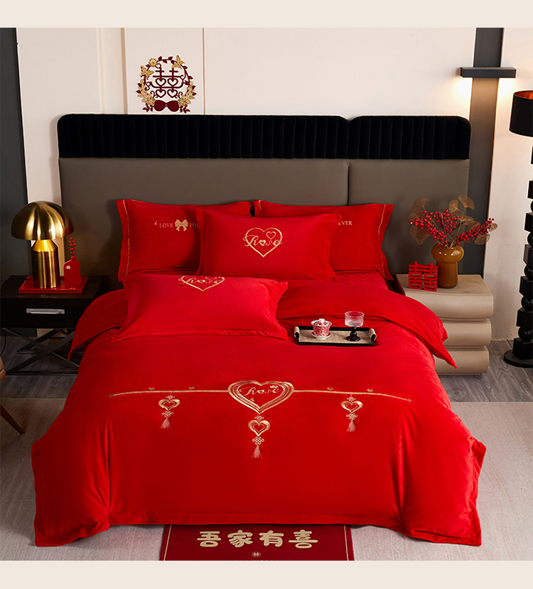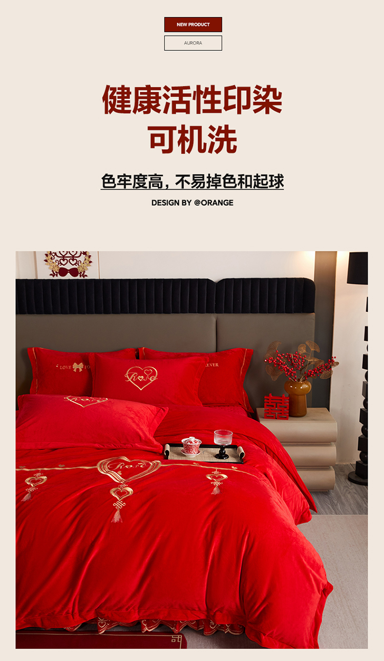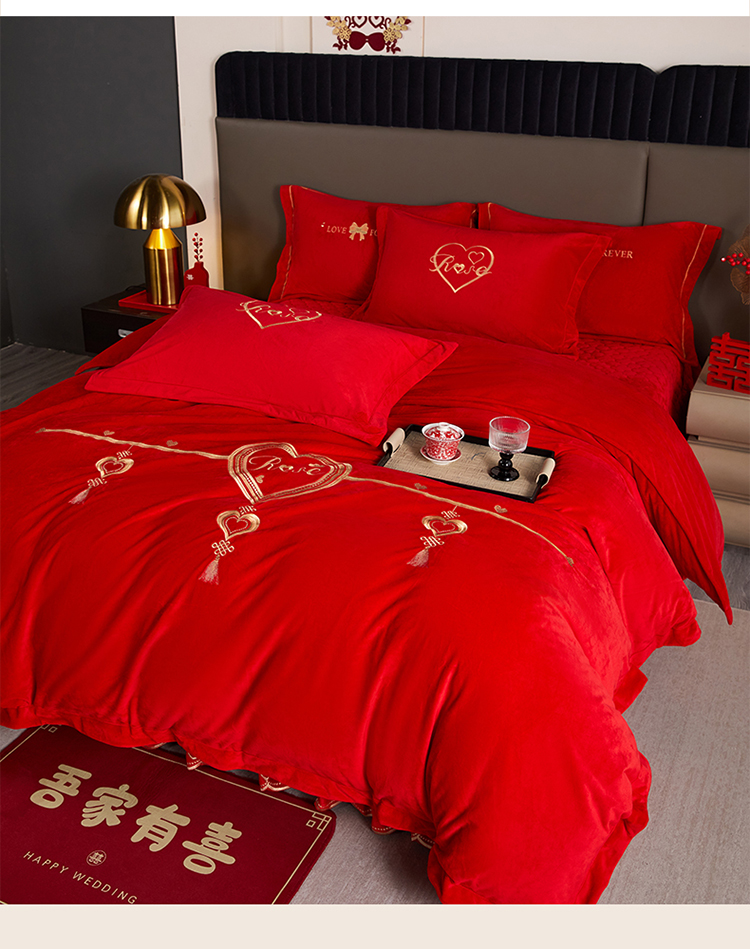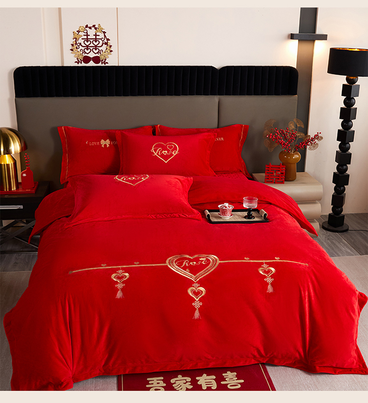 商品名称:青竹苑 2025新款婴儿绒刺绣婚庆四件套 典雅爱心