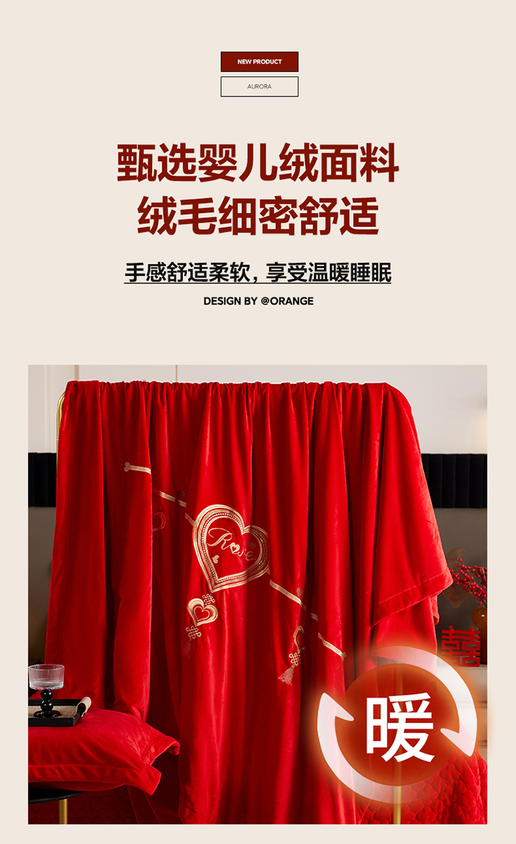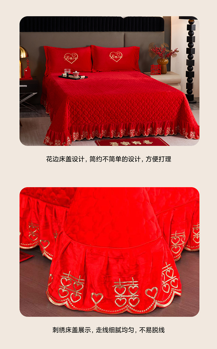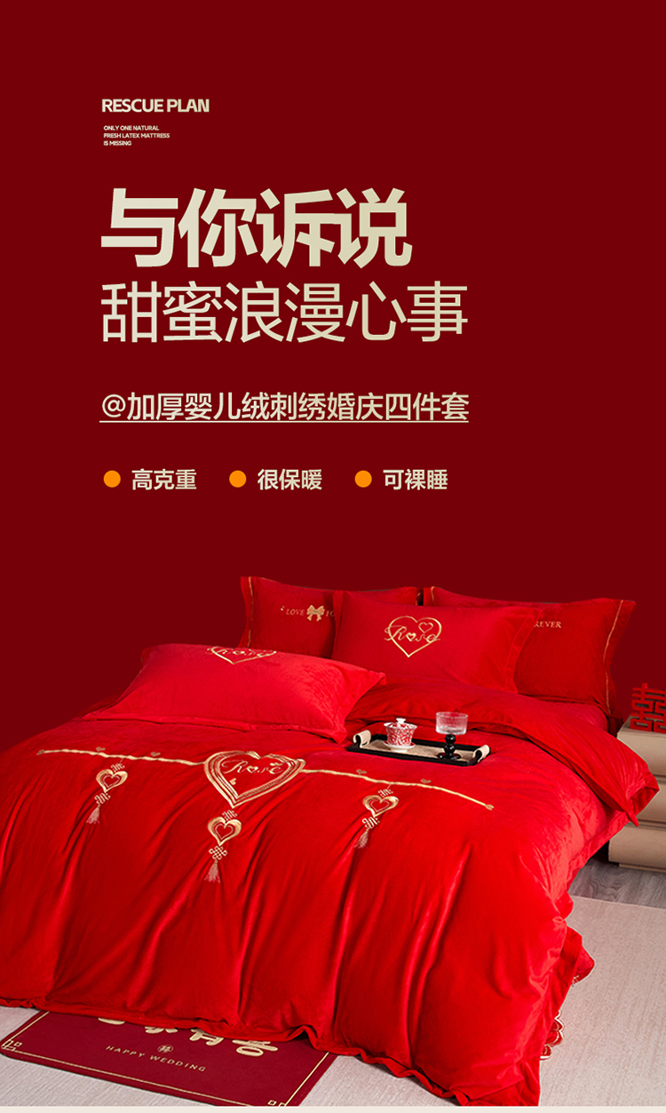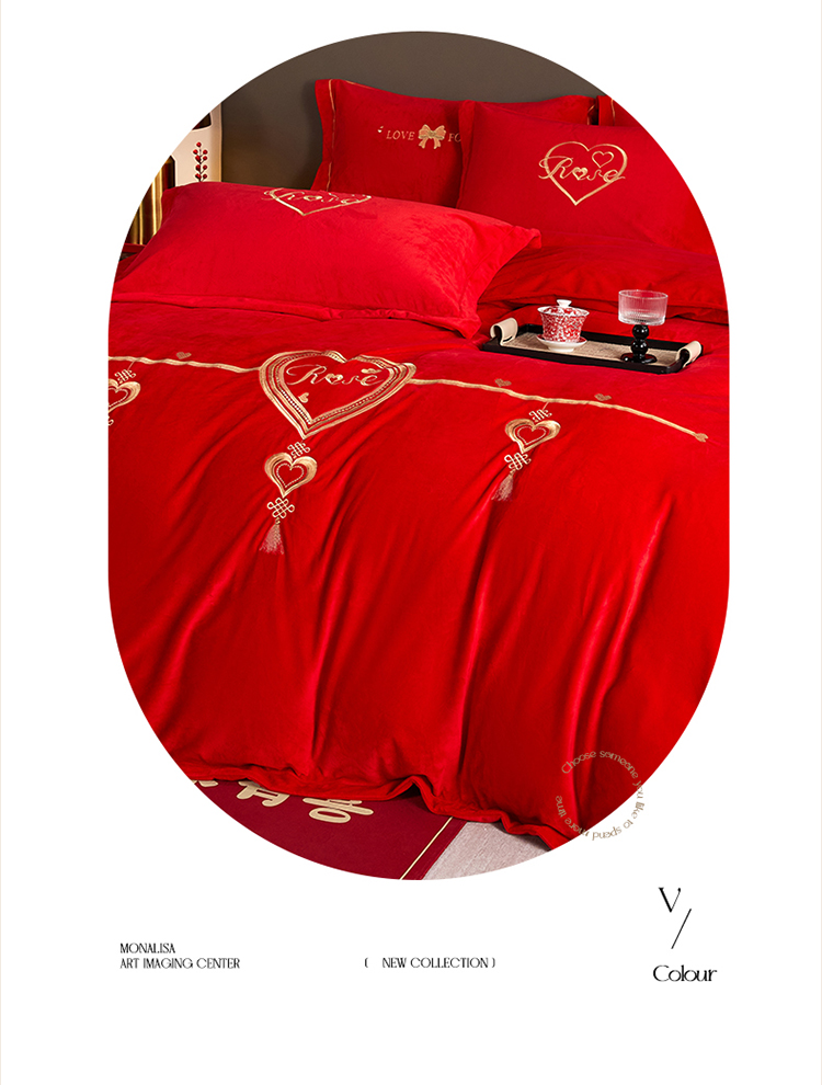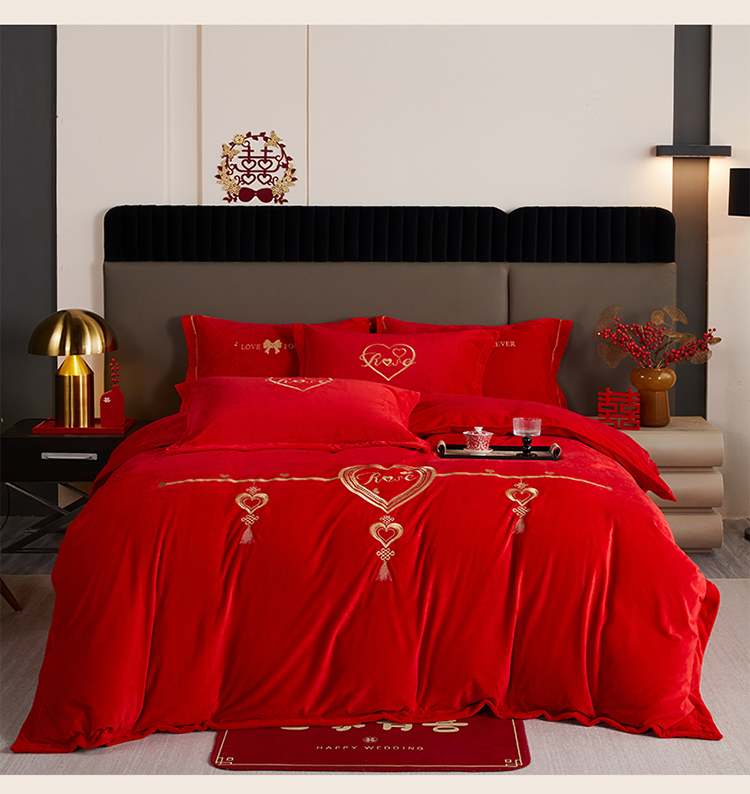 商品名称:青竹苑 2025新款婴儿绒刺绣婚庆四件套 典雅爱心