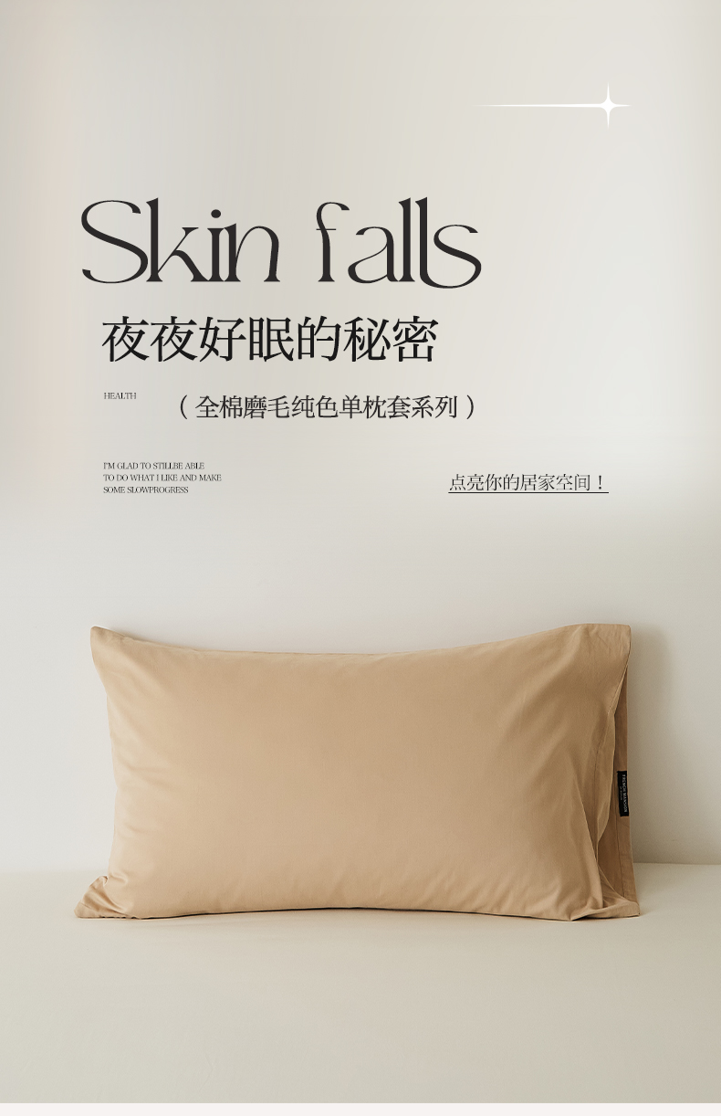 EH家居 2025新款全棉磨毛纯色单枕套-云栖系列 云栖-布丁咖