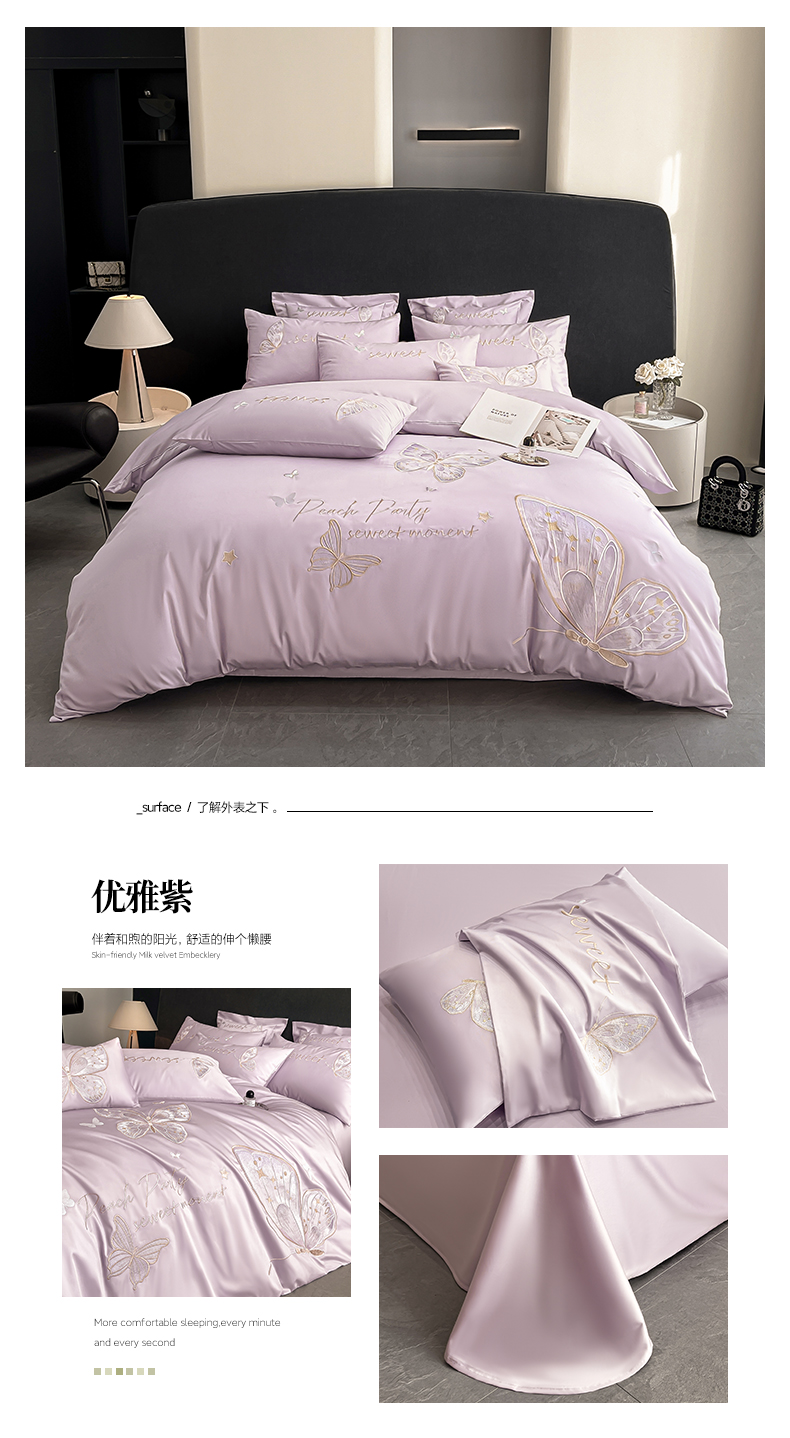 博纳家纺 2025新款纯棉绣花四件套-蝶舞飞扬 优雅紫