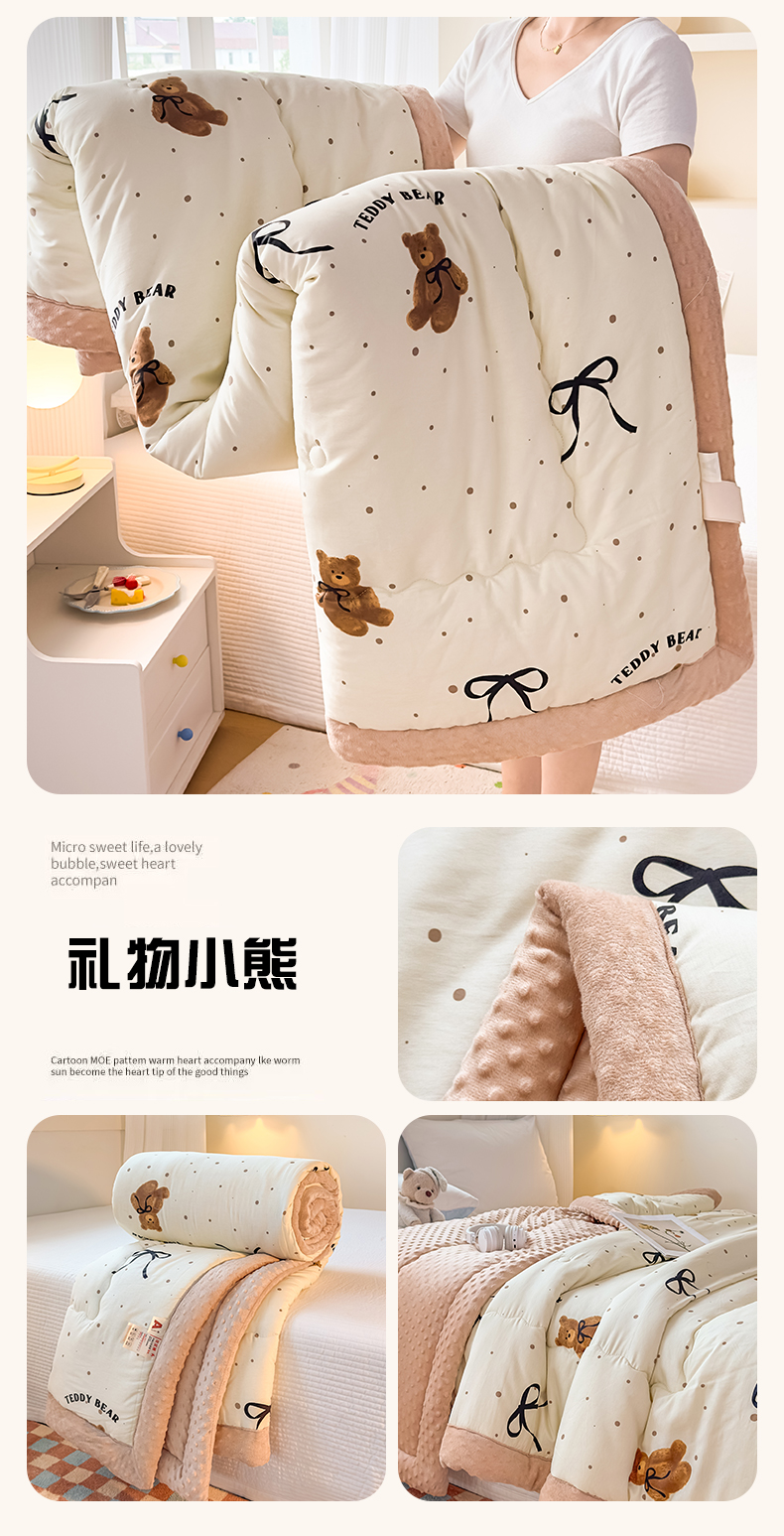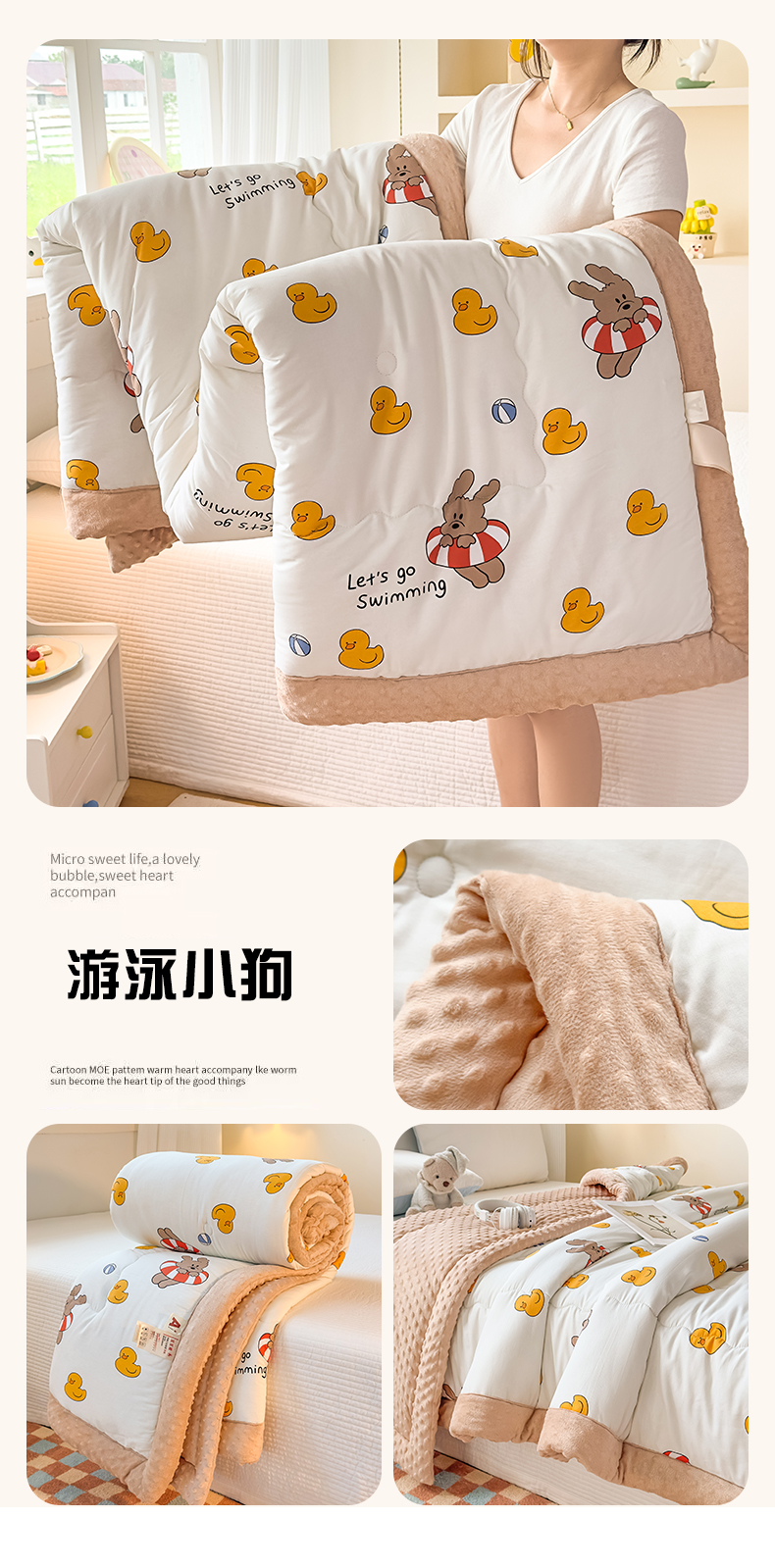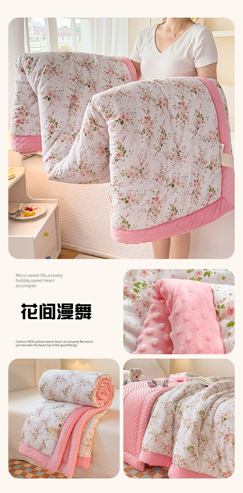 (总)默忆 2025新款全棉豆豆绒被子豆豆被冬被被芯,蛋糕小狗,花间漫舞,花香怡人,兰亭序,礼物小熊,桃语春风,晚安星星,游泳小狗