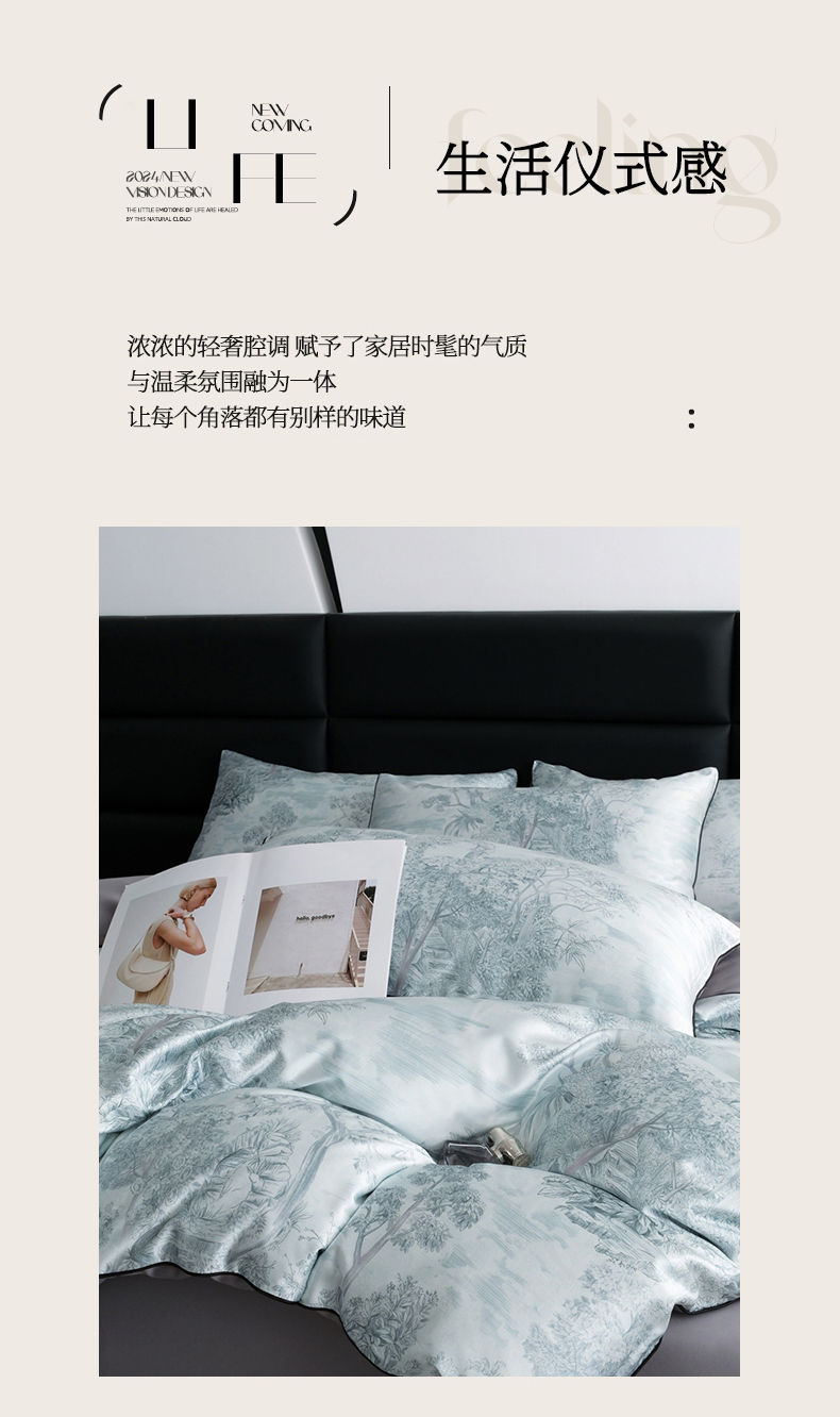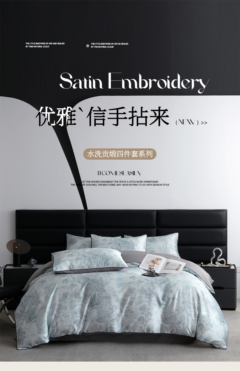 麦空家居 2025春夏水洗真丝贡缎埋绳四件套-繁花系列 槐