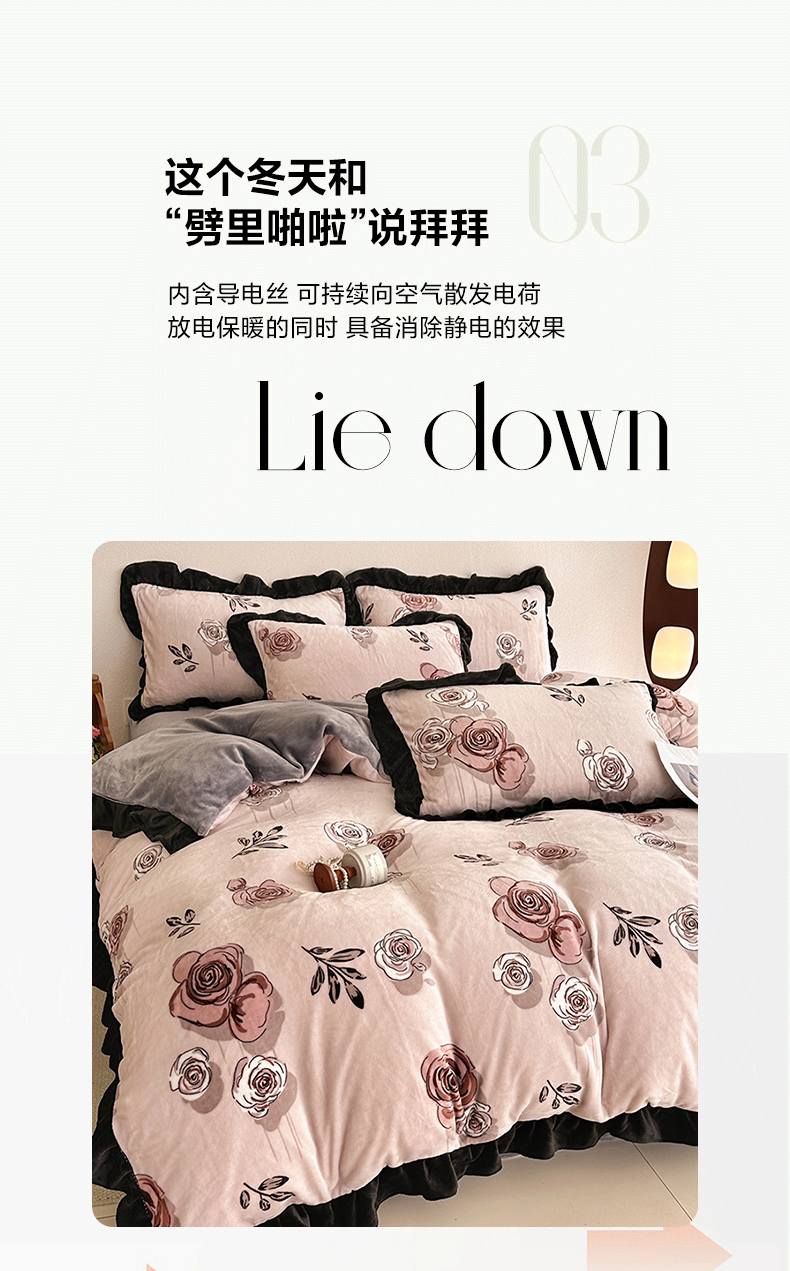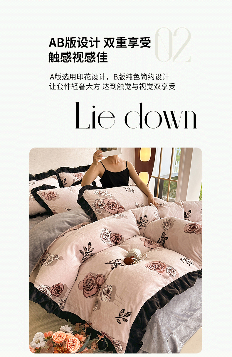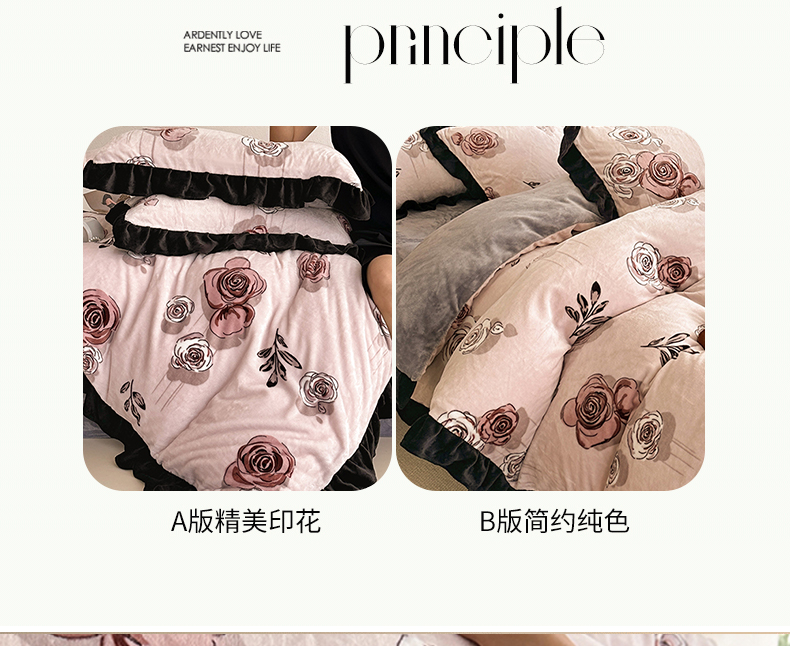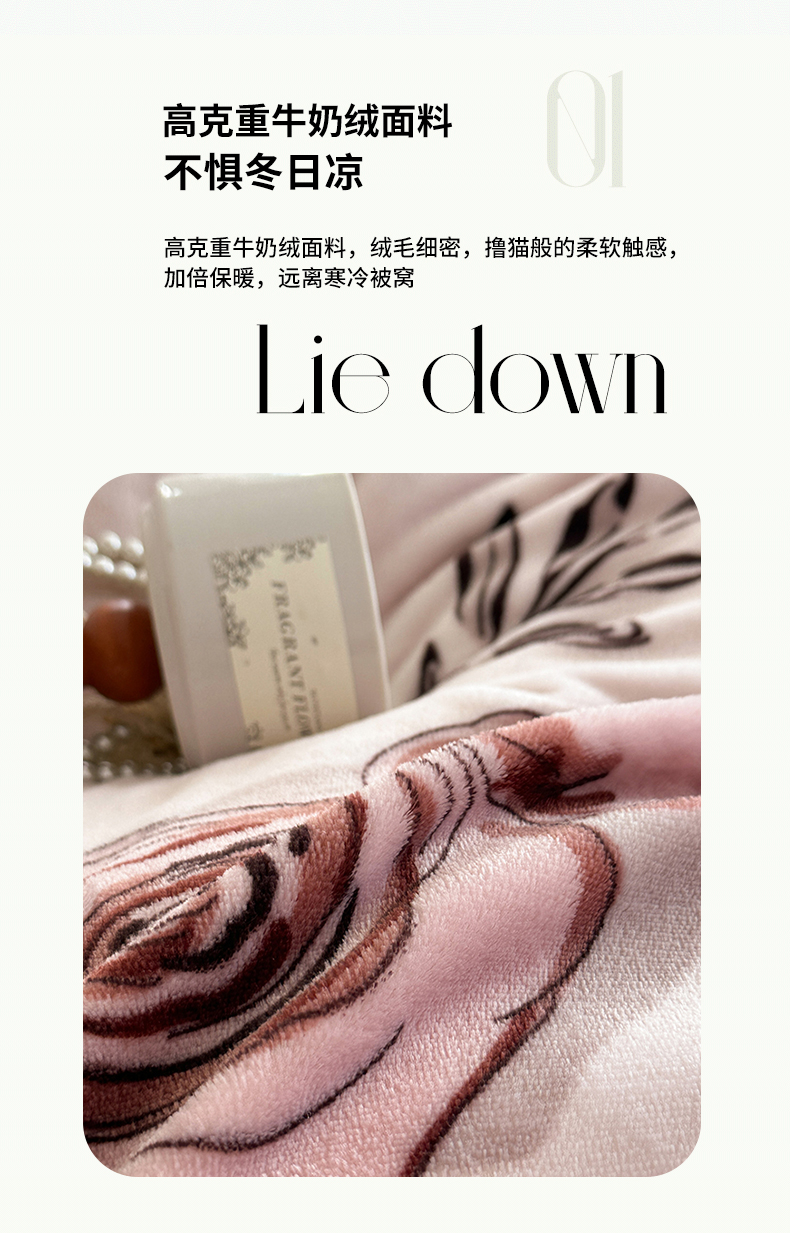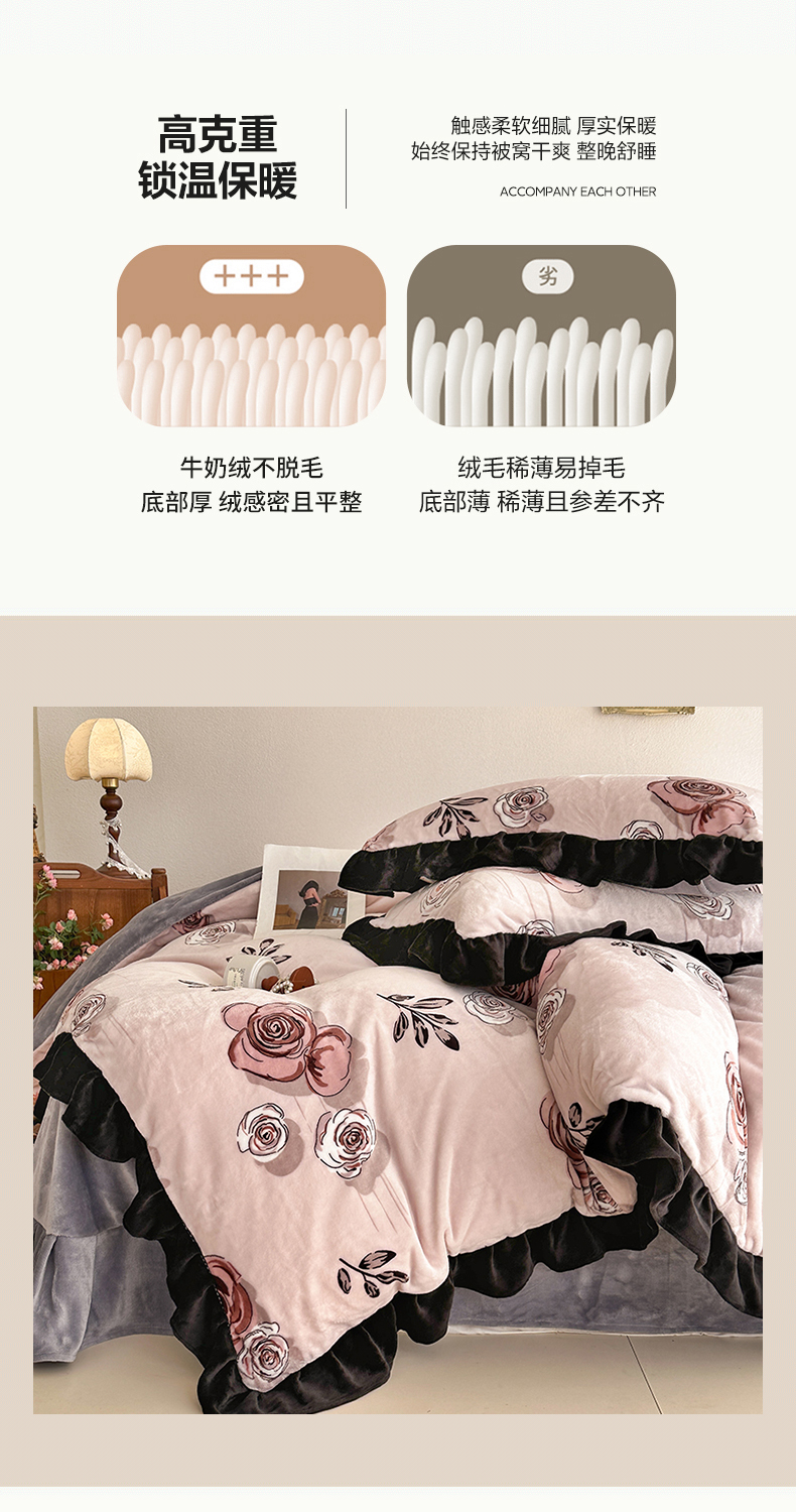 佳一 2025新款高克重8-9斤 印花牛奶绒四件套 玫瑰之吻,玫瑰之吻
