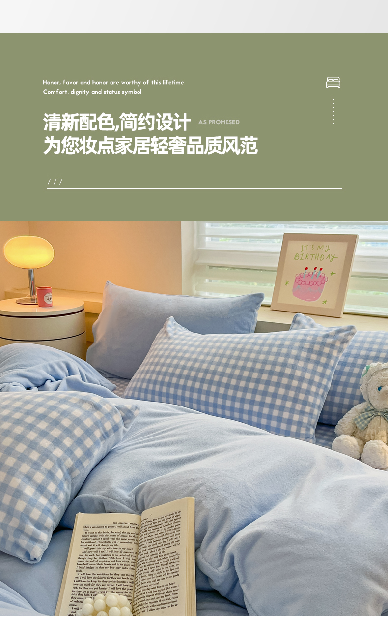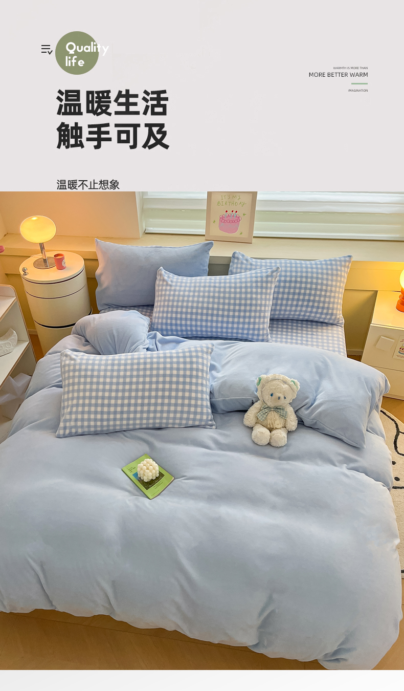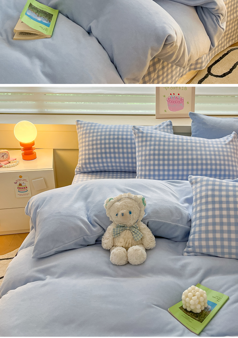 当前位置: 91家纺网 > 商品网购 > 床品套件 > 四件套 > 法莱绒四件套 > 三朵家纺 2025秋冬新款法莱绒混搭系列四件套 粉蓝+蓝格
