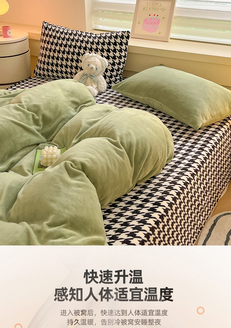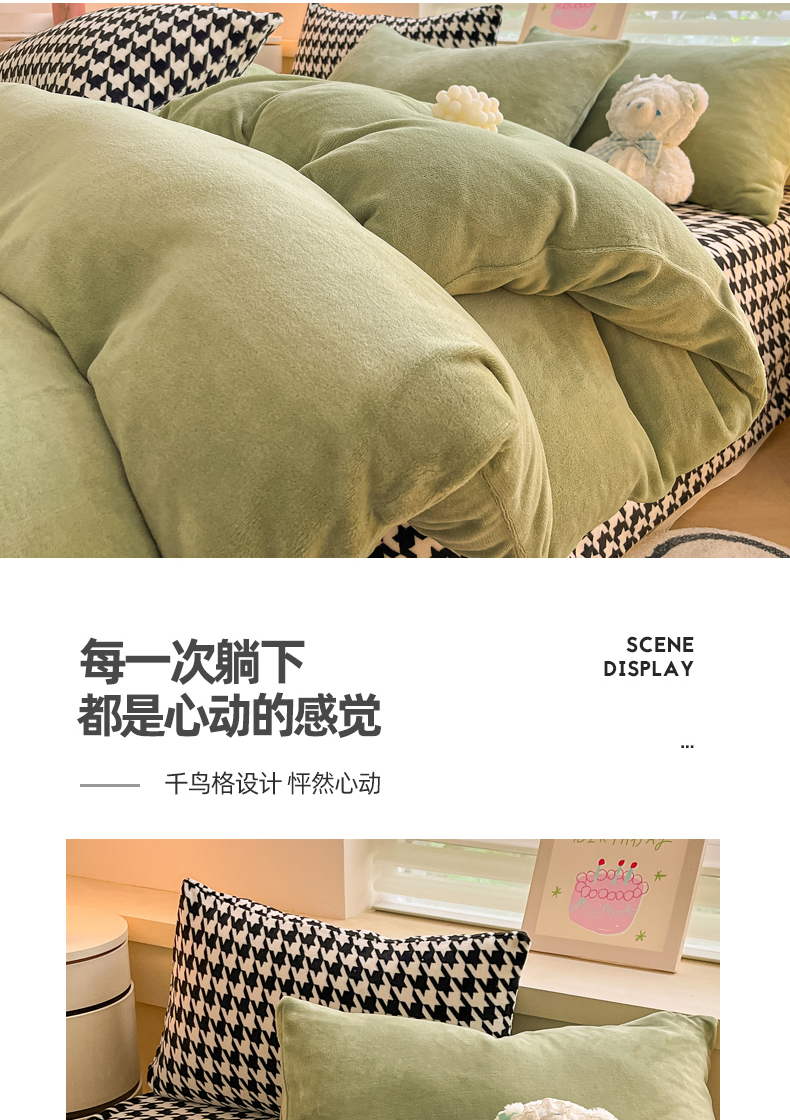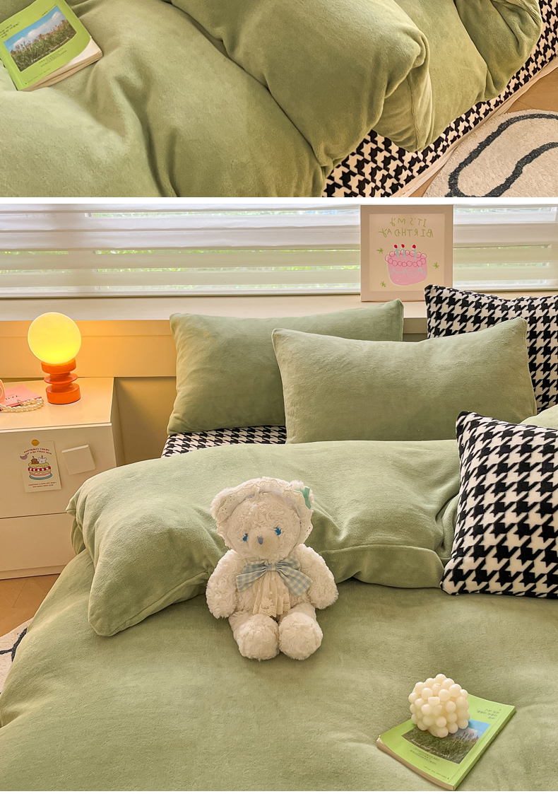 当前位置: 91家纺网 > 商品网购 > 床品套件 > 四件套 > 法莱绒四件套 > 三朵家纺 2025秋冬新款法莱绒混搭系列四件套 苹果绿